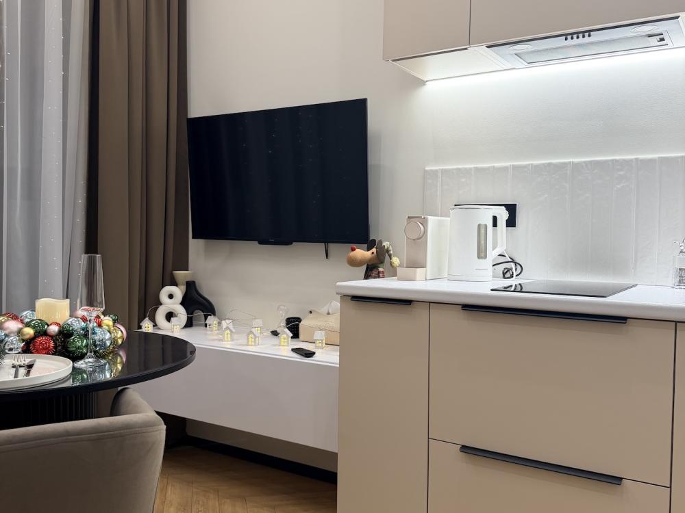 Просторное и светлое жильё, полностью укомплектованное новой современной мебелью и техникой, идеально подойдёт для проживания. В квартире есть всё необходимое для проживания до 4 человек: двуспальная ортопедическая кровать, раскладной диван, панорамные окна в пол, с видом на Москву-реку, Wi-Fi (скоростной), Smart-TV с Алисой, стирально-сушильная машина, напольная сушилка, фен, утюг, гладильная доска, постельное бельё, полотенца, халаты, одноразовые тапочки, техника: варочная панель, духовой шкаф, капсульная кофемашина, тостер, холодильник, посудомойка, СВЧ, полный набор посуды, приборов, фильтры питьевой воды, косметика: шампунь, гель для душа, кондиционер для волос, зубные/бритвенные наборы.