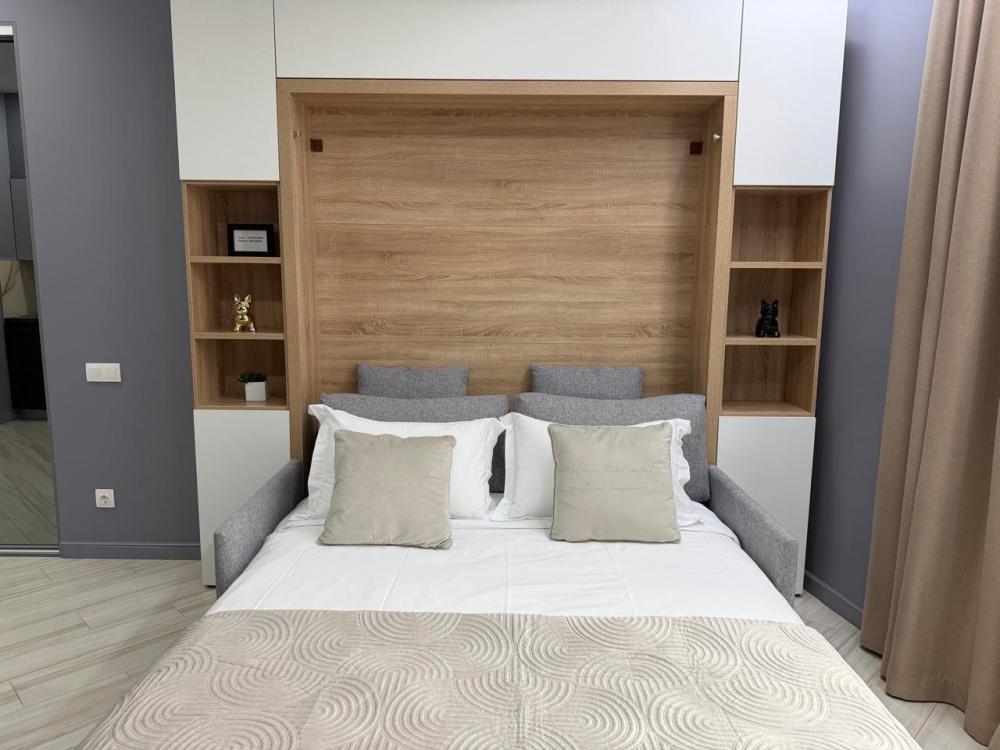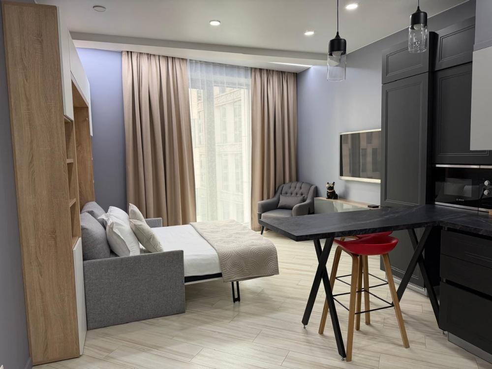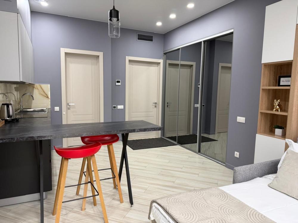 Уютная студия для проживания 2 чел. В квартире есть всё необходимое для комфортного проживания: предусмотрены комфортабельные спальные места, вся необходимая мебель и техника, оборудованная кухонная зона. Есть вся необходимая посуда. В апартаментах наличие собственного сан.узла.