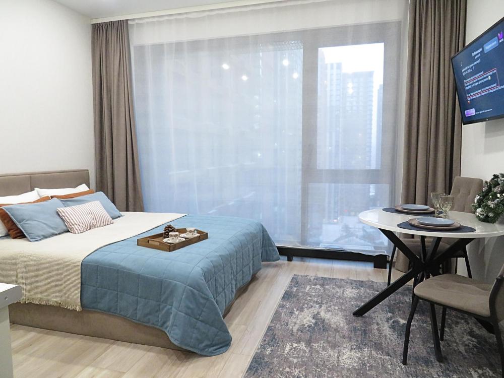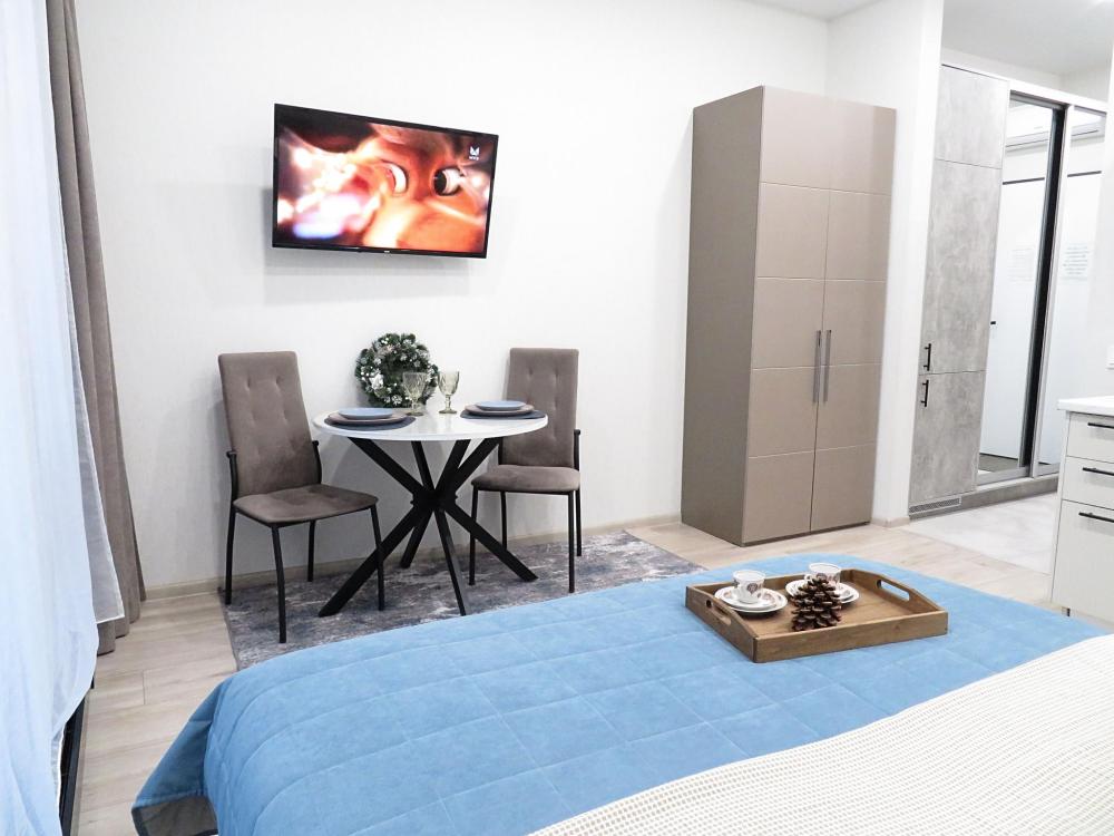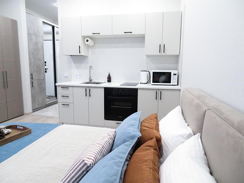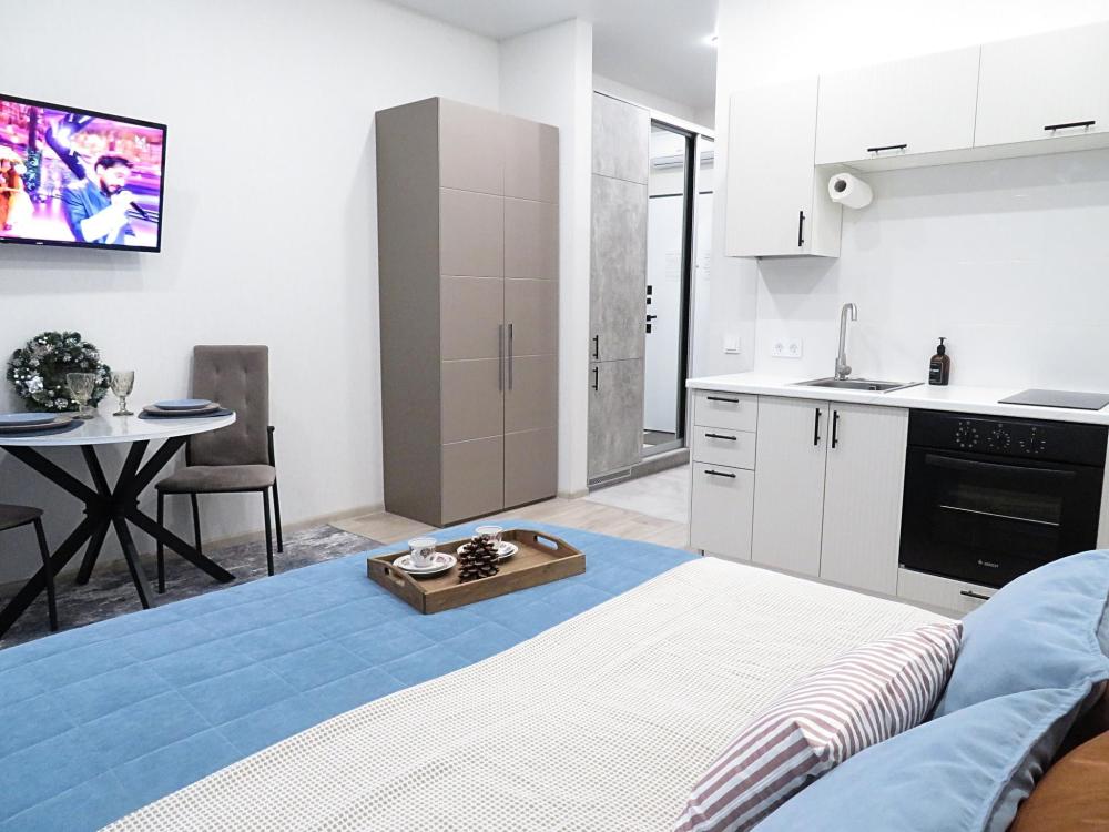 Комфортабельные спальные места (двуспальная кровать с ортопедическим матрасом, новое выглаженное постельное бельё); кондиционер, стиральная машина, сушилка, утюг, гладильная доска. На кухне: холодильник, варочная панель, духовка, микроволновка, чайник. Набор посуды и столовых принадлежностей. В ванной комнате: ванна, махровые полотенца: банное, для лица, для ног, фен, одноразовые шампуни, гель для душа, зубные наборы. Бесплатный высокоскоростной Wi-Fi, телевизор Smart TV c приложениями и браузером.