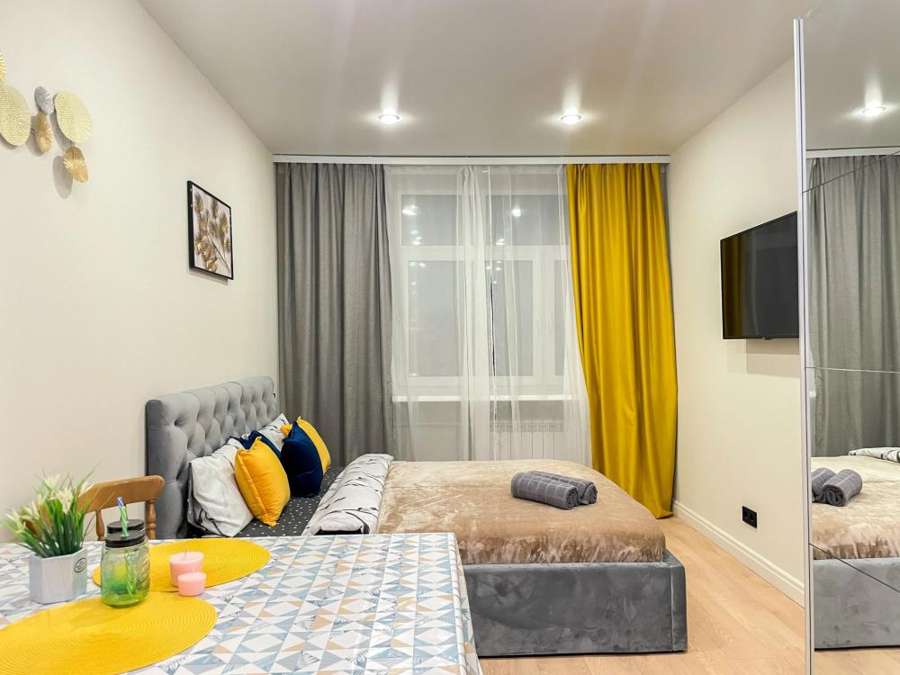 Современная, уютная, чистая квартира для тех, кто любит жить в красивой обстановке. Дизайн выполнен со вкусом. Все цвета гармонируют друг с другом. В квартире есть всё для приятного и комфортного проживания: двухспальная кровать, холодильник, плита, микроволновка, стиральная машина, водонагреватель, телевизор, фен, утюг, Wi-Fi, телевидение, постельное белье, полотенца, средства гигиены. При бронировании на 1 сутки взимается дополнительная плата: 800 руб за уборку