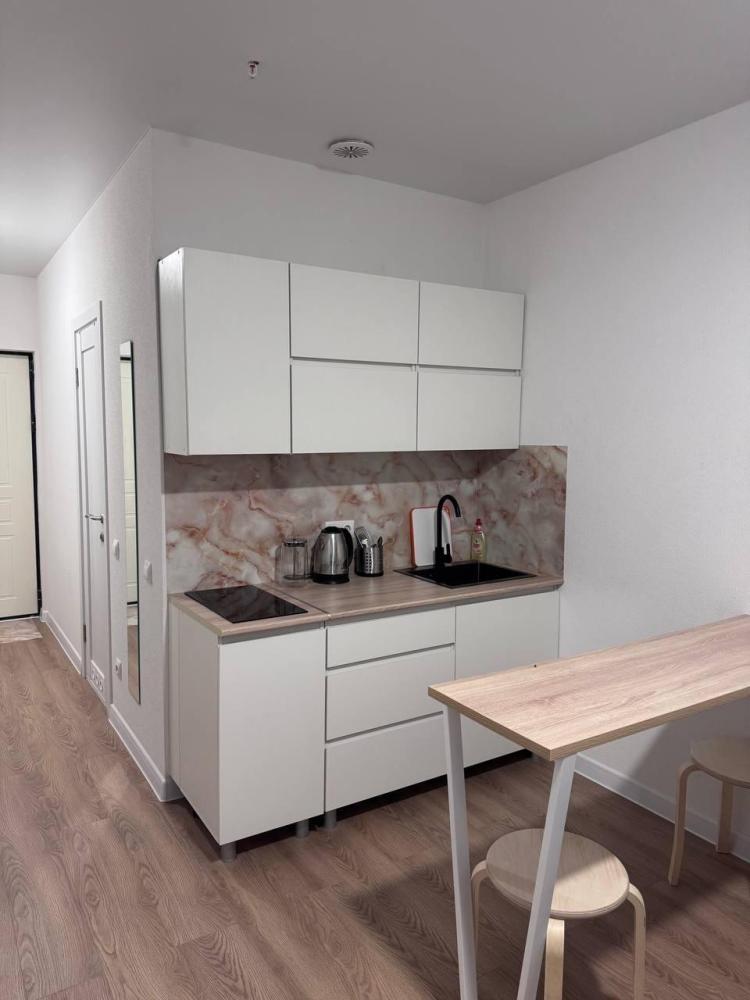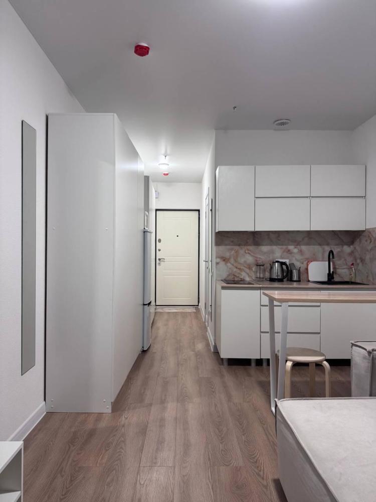 Современная и уютная студия в новом доме. Интерьер продуман до мелочей: тёплые оттенки, мягкий свет и стильные детали создают атмосферу уюта и спокойствия. Всё необходимое для комфортного проживания: комфортная двуспальная кровать и чистое бельё; кухня со всей техникой и посудой; Wi-Fi и Smart TV; кондиционер, стиральная машина, фен, утюг.