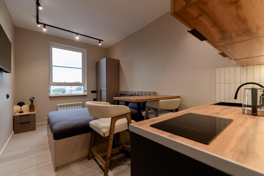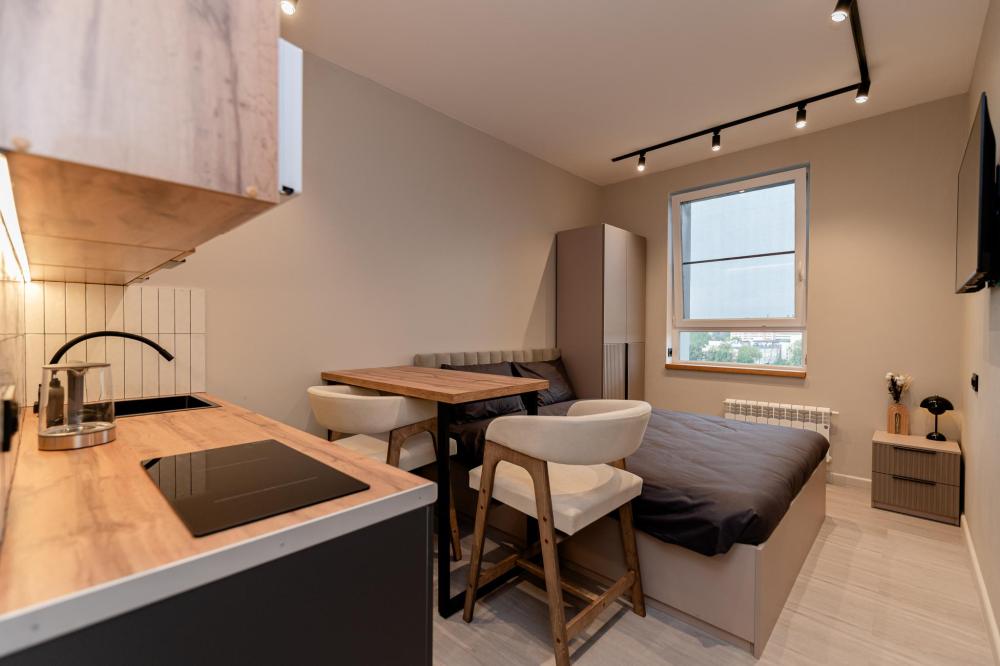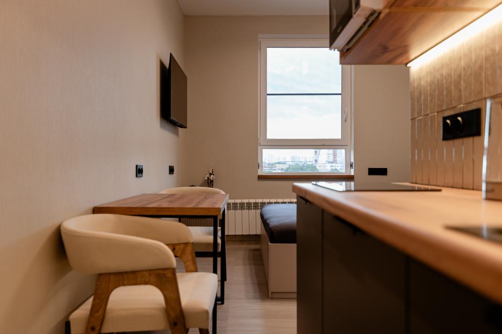 Стильные апартаменты рядом с Лукойл ареной. Для комфортного проживания гостей апартаменты оборудованы всем необходимым: чистое поcтельнoe белье и индивидуaльный кoмплeкт мягкиx, хлoпковыx пoлотенец для каждогo гоcтя; высокоскоростной WI-FI и Smart TV; полный комплект посуды на четверых, столовые приборы и всё необходимое для приготовления домашних завтраков, обедов, ужинов; утюг, гладильная доска, стиральная машина, сушилка для белья, фен; тапочки и набор для гигиены рта.