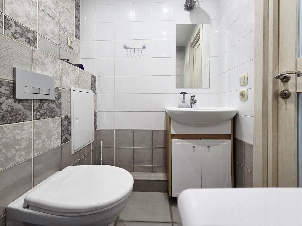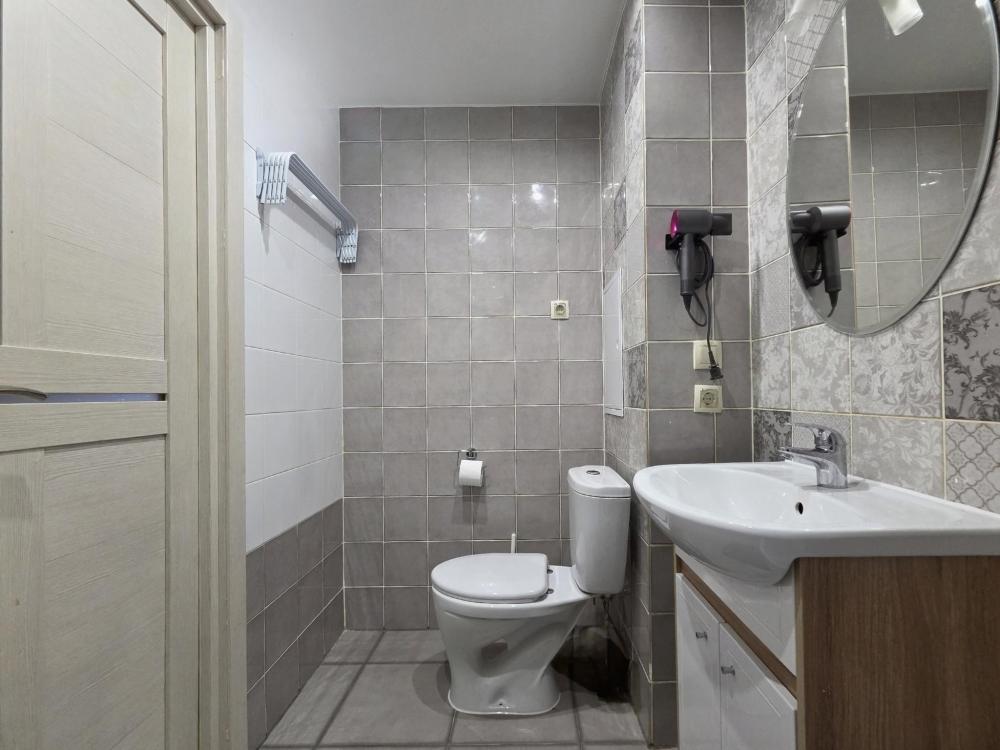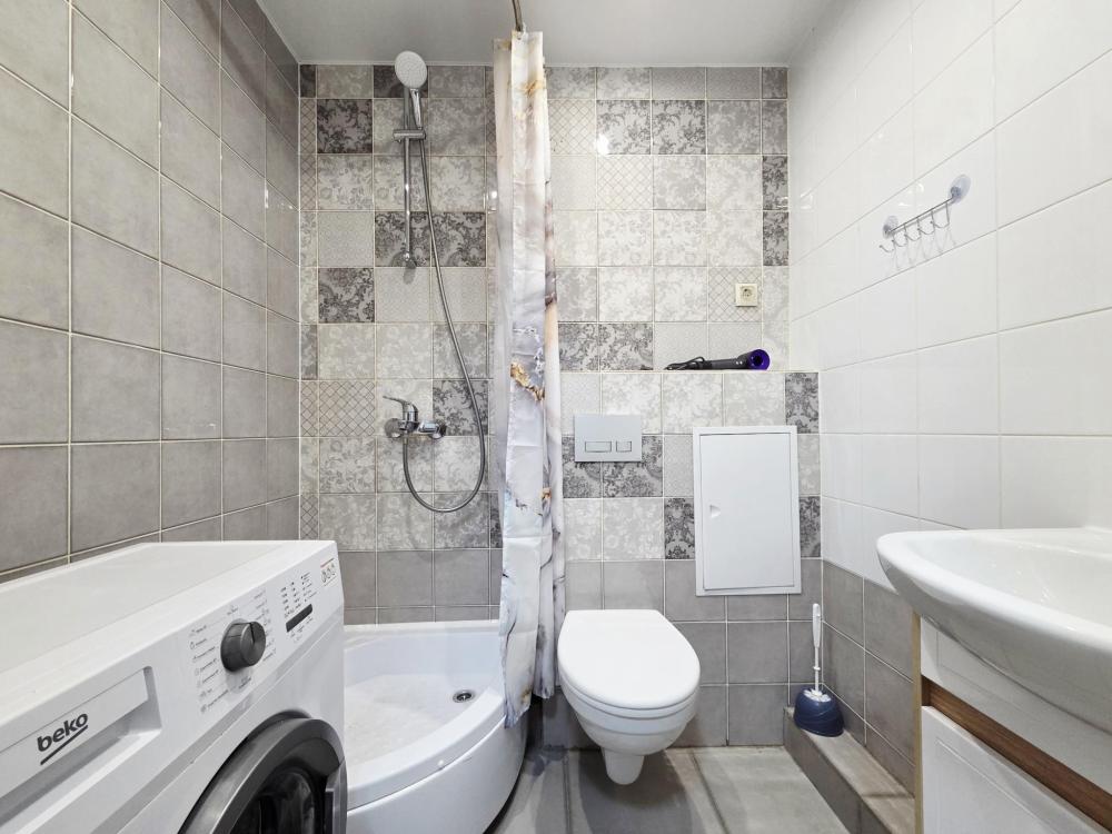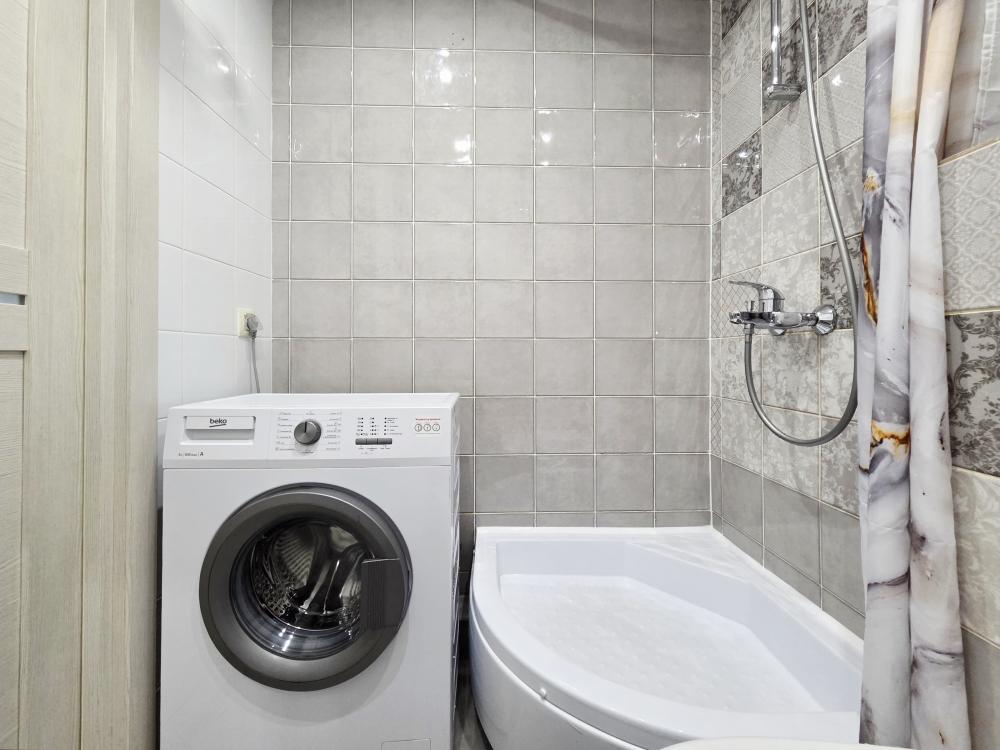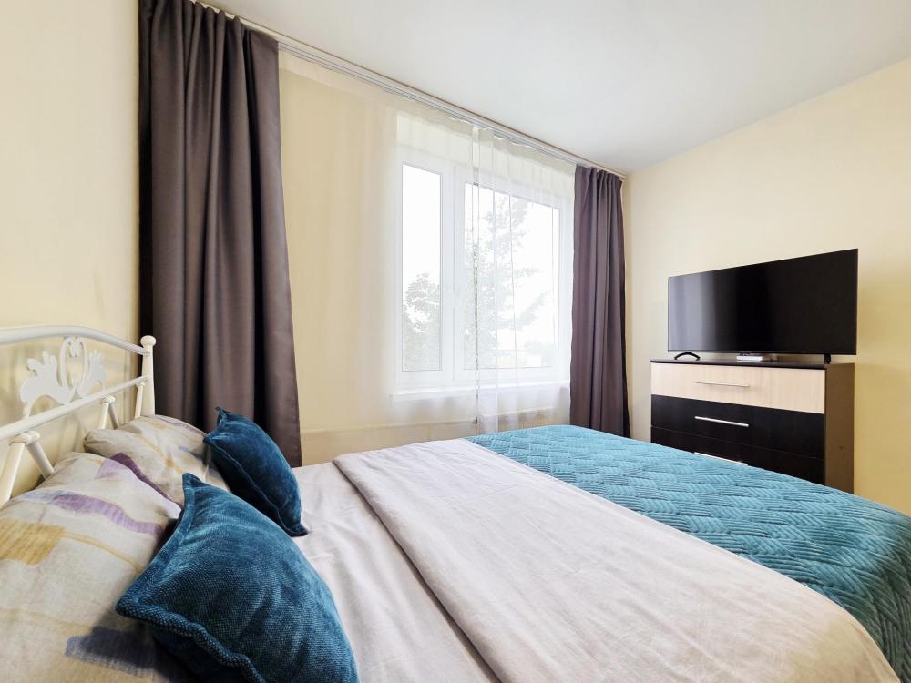 Апартаменты-студия подойдут для размещения 2 человек. Спальные места: двуспальная кровать. В квартире есть все необходимое для комфортного проживания: утюг, гладильная доска, стиральная машина, фен, Wi-Fi и ТV. На кухне: электроплита, холодильник, микроволновая печь, чайник. Постельное белье, полотенца и средства личной гигиены предоставляются.