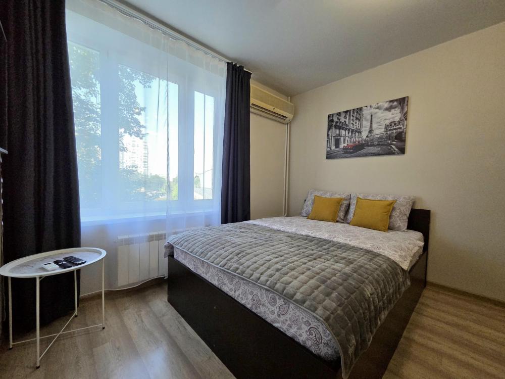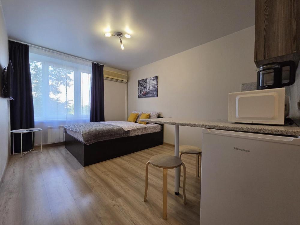 Апартаменты-студия подойдут для размещения 2 человек. Спальные места: двуспальная кровать. В квартире есть все необходимое для комфортного проживания: кондиционер, утюг, гладильная доска, стиральная машина, фен, Wi-Fi и ТV. На кухне: электроплита, холодильник, микроволновая печь, чайник. Постельное белье, полотенца и средства личной гигиены предоставляются.