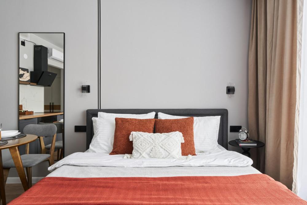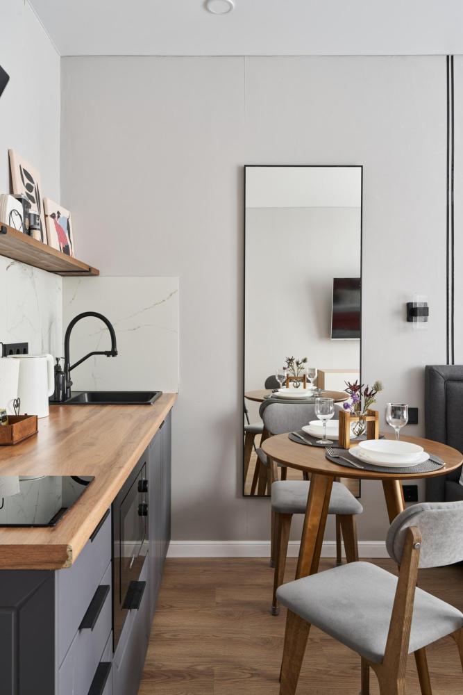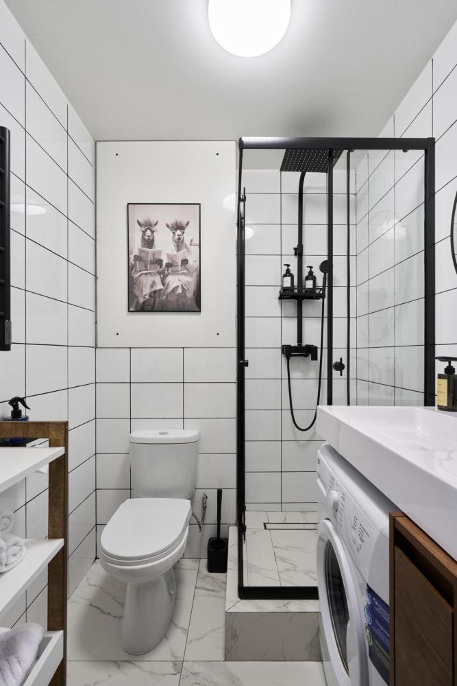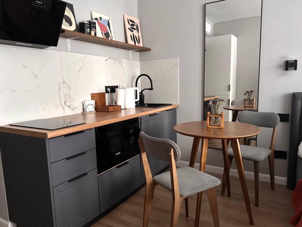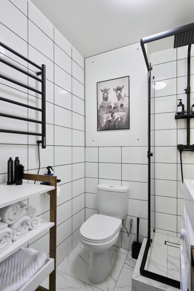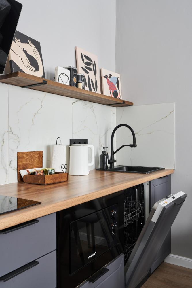 Квартира полностью оборудована для комфортного проживания: Умный телевизор (Smart TV) с доступом к популярным онлайн-кинотеатрам. Чайная станция (чай, кофе, сахар) для быстрого перекуса. Холодильник, вся необходимая посуда и кухонная техника. Комплект постельного белья, полотенца, тапочки. Средства для душа: шампунь, гель для душа, жидкое мыло. Фен.