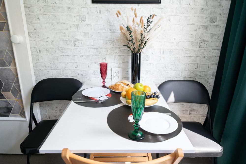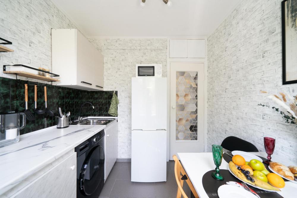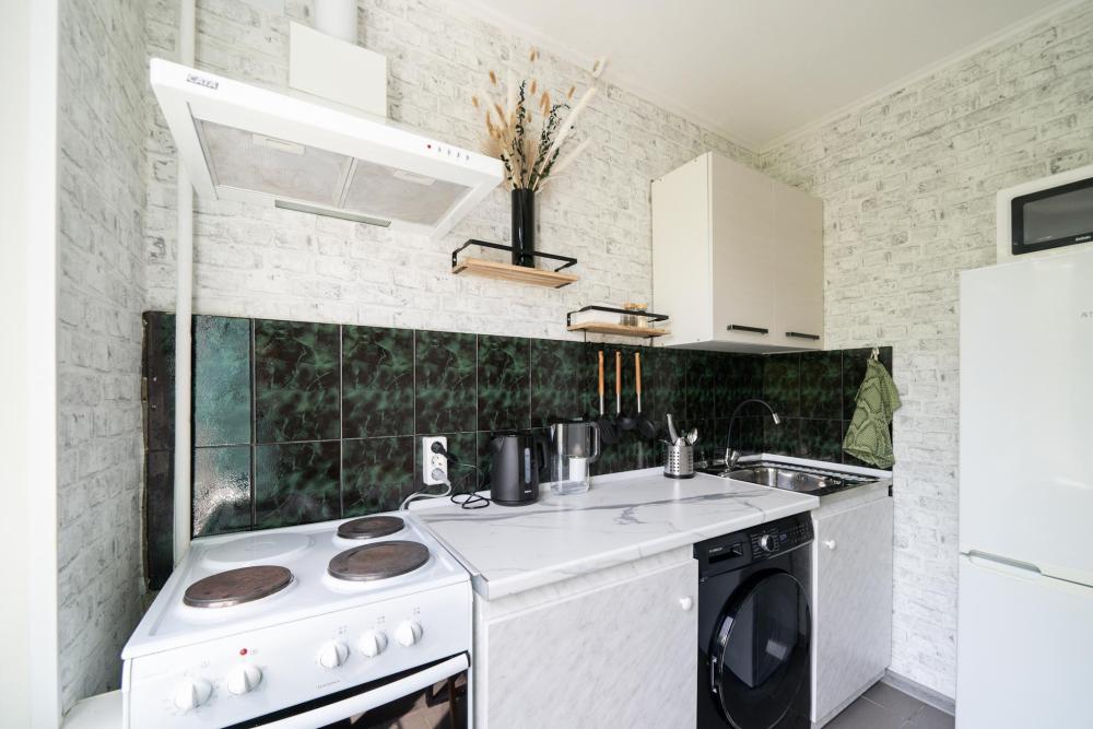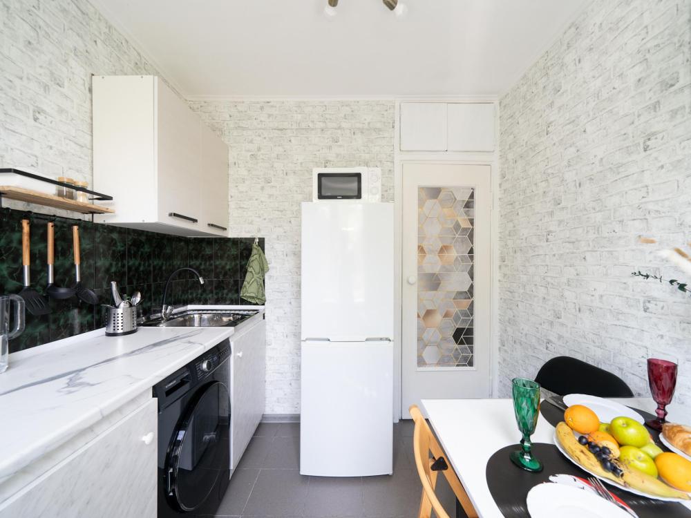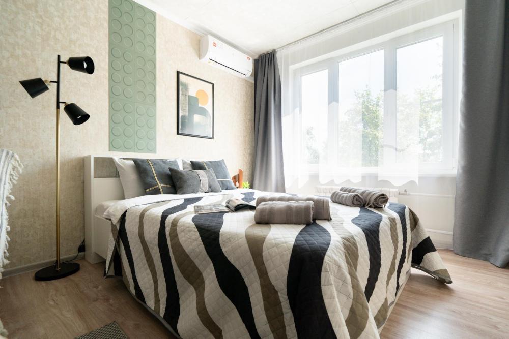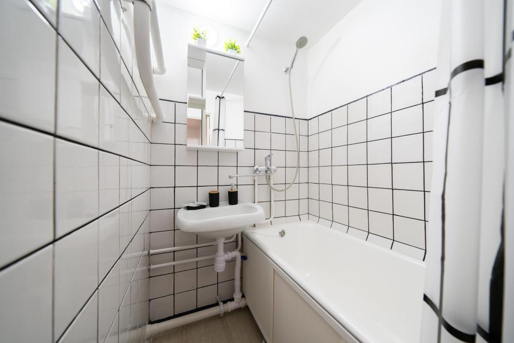 В квартире : 4 спальных места (кровать и раскладной диван), шторы блэк-аут, кондиционер, ТВ, Wi-Fi, постельное белье и полотенца, оборудованная техникой и посудой кухня, ванная комната с ванной.. Окна выходят в тихий дворик