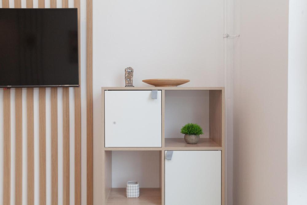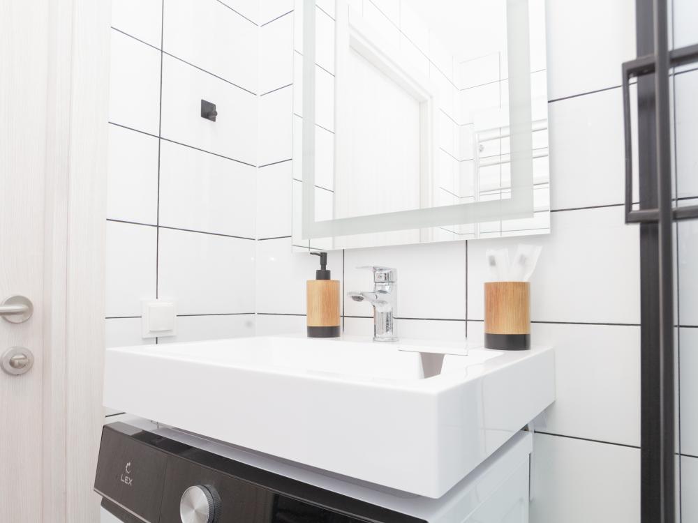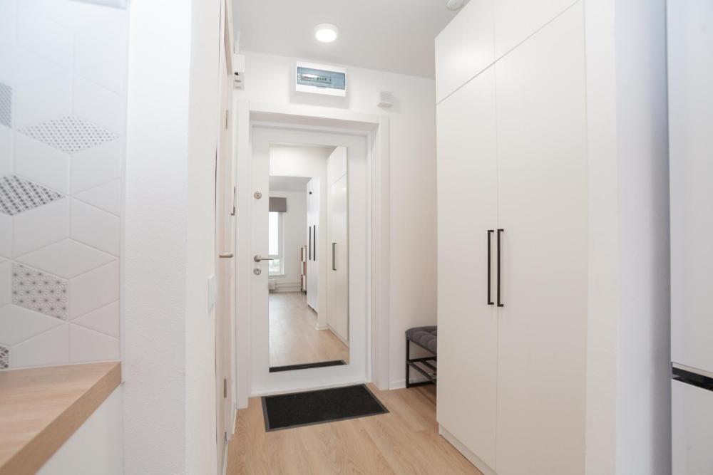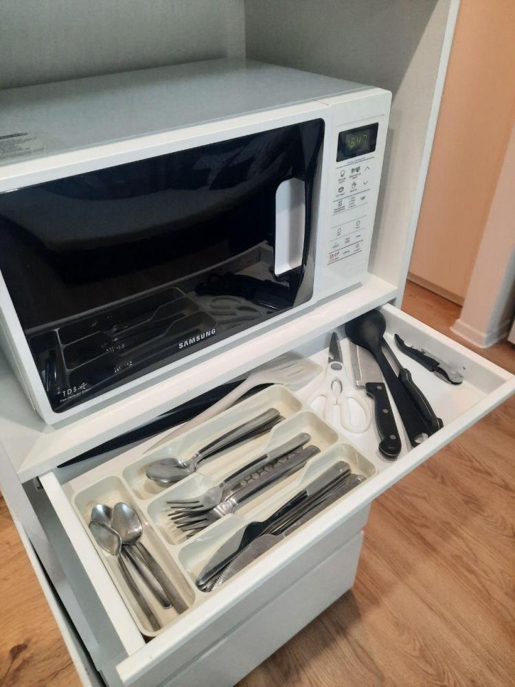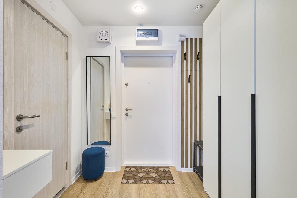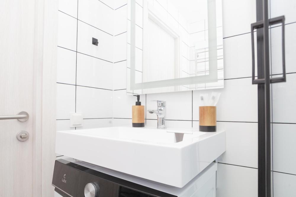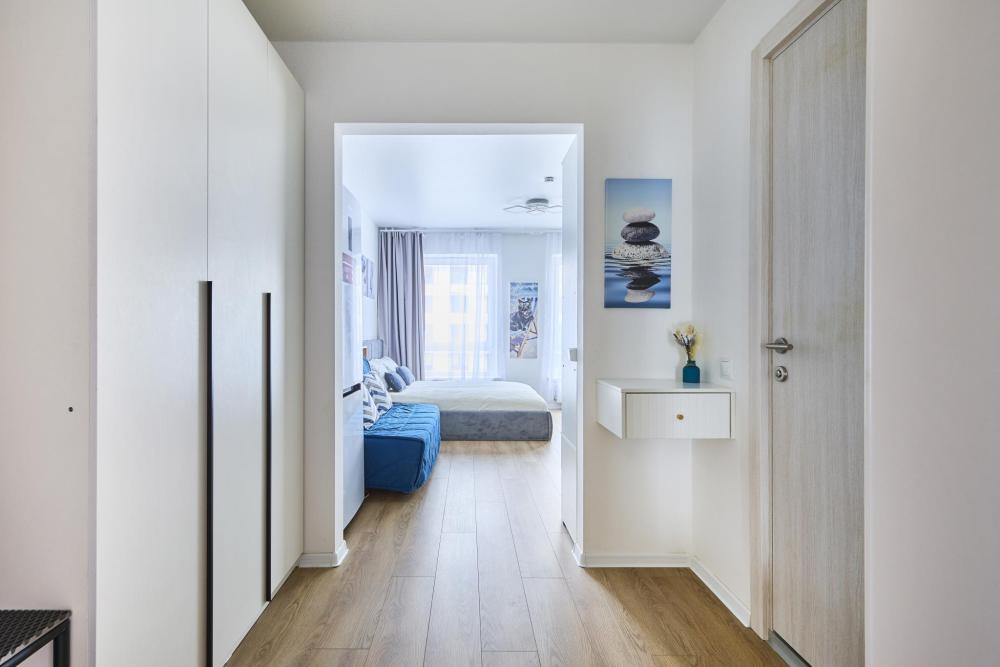 Светлая студию с двумя окнами. В студии есть всё необходимое для проживание 3х гостей: шикарная двуспальная кровать 160*200см с ортопедическим матрасом, комплект постельного белья, комфортный диван-кровать 140х200, комплект постельного белья, кухня с микроволновкой, плитой, чайником и холодильником, полный комплект посуды, столовых приборов, штопор, бытовая техника: стиральная машина, кондиционер, телевизор со смарт тв, wi-fi, утюг и гладильная доска, 3 комплекта одноразовых зубных щёток с пастой, гель для душа, шампунь, туалетная бумага, ватные диски и палочки; в санузле: душевой уголок, фен, 3 комплекта полотенец, раскладная сушилка для одежды и электрический полотенцесушитель; бесплатная приветственная корзина с кучей вкусняшек.