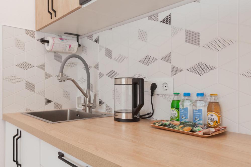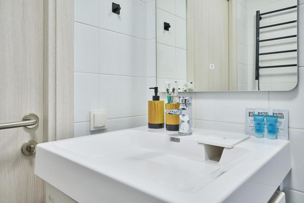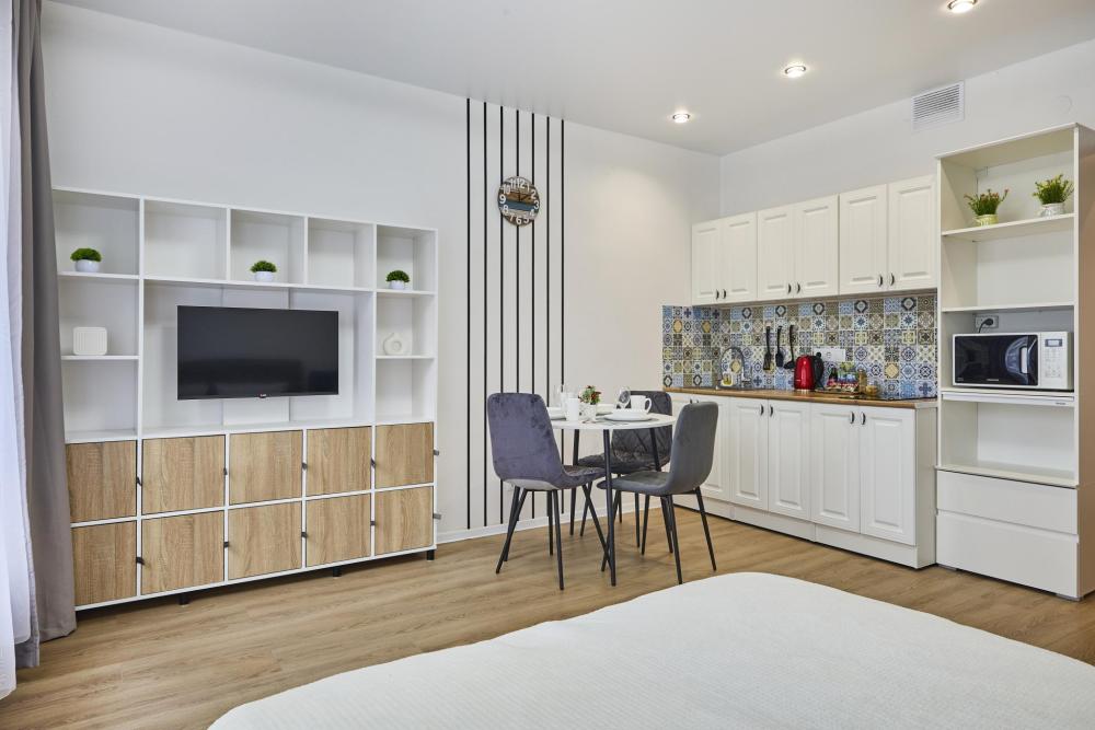 Светлая студия с видом во двор. В студии есть всё необходимое для проживание 2х гостей: шикарная двуспальная кровать 160*200см с ортопедическим матрасом, комплект постельного белья, кухня с микроволновкой, плитой, чайником, холодильником и фильтром для воды, полный комплект посуды, столовых приборов, штопор, бытовая техника: стиральная машина, кондиционер, телевизор со смарт ТВ, Wi-Fi , водонагреватель, утюг и гладильная доска, комплект одноразовых зубных щёток с пастой, гель для душа, шампунь, салфетки, туалетная бумага, ватные диски и палочки; в санузле душевой уголок с тропическим душем, фен, 2 комплекта полотенец, раздвижная сушилка для одежды и электрический полотенцесушитель; бесплатная приветственная корзина с кучей вкусняшек.