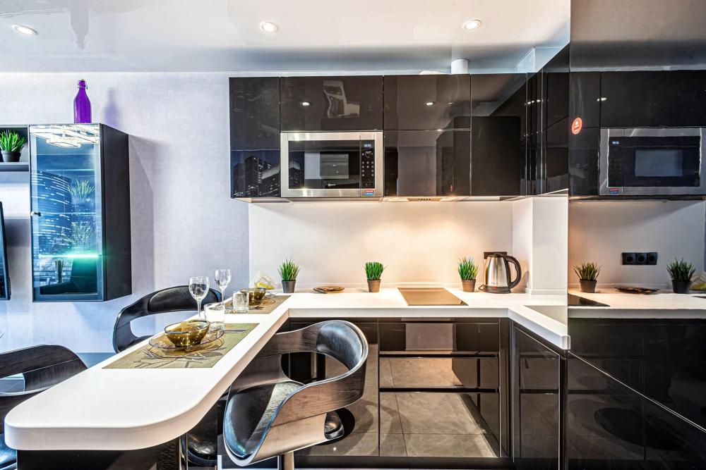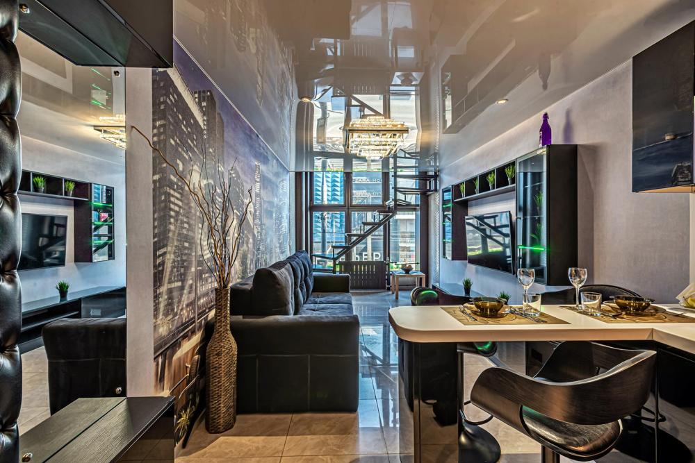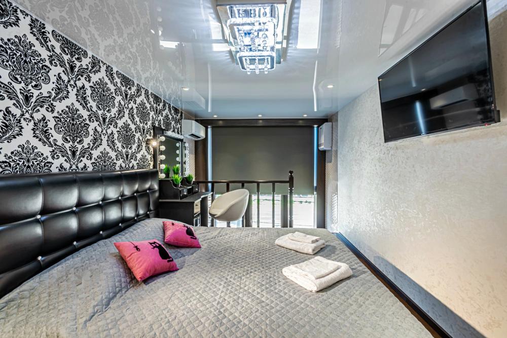 Двухуровневая квартира площадью 40 кв.м, вместимостью до 4 гостей. В квартире имеются следующие удобства: удобная двуспальная кровать на втором этаже, диван-кровать на 1 уровне, ЖК телевизор + кабельное ТВ, Wi-Fi, вся необходимая посуда и столовые принадлежности, электрический чайник, микроволновая печь, гладильная доска, утюг, сушилка для одежды, стиральная машина. Условия проживания: обязательное наличие паспортов при заселении, для вечеринок квартира не сдается, курение запрещено.