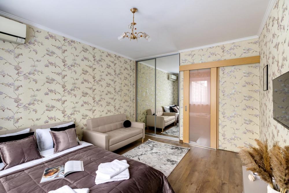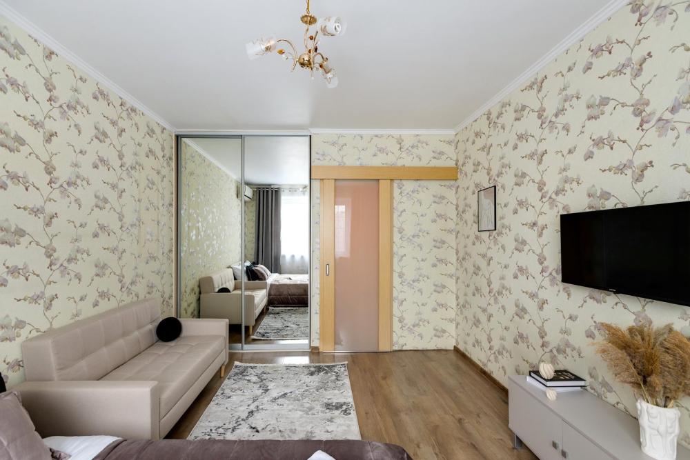 В квартире есть: шкаф, двуспальная кровать, диван двухместный, полотенца, постельные принадлежности, стиральная машина, сушка для одежды, утюг, гладильная доска, телевизор, фен, чайник, столовые приборы, посуда, кастрюля, сковорода, чай, кофе, вода, сахар, гель для душа, шампунь, мыло, комплект белоснежных полотенец и постельного белья.