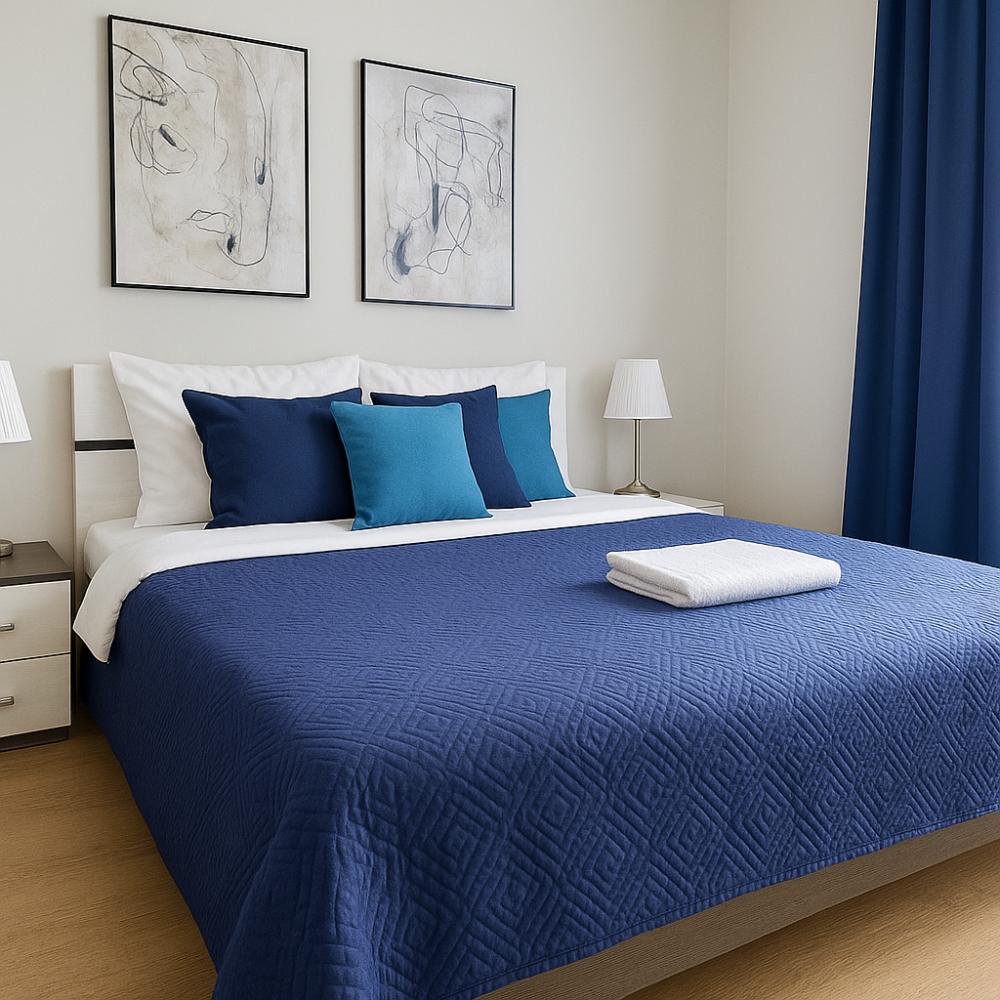 Двухкомнатные апартаменты для 4 гостей. Спальные места: двухспальная кровать с ортопедическим матрацем с эффектом "Меmоry" и диван. В квартире есть места для хранения вещей и обеденная зона, телевизор, фен, стиральная машина, плита , WI-FI, спутниковое ТВ от МТС. Кухня оборудована всей необходимой посудой и техникой. К услугам гостей полотенца, постельное белье, шампунь, гель, мыло.