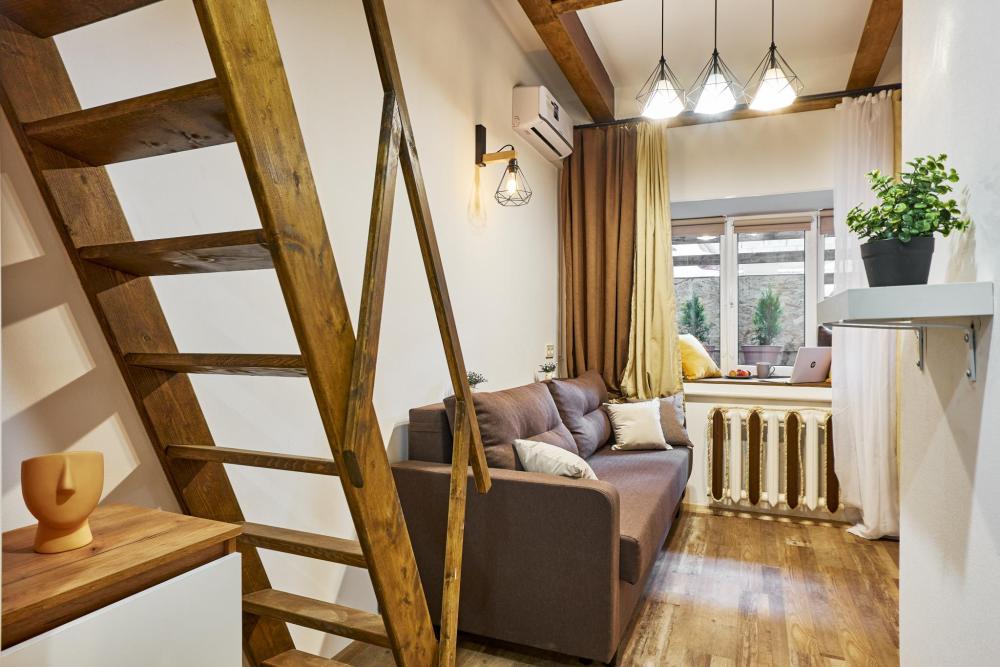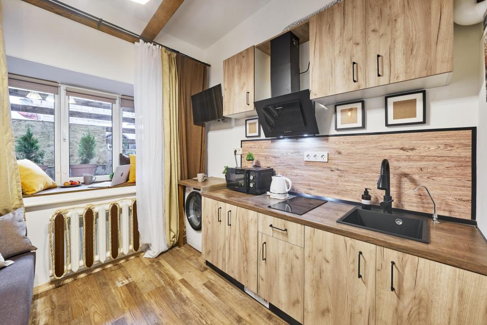 Уютная берлога-апартаменты Wooden House в старинном особняке на берегу Рубцовской набережной. Оригинальная и уютная берлога с деревянными элементами в стиле шале с максимальным комфортом и удобством для гостей. На первом уровне уютная кухня-гостиная с полноценной кухней: холодильник, 2-х конфорочная плита с вытяжкой, микроволновая печь, чайник, кухонные принадлежности, вся необходимая посуда (кастрюли, сковородки, бокалы, столовые приборы), в апартаментах есть новый встроенный фильтр с глубокой системой очистки воды, стиральная машина Smart с 18 режимами, включая быструю 15-минутную стирку, Wi-fi, smаrt tv с голосовым помощником, бесплатный кинотеатр Okko, кондиционер, фен, утюг, гигиенические принадлежности, широкий подоконник с мягкими подушками и изюминка апартаментов - зеленые туи в горшках за окном, которые подарят еще большее ощущение уютного оазиса, также они выделяют фитонциды и хорошо чистят воздух. В гостиной зоне удобный 2-спальный раскладной диван - спальное место 140*200. На втором уровне очень уютная спальня с широким ортопедическим матрасом 180*200 и свежим постельным бельем. Небольшое, но очень уютное широкое мягкое пространство подарит незабываемое ощущение спокойствия и расслабления. Апартаменты находятся в пристройке со своим отдельным входом, что очень удобно, нет необходимости таскаться с тяжелым багажом и вещами по лестницам. И можно парковаться прямо у входа, что очень актуально для гостей Москвы на автомобилях.