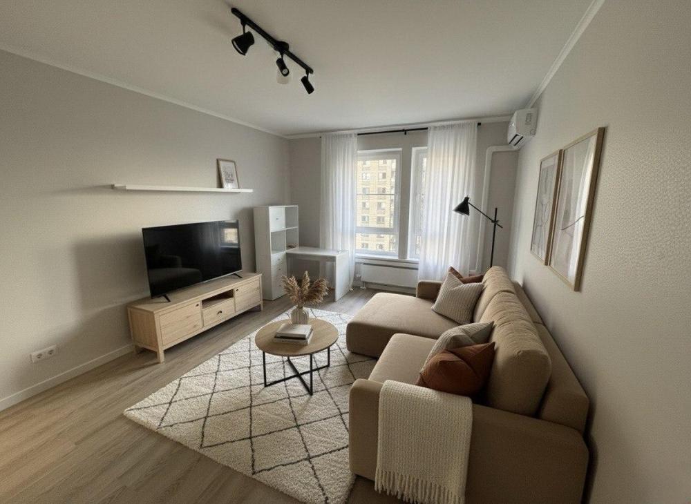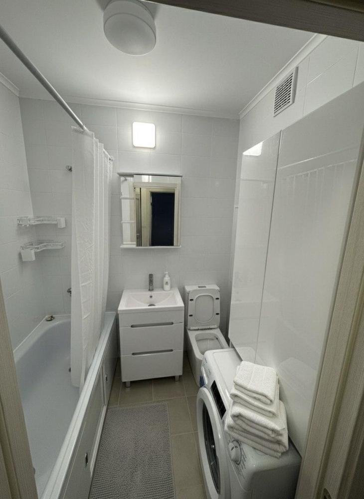 В мастер комнате размещен двуспальный диван (160x200) и рабочий стол, где можно посидеть за ноутбуком, ТВ и большая гардеробная. В гостиной-столовой размещены кухня, раскладываемый односпальный диван (90x200), обеденный стол. Кухня оборудована всей необходимой техникой и посудой (микроволновая печь, холодильник, плита, духовка, посудомоечная машина, электрический чайник, кофемашина). В ванной комнате находится большая ванна, стиральная машина, фен, косметические средства и белоснежные полотенца. К услугам гостей также предоставляется Wi-Fi, утюг, гладильная доска.