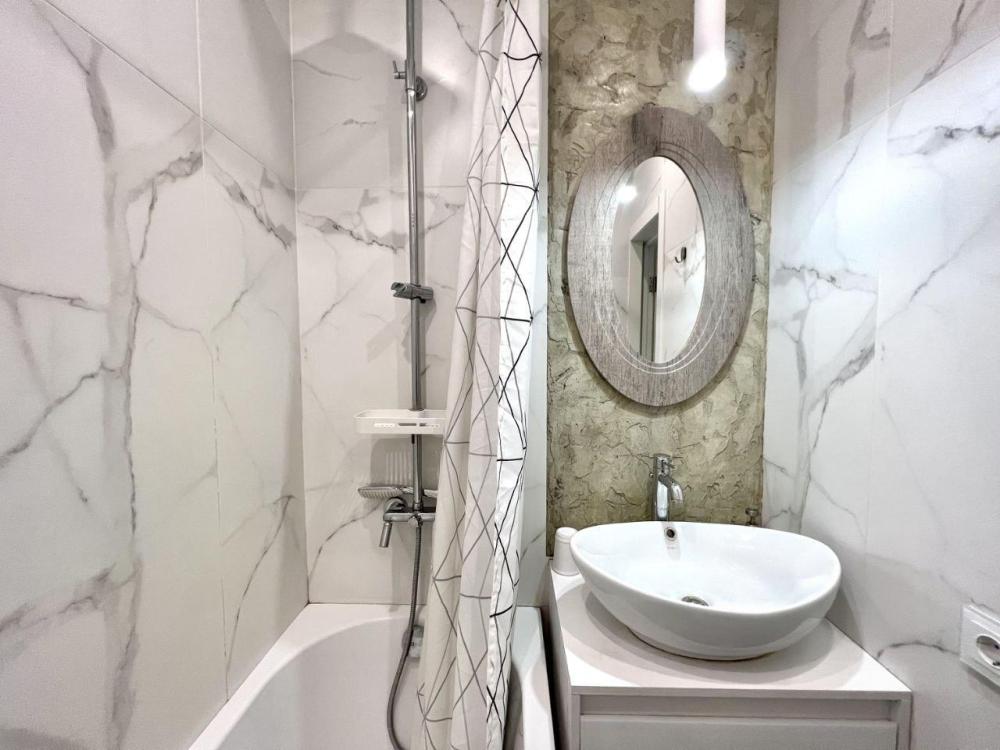 Гостиная: Просторная гостиная располагает к отдыху и расслаблению. Здесь вы найдете удобный диван с мягкими подушками, где можно отдохнуть после насыщенного дня за просмотром любимого фильма на телевизоре с плоским экраном. Горчичный ковер добавляет тепла и уюта, а акцентная стена в мятно-зеленом цвете придает интерьеру свежесть. Стильная перегородка из деревянных реек зонирует пространство, создавая ощущение уединения и обособленности. Кухня: Современная и функциональная кухня оборудована всем необходимым для приготовления вкусных блюд. Вы найдете здесь плиту, духовку, микроволновую печь, холодильник, чайник и всю необходимую посуду. Ванная комната: Ванная комната выполнена в светлых тонах с использованием мраморной плитки, создающей ощущение чистоты и свежести. В вашем распоряжении ванна, туалет, раковина и зеркало с подсветкой. Предоставляются полотенца, фен и необходимые туалетные принадлежности. Дополнительные удобства: • Высокоскоростной Wi-Fi • Телевизор с плоским экраном • Стиральная машина • Утюг и гладильная доска • Постельное белье и полотенца • Туалетные принадлежности