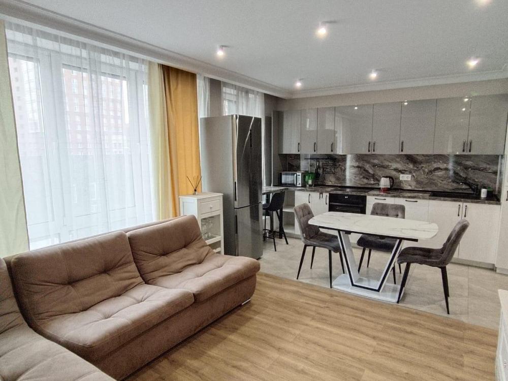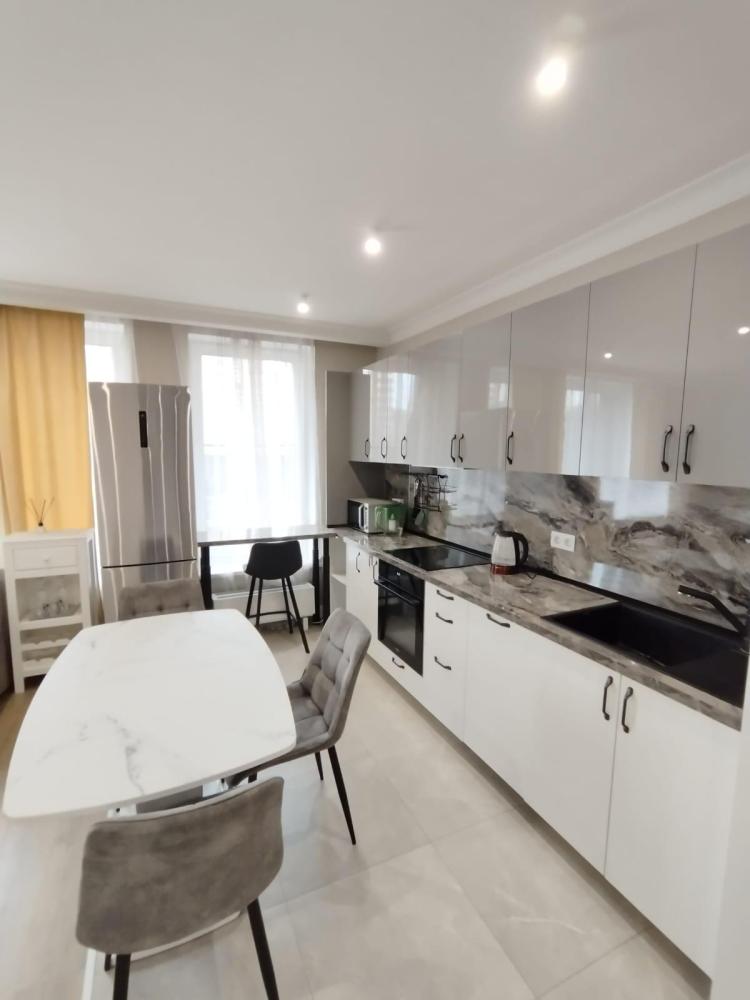 Квартира оснащена современными отделочными материалами, что обеспечит комфортное проживание. Удобная планировка, большие окна, обеспечивающие естественное освещение, создают атмосферу уюта и спокойствия. Две спальни, кухня-гостиная, 2 санузла. Полностью оборудованная кухня, фен и утюг, дополнительные комплекты белья и полотенец.