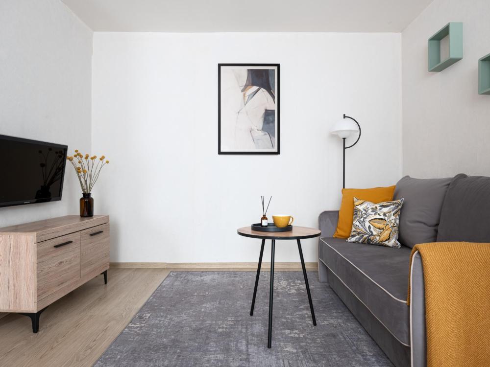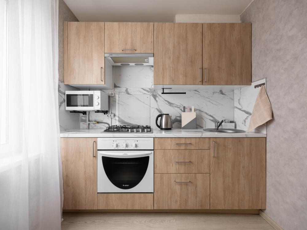 Уютные, однокомнатные апартаменты. Для размещения до 4-х гостей. Квартира полностью укомплектована всем необходимым для комфортного проживания: раскладной диван, двухспальная кровать, кухонный блок с набором всей необходимой посуды и техники, фен, стиральная машинка. Тёплый дом с ухоженным двором, где есть детская площадка — отличное место для отдыха с детьми.