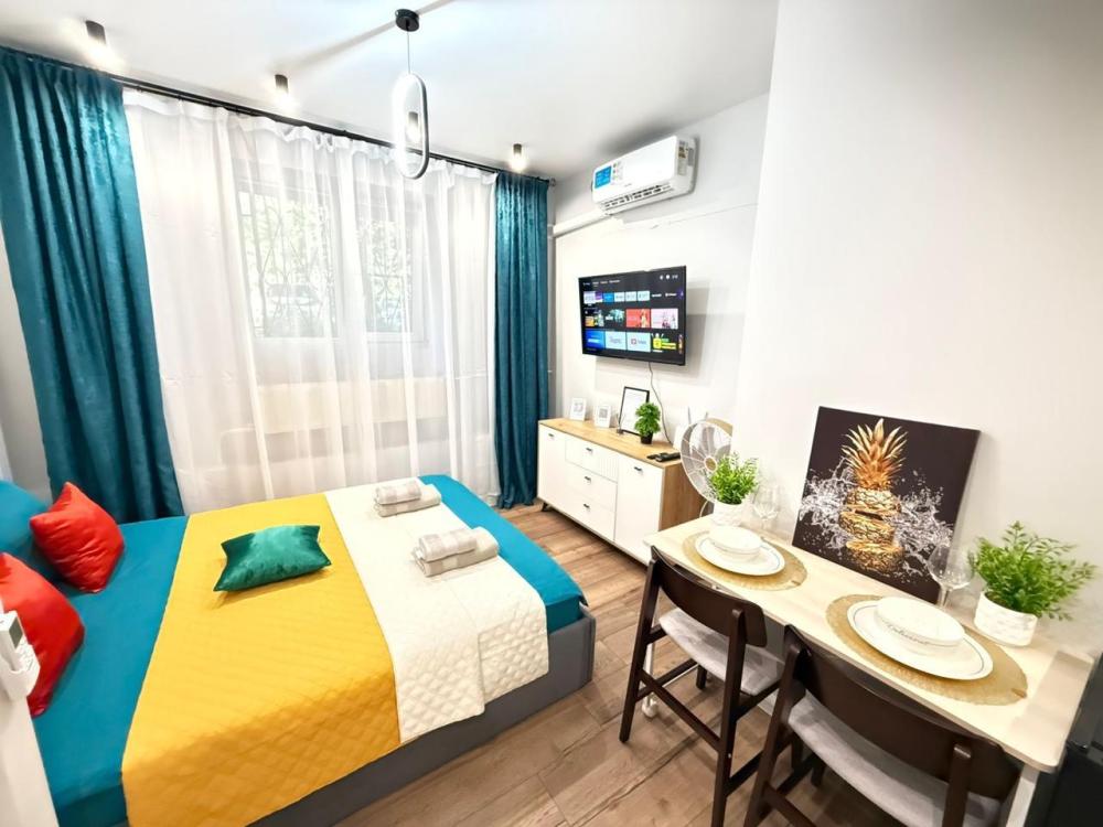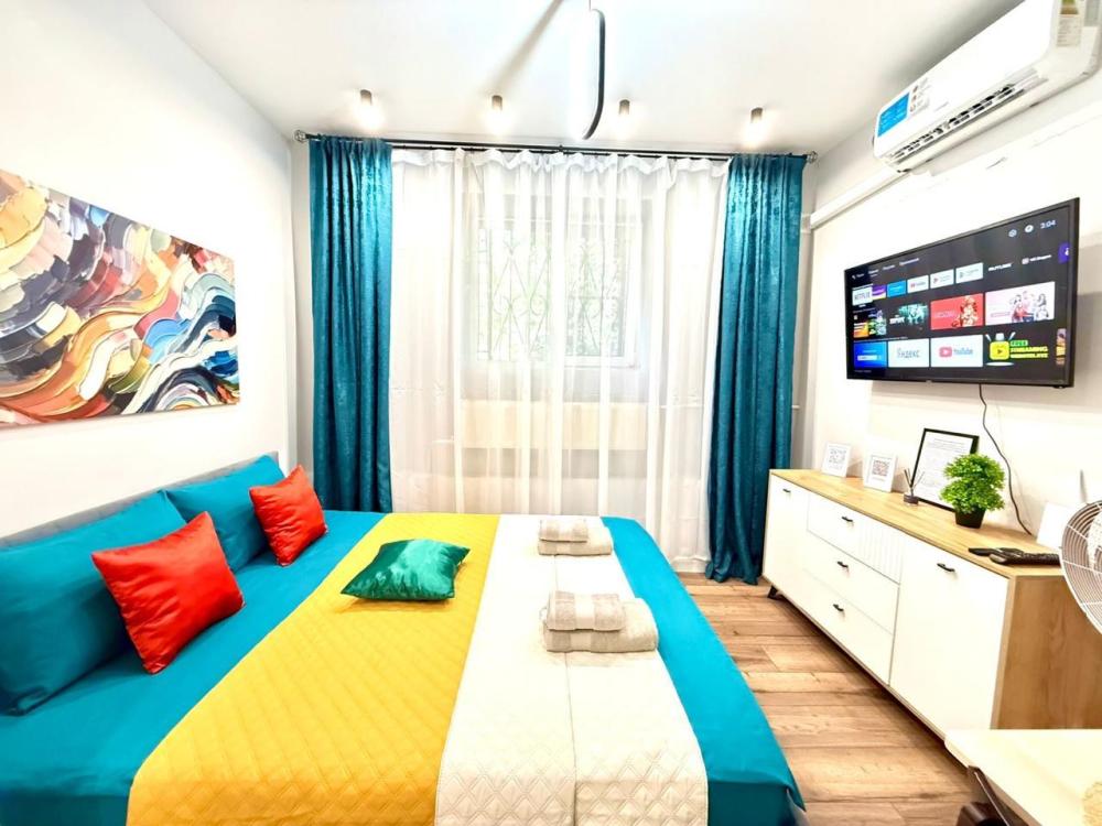 Уютные апартаменты студия с двуспальной кроватью. Квартира оснащена скоростным Wi-Fi , Smart TV с приложениями Rutube, VK Видео и тп., стиральной машинкой, электрической плиткой, СВЧ, чайником, капсульной кофемашиной, утюгом и феном.Апартаменты находятся на полу-цокольном этаже, окна выходят в тихий двор.