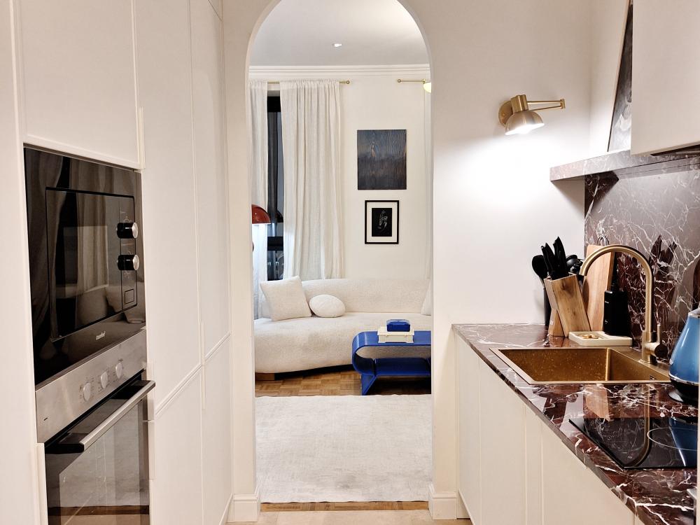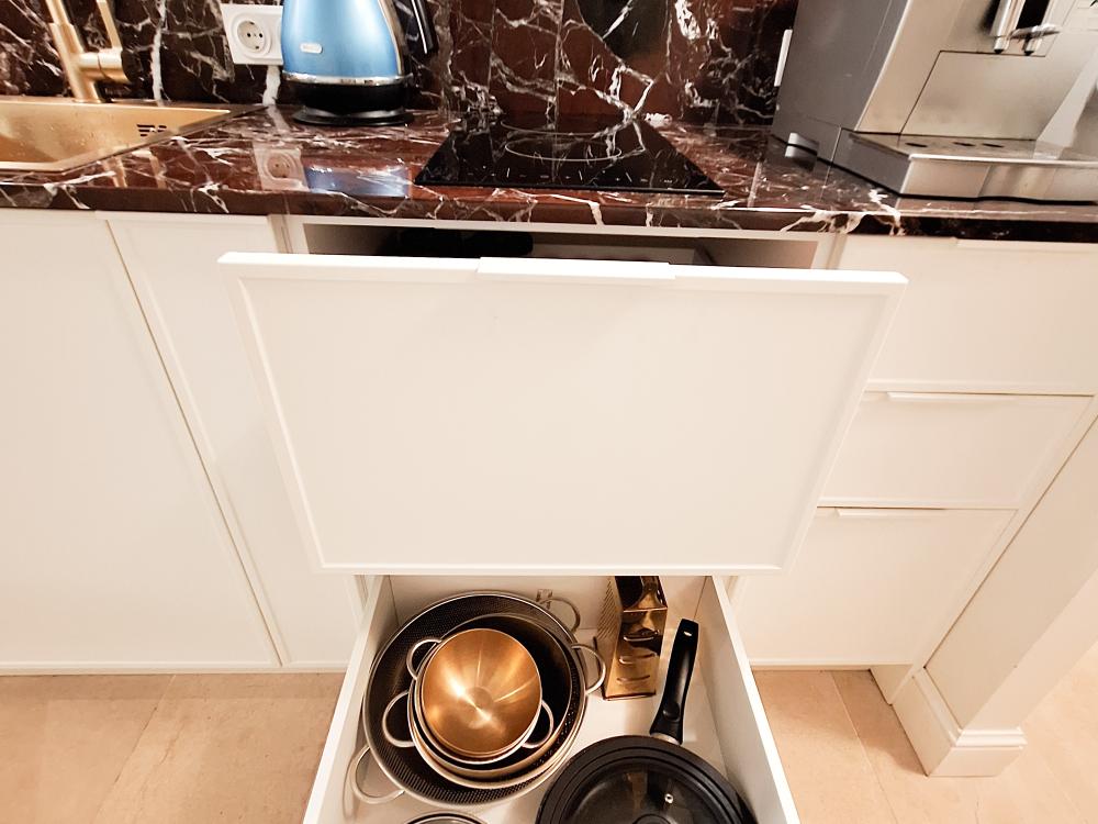 Уютные апартаменты, оборудованные всем необходимым для комфортного проживания. В апартаментах имеется Wi-Fi, телевидение, кондиционер, посудомоечная машина, кофемашина, электрическая плита, духовой шкаф, микроволновая печь, холодильник, чайник, набор посуды и столовые приборы, детский столик, стиральная и сушильная машины, фен, утюг, гладильная доска, сушилка для белья, гардеробная комната, двуспальная кровать с ортопедическим матрасом, чистое постельное белье, свежие пушистые полотенца и необходимые предметы гигиены.