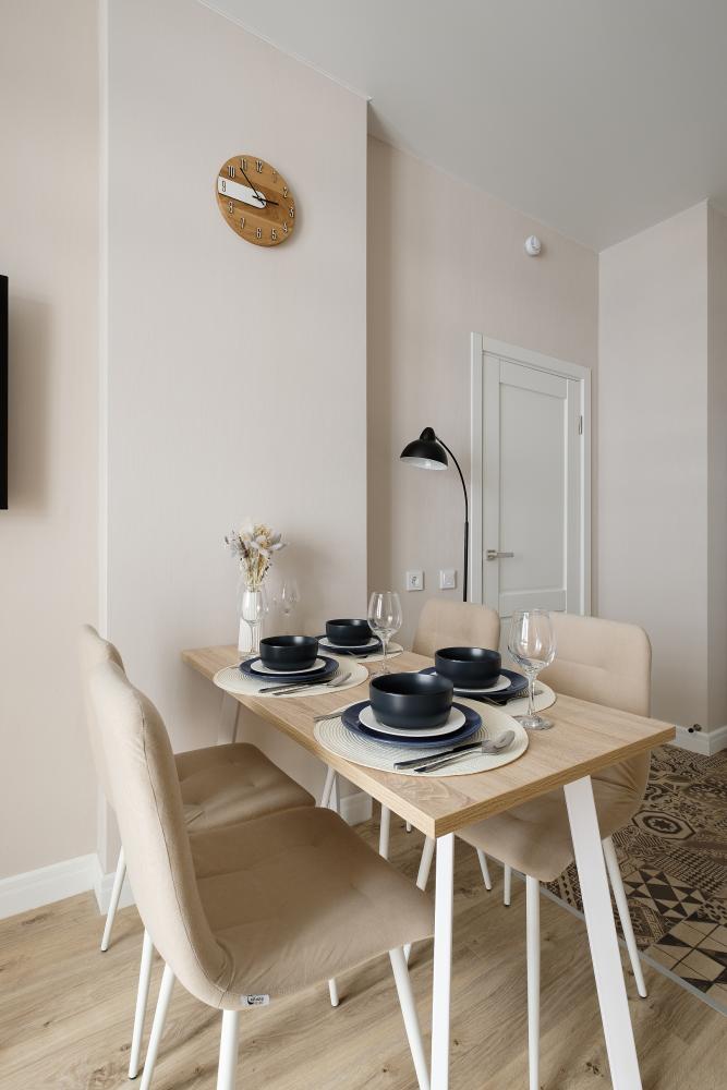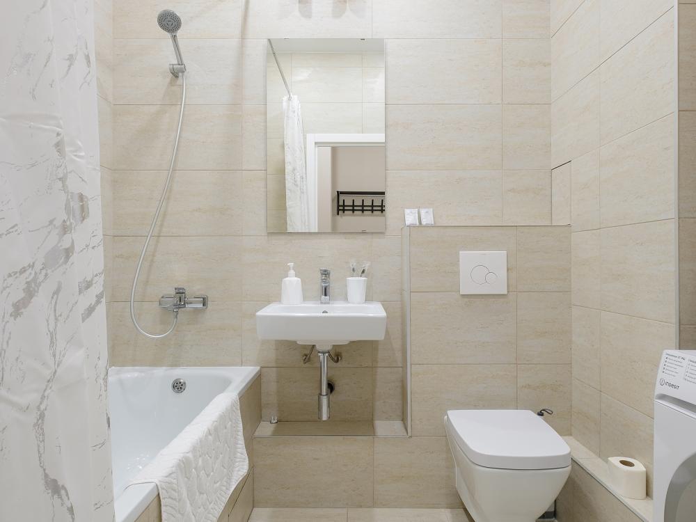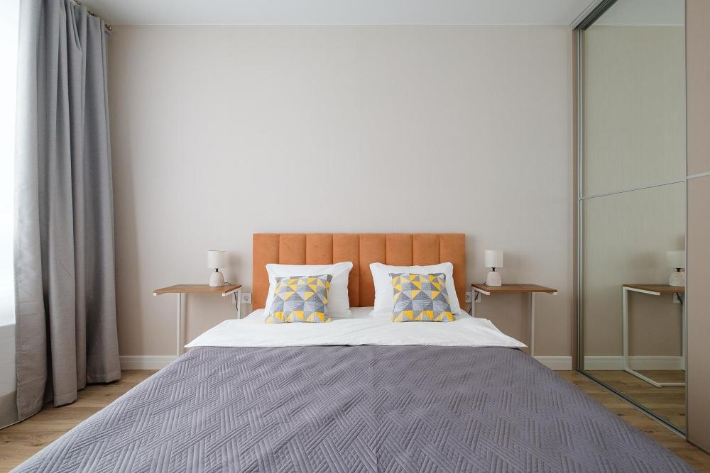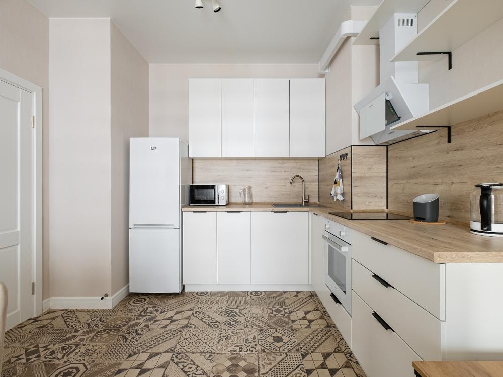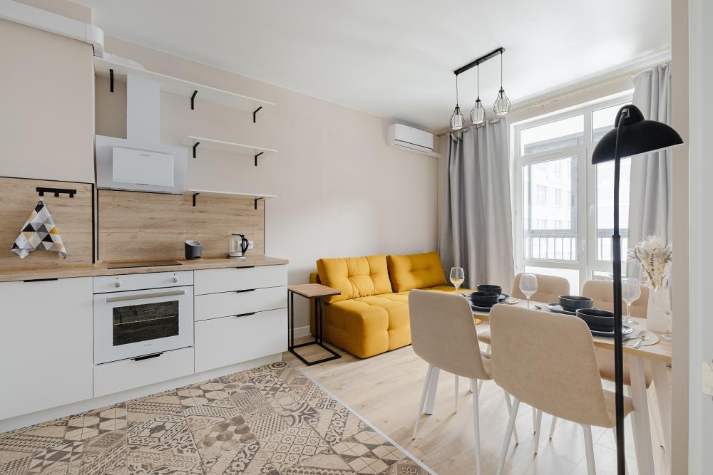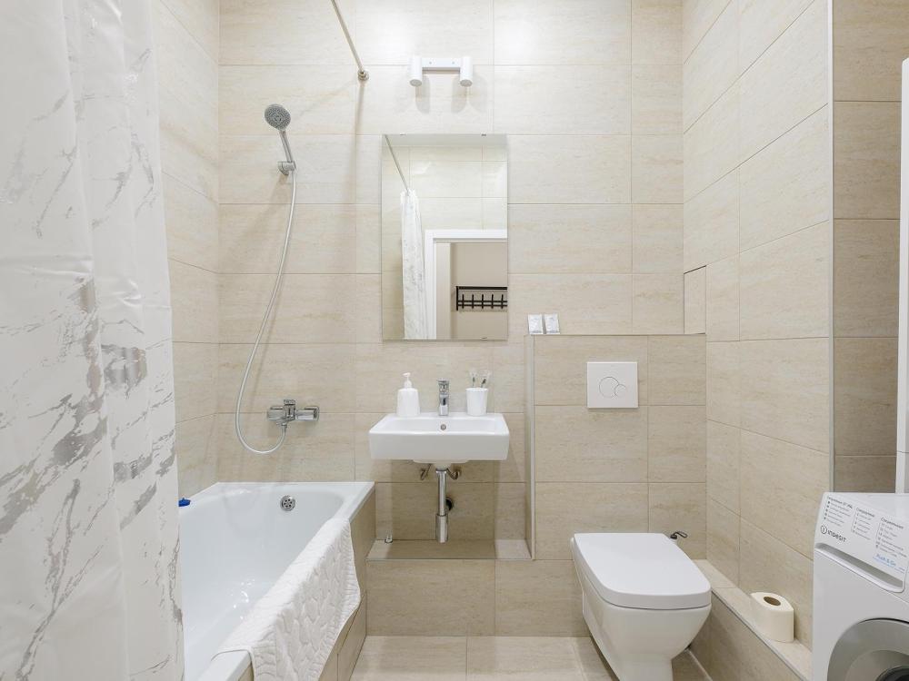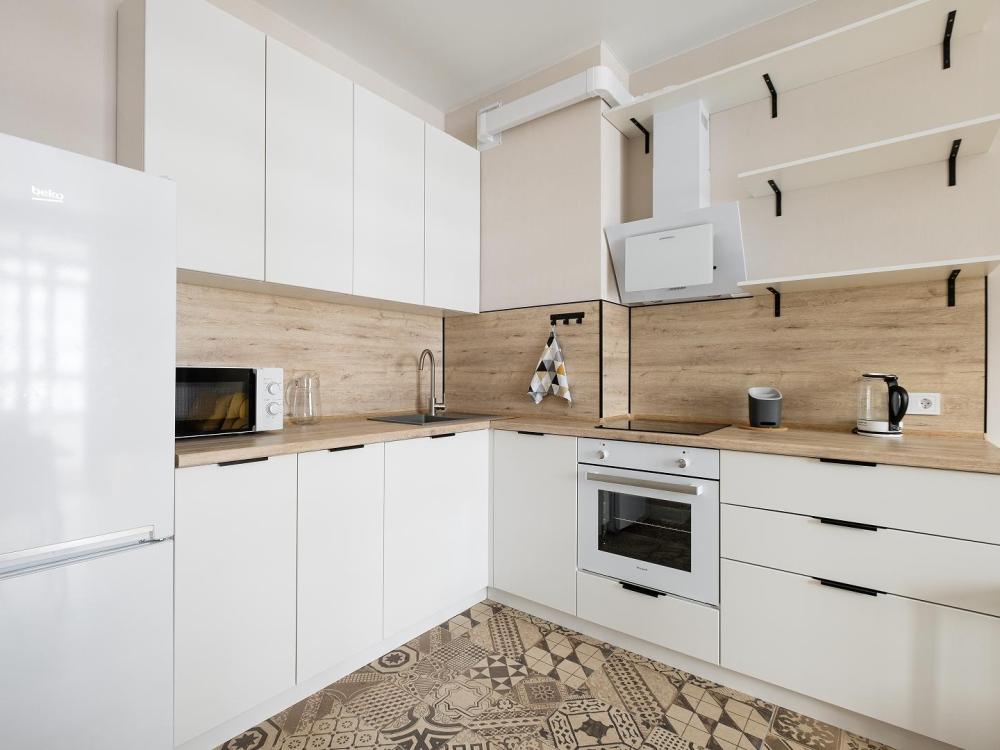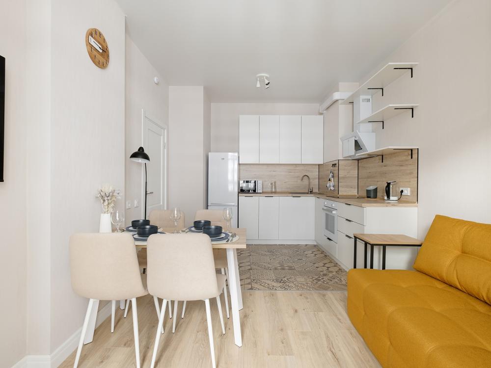 Уютны евродвухкомнатные апартаменты с просторной кухней - гостиной, отдельной спальней и полноценной ванной комнатой. Новый ремонт и современная техника: 2 телевизора smart в каждой комнате, кондиционер, плита и духовка, вытяжка, микроволновка, пылесос, утюг и гладильная доска, стиральная машина, фен. В спальне вместительный шкаф и двуспальная кровать со свежим бельем. Кухня оснащена посудой и аксессуарами, необходимыми для готовки. В гостиной зоне расположен удобный диван на двоих.