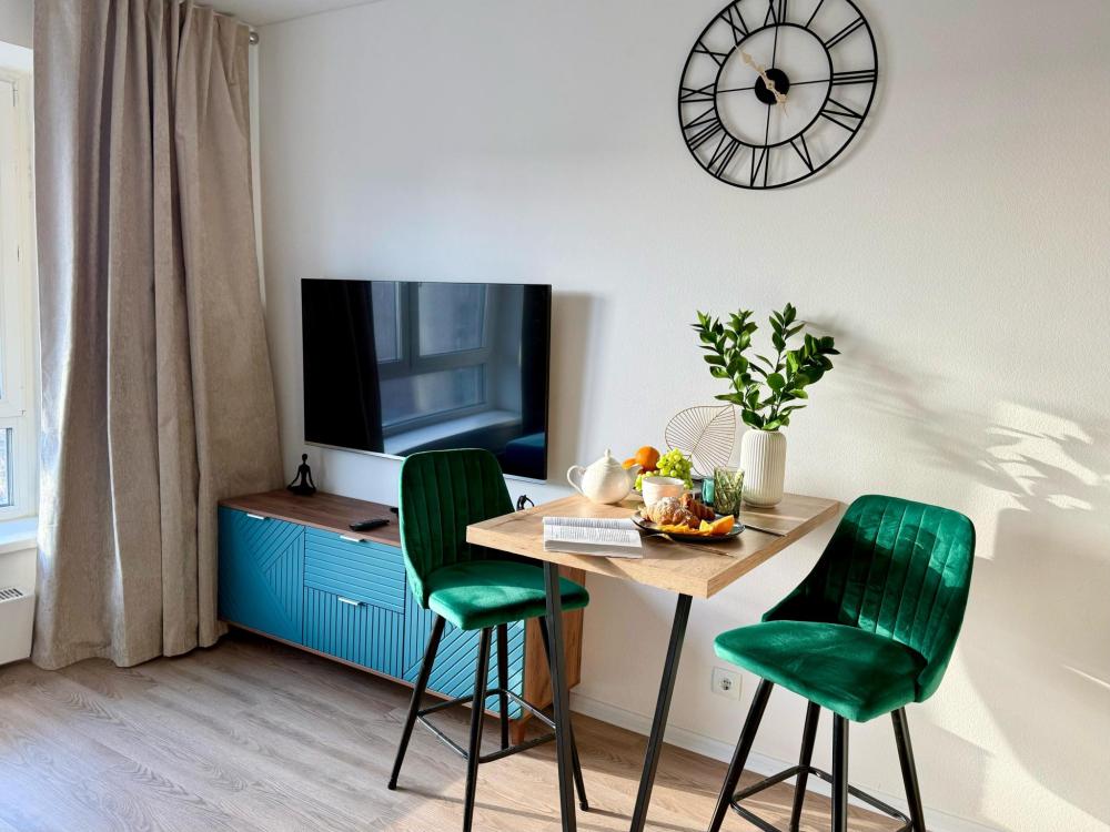 Стильная студия с дизайнерским ремонтом в ЖК «Люблинский парк». 15 минут пешком до метро «Братиславская». Для комфортного сна — широкий двуспальный диван. Круглосуточное бесконтактное заселение. Отчетные документы. Вам непременно понравится в наших апартаментах! И вот почему: Цифровое телевидение. Большой двуспальный диван. Постельные принадлежности для здорового сна и шторы блэкаут. В кухонной зоне: холодильник с морозильной камерой, варочная панель, СВЧ-печь, чайник. Набор посуды и столовых принадлежностей на 2 персоны. Чай и кофе. Вы сможете приготовить себе завтрак, обед и ужин. В ванной комнате: душевая, махровые полотенца, фен, шампунь, мыло, гель для душа. Стиральная машина, сушилка для белья. Утюг и гладильная доска. Идеальная чистота: генеральная уборка проводится после каждого выезда. При долгосрочном бронировании бесплатная уборка каждый 7 день. Отчетные документы установленного образца. Возможна оплата на р/с организации. Оформление договора по запросу. Навигация: метро «Братиславская» — 15 минут пешком. Контакты: ждем ваших сообщений с 9 до 23 часов! Квартиры посуточно в Москве — «Мажорис». Наши правила: Базовая уборка включена в стоимость. Время заселения — с 15:00, расчетное время (время отъезда) — 12:00. Круглосуточное бесконтактное заселение. Минимальный возраст гостей — 20 лет (не считая детей). Курение в квартире строго запрещено. Проведение вечеринок строго запрещено. Для регистрации заезда необходим паспорт. Страховой депозит за сохранность имущества возвращается после уборок в день выезда. При отмене бронирования менее чем за 2 суток до времени заезда страховой депозит не возвращается. Ждем вас! С уважением, команда «Мажорис»!