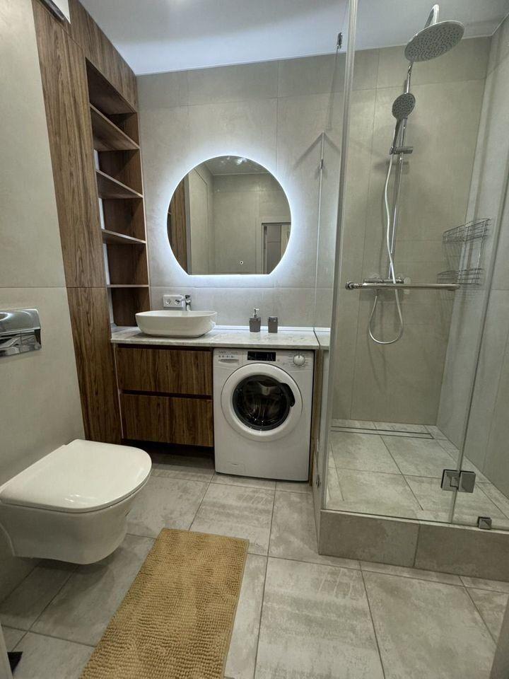 Комфортная квартира на 4 человек. В квартире: 1 двуспальная кровать,1 двуспальный диван-кровать. Кухня-гостиная оборудована всей необходимой посудой и техникой: Посудомоечная машина ,Плита ,Духовка ,Чайник, Холодильник. Совмещенный санузел: Душевая кабина, Стиральная машина, Фен, Махровые полотенца, Средства личной гигиены.