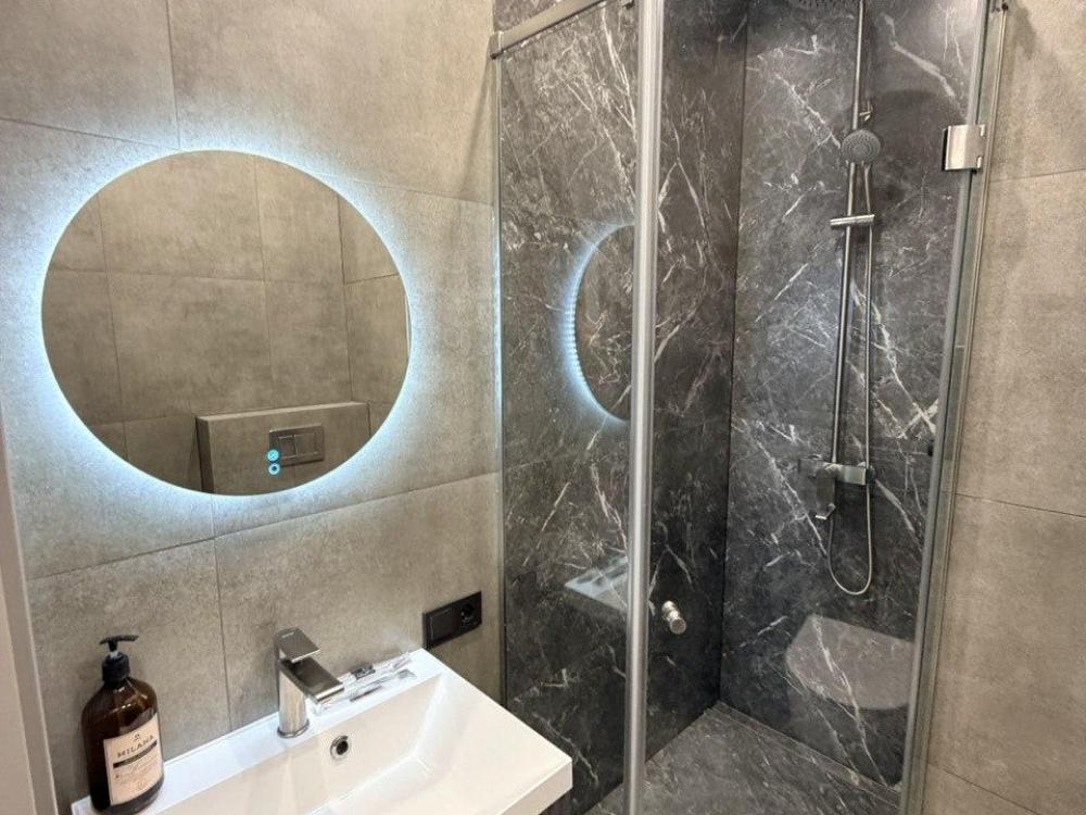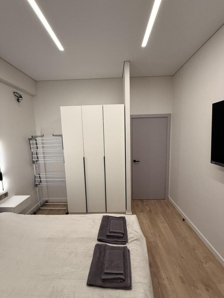 В апартаментах: полностью оснащенная кухня, двуспальная кровать, раскладной диван, Wi-Fi, Smart TV, умная колонка с Алисой, постельное белье и полотенца, утюг, гладильная доска, сушка, средства личной гигиены, а также бесплатно доступна площадка Кинопоиск.