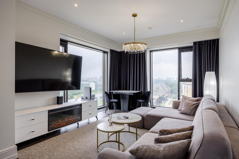 Видовой апартамент премиум класса. 2 спальни + гостинная+кухня. 2 с/у ( в одной ванная, в другой душевая) , шторы управляются с пульта, Большое количество шкафов, 3 оригинальных смарт тв samsung с подключенными платными приложениями, массажное кресло, Яндекс станция Алиса Max, игровая консоль PS5 с 2 джойстиками и новыми играми. Полностью укомплектован современной мебелью и техникой. Постельное белье страйп сатин, люксовый матрас, обеспечит комфортный сон. Лучшие средства гигиены, полотенца, халаты. Проживание в апартаменте Вам точно понравится.
