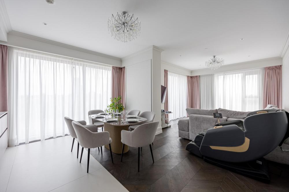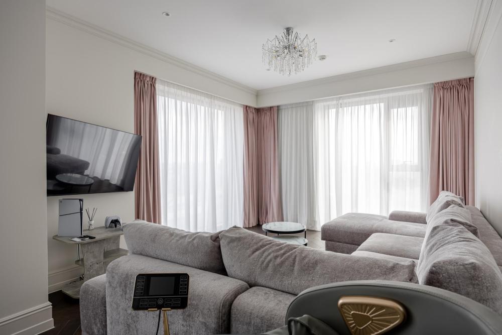 Новые апартаменты с 2 спальнями и гостиной+кухня. 2 с/у ( в одной ванная, в другой душевая) , шторы управляются с пульта, Большое количество шкафов, Яндекс станция Алиса Max. Полностью укомплектован современной мебелью и техникой. Постельное белье страйп сатин, люксовый матрас, обеспечит комфортный сон. Лучшие средства гигиены, полотенца, халаты. Проживание в апартаменте Вам точно понравится.