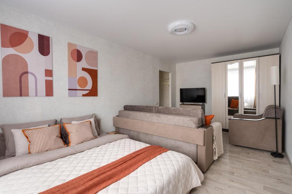 Комфортный сон - кровать с удобным матрасом и раскладывающийся диван, на которых, с комфортом могут расположиться 4 человека. Уютные спальни с ортопедическими матрасами и мягким постельным бельем помогут восстановить силы после насыщенного дня. Полноценная кухня, оборудованная всем необходимым для приготовления еды. Здесь есть все необходимое для приготовления любимых блюд, от современной плиты до разнообразной посуды. Вся бытовая техника и приборы: телевизор, фен, утюг, стиральная машина, микроволновая печь. Предоставляются гигиенические принадлежности (зубная паста, тапочки, гель для душа, свежие белье и полотенца). Быстрый Wi-Fi, Smart-Tv. Оставайтесь на связи с миром и наслаждайтесь любимыми фильмами и сериалами благодаря высокоскоростному Wi-Fi и Smart-TV.