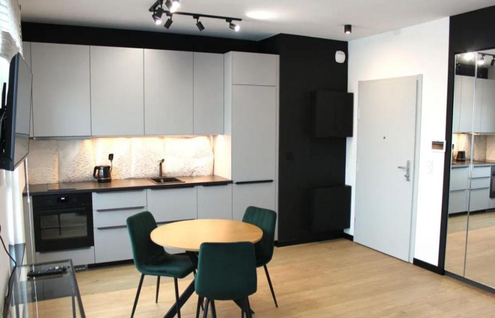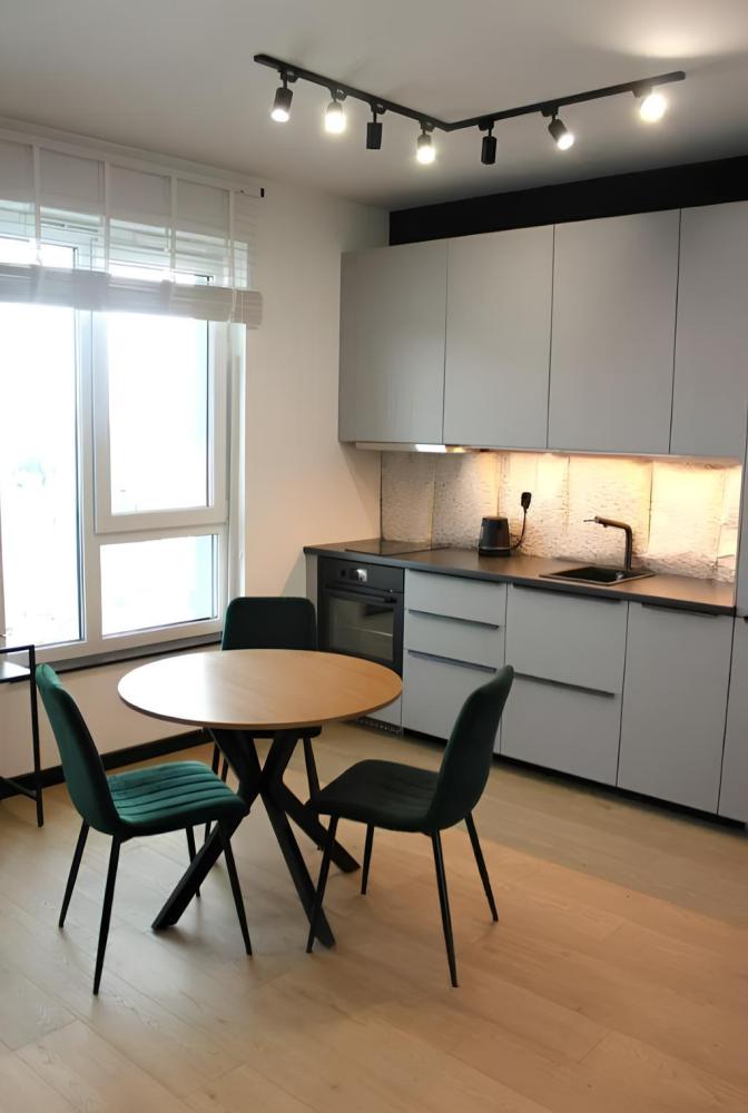Эта стильная студия оформлена в современном минималистичном стиле с использованием серых и черных тонов с яркими акцентами. • Жилое пространство: Комфортная зона отдыха с удобным диваном? телевизором и обеденным столом/ • Кухня: Современная кухня оборудована всем необходимым для приготовления вкусных блюд: • Плита • Духовка • Микроволновая печь • Холодильник • Чайник • Вся необходимая посуда и кухонные принадлежности • Ванная комната: В ванной комнате вас ждет современная душевая кабина, туалет, раковина и стиральная машина. Дополнительные удобства: • Высокоскоростной Wi-Fi • Телевизор с плоским экраном • Стиральная машина • Утюг и гладильная доска • Постельное белье и полотенца • Туалетные принадлежности