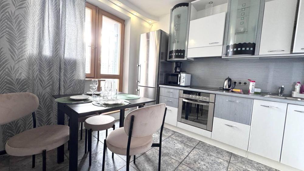 Светлая 1-к квартира рядом с метро. Метро Строгино (5 минут пешком). В квартире есть все необходимое для проживания 2-х человек: - двуспальный диван;; - вместительный шкаф; - кондиционер; - детский стул, манеж-кровать для ребенка (по запросу); - Wi-Fi, Smart TV; - гладильная доска, утюг, сушилка; - постельное белье, комплект полотенец. Кухня: - электрическая плита, микроволновка, вытяжка, чайник, кофемашина, холодильник; - набор посуды и все необходимые принадлежности для приготовления пищи. Ванная комната: - ванна, стиральная машина, фен; - гель для душа, шампунь, мыло.