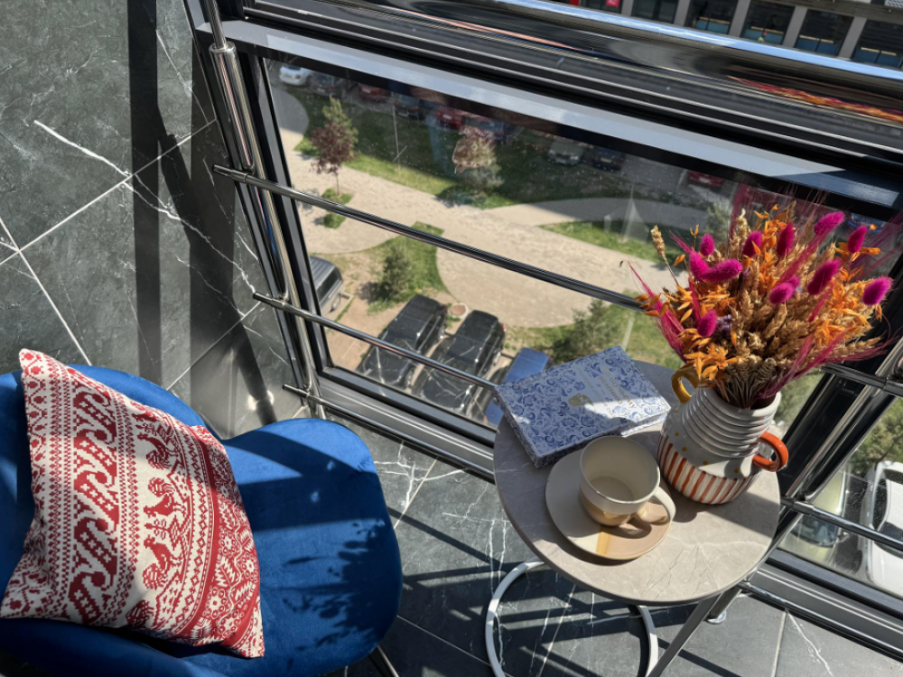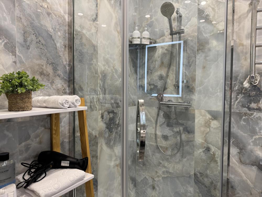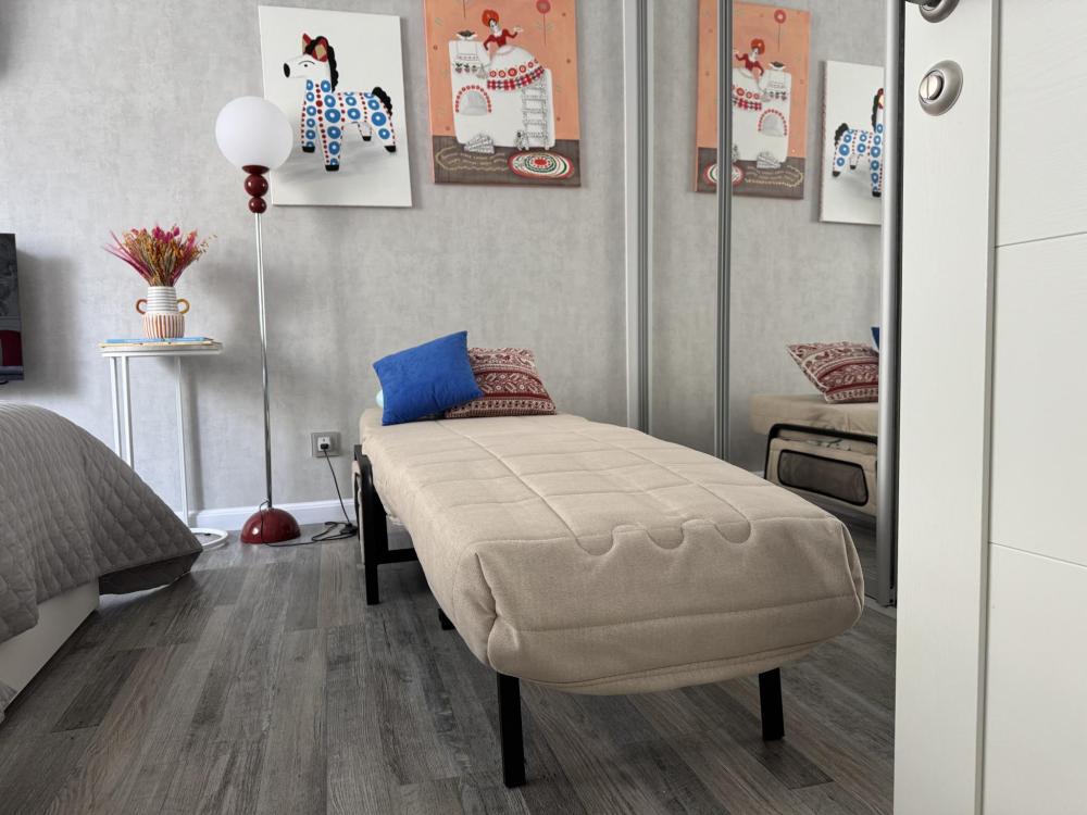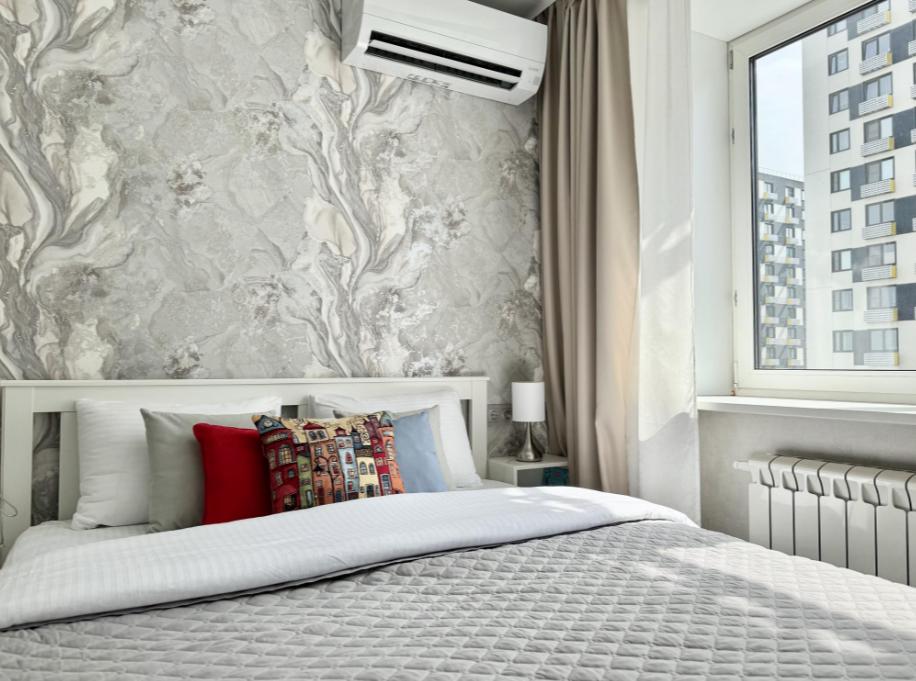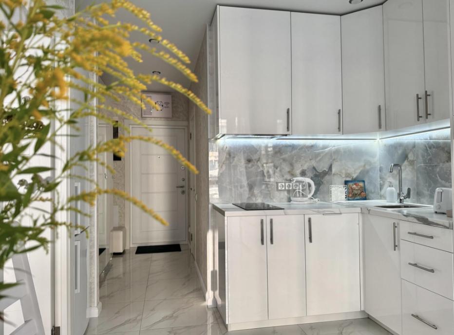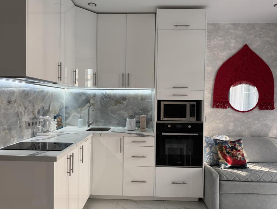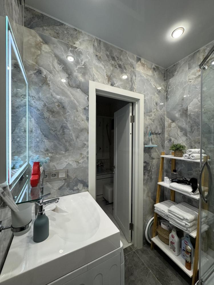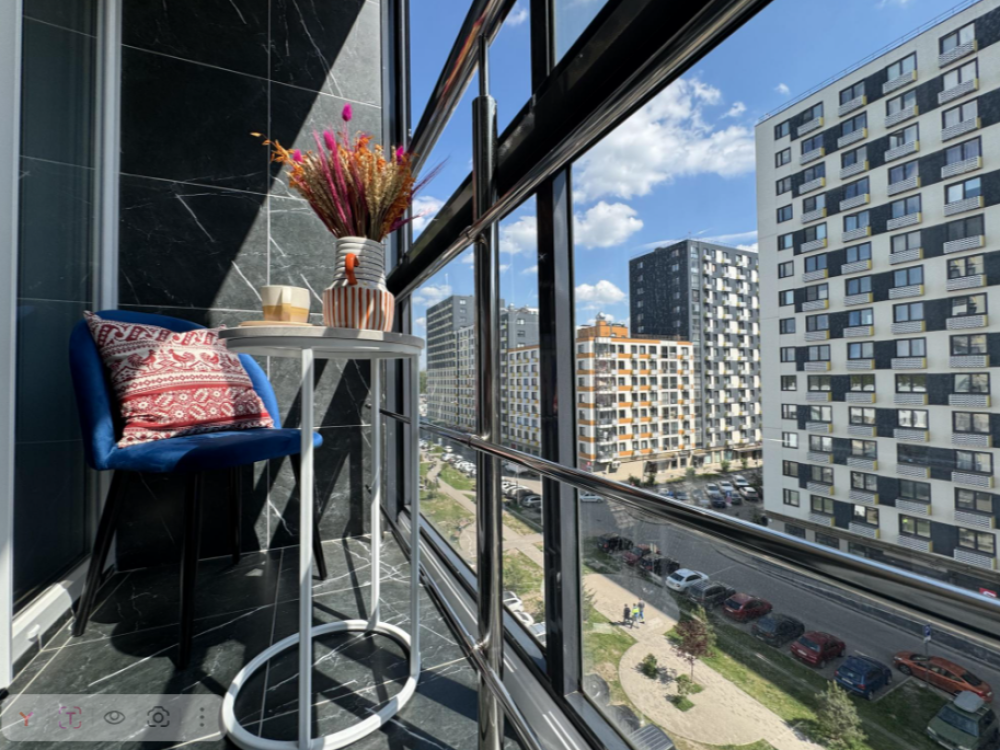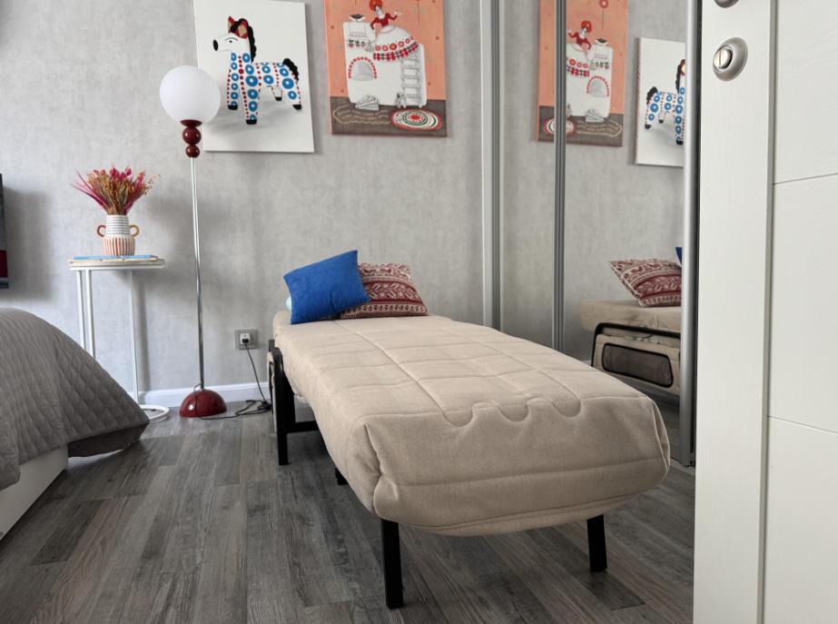 Уютные апартаменты с арт-объектами в русском стиле. Спальные места: двуспальная кровать с удобным матрасом, односпальный диван-кровать, кресло кровать. Кондиционеры установлены во всех помещениях, телевизоры в комнате и кухне-гостиной с функцией Смарт ТВ. На кухне установлен фильтр с трехступенчатой системой очистки воды. Гостям предоставляются: полотенца, постельное белье, тапочки, гель для душа, шампунь, средство для умывания, стиральный порошок и кондиционер для белья, средство для мытья посуды, в том числе в посудомоечной машине, чай, кофе, сахар, соль. В квартире есть теплые полы. В комнате установлен камин. Квартира оборудована современной техникой для комфортного проживания: посудомоечной машиной, капсульной кофемашиной, тостером, стиральной машиной, а так же самоваром с функцией Термопот, электрический чайник. Также в квартире есть: утюг, гладильная доска, раскладная сушилка для одежды, сушка для обуви.