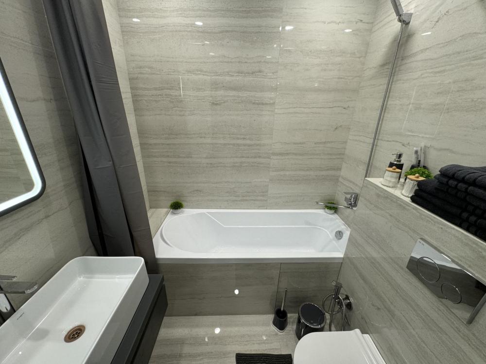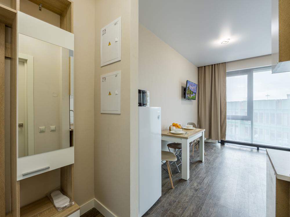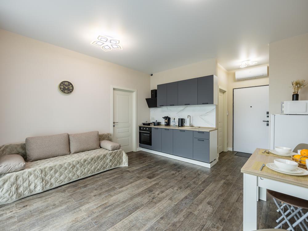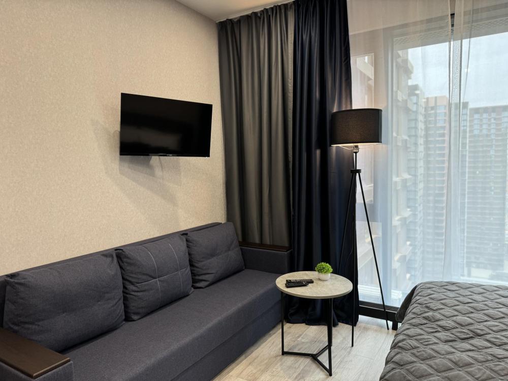 Просторная студия в ЖК бизнес-класса "Метрополия" (корпус Афины). Останавливаясь в наших апартаментах на время командировки или отдыха, вы получаете максимально комфортное жильё, полностью укомплектованное всем необходимым. Для наших гостей доступны следующие удобства: - Качественный евроремонт; - Большое панорамное окно в пол с видом на окрестности 22 этажа; - Кондиционер, высокоскоростной интернет, телевидение, варочная панель, микроволновая печь, чайник, холодильник; - Комфортабельная двуспальная кровать с ортопедическим матрасом, а также раскладной двуспальный диван; - Качественное белое постельное бельё, подушки, одеяла; - Полноценная кухня с полным набором посуды и бытовой техники. Питьевая вода, чай, кофе, сахар, соль, салфетки; - Ванная комната с душевой кабиной и унитазом, гигиенические принадлежности (зубная щётка, паста, тапочки, шампунь, кондиционер для волос, гель для душа, ватные палочки и диски и прочее); - Всё для ухода за одеждой, а именно: стиральная машина, порошок для белья, гладильная доска, утюг; - Профессиональная уборка апартаментов; - Возможно размещение с Вашим питомцем по предварительной договорённости и за дополнительную оплату за клининг. Дом расположен в пешей доступности до МЦК Угрешская (3 минуты), метро Волгоградский проспект - в 6 минутах ходьбы. Всего в 3 станциях метро расположен центр города, Московский Кремль, Китай-Город, Третьяковская галерея и другие главные достопримечательности столицы. На территории ЖК закрытый двор без машин, детские и спортивные площадки, кафе, рестораны, пекарни.