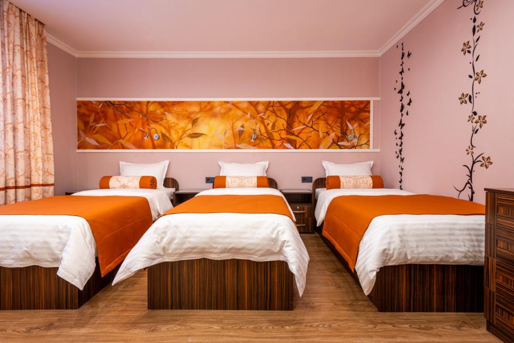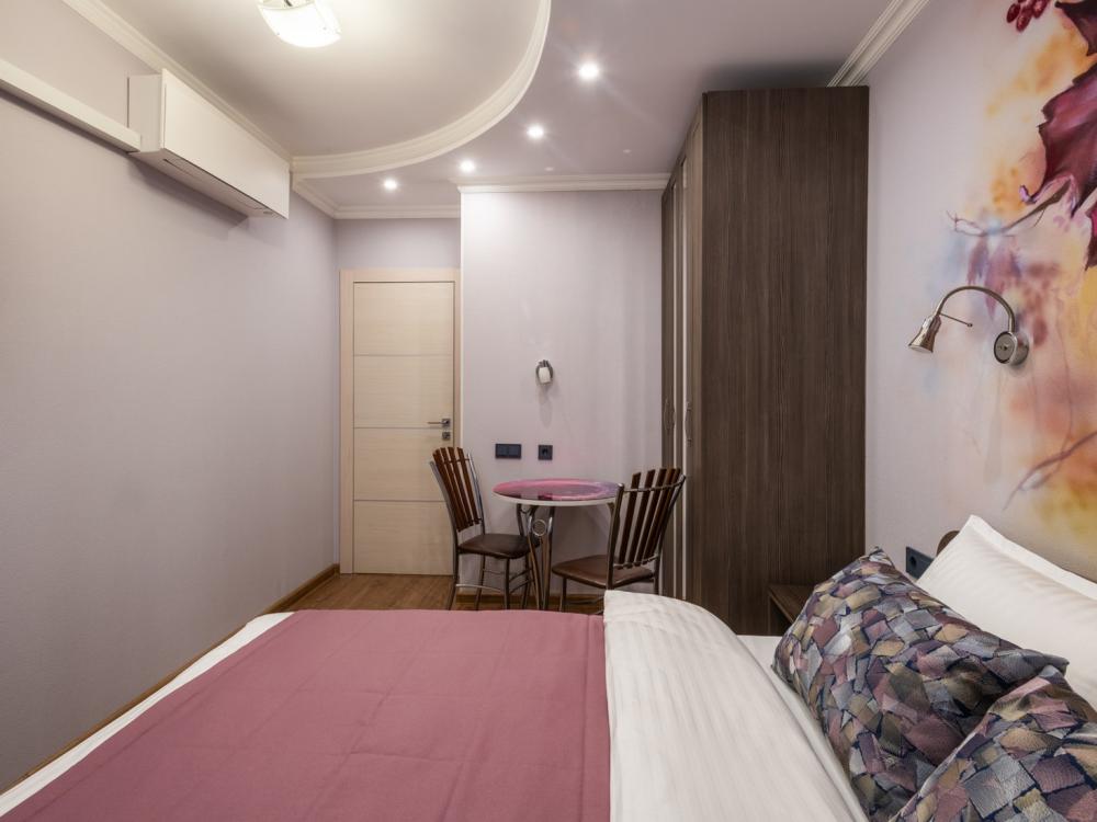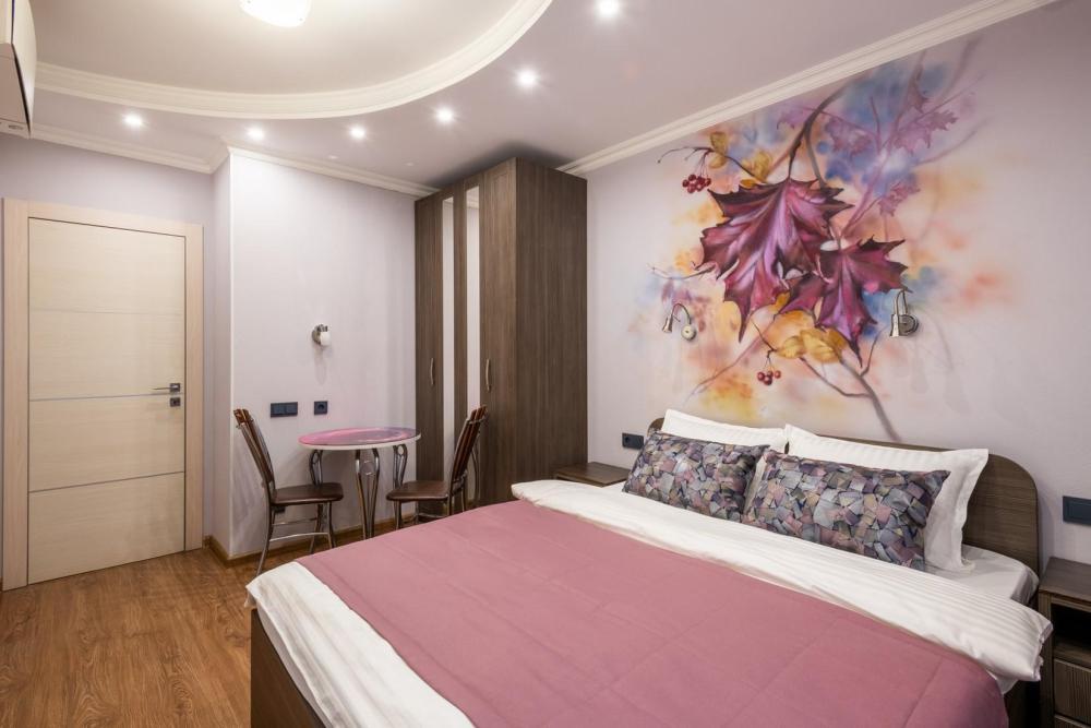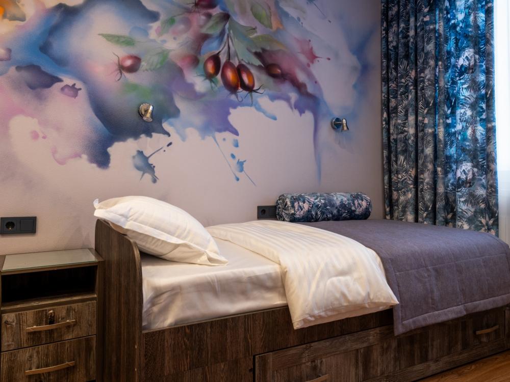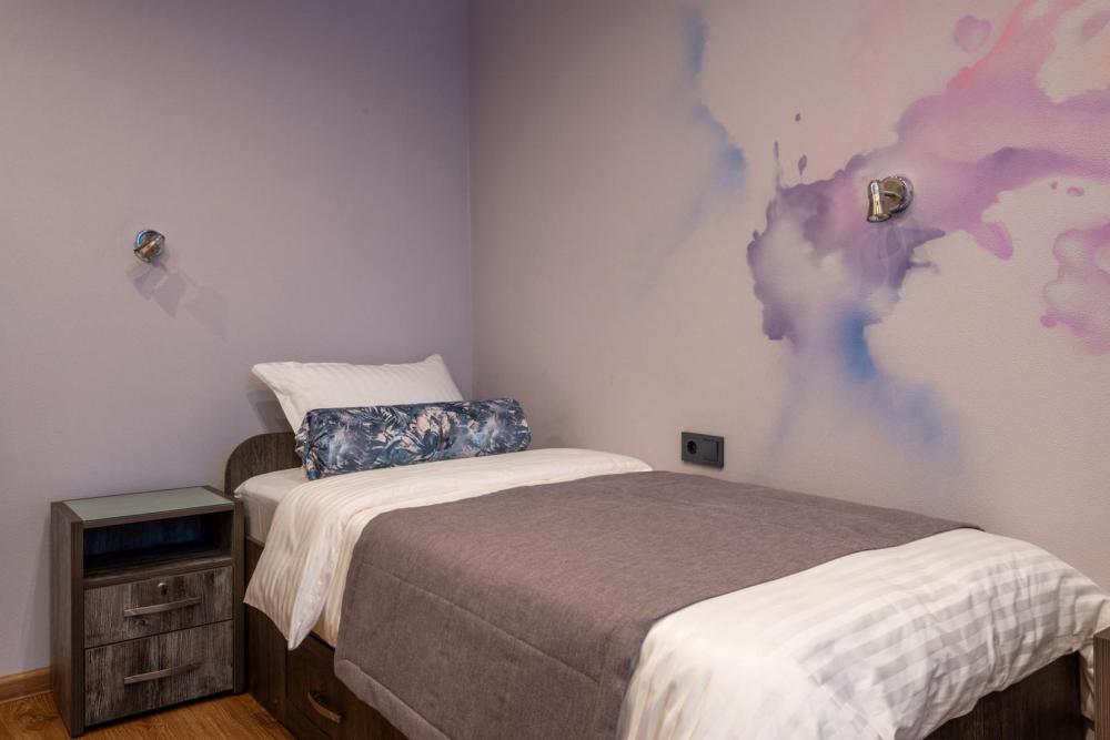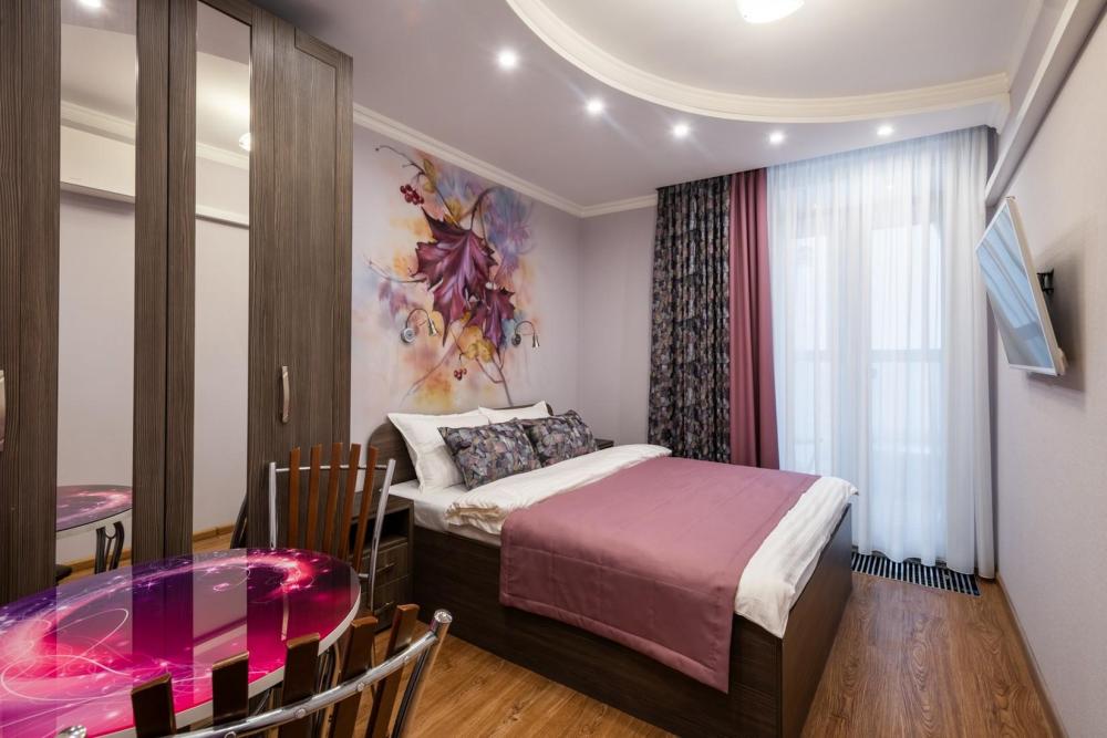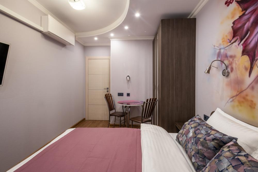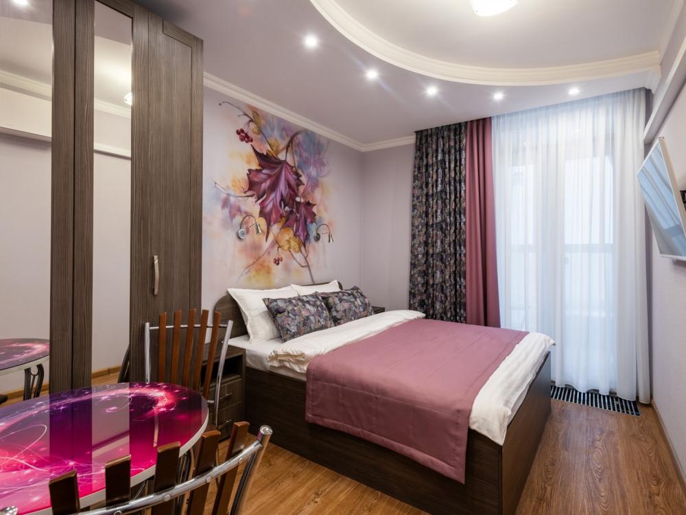 Апартаменты четырёхкомнатные площадью 83 кв.м с видом во двор. Подходит для размещения 10 человек. Имеет 4 спальни с приятным интерьером и гостиную. В номере: 8 односпальных кроватей и 1 двуспальная кровать. Индивидуальная ванная комната и кухня. Имеется телевизор, кондиционер, шкаф, вешалка, рабочий стол, чайник, холодильник, стулья, зеркало, посуда, плита, столовые приборы, стиральная машина, сушилка для белья, утюг, гладильная доска. В стоимость входит: Постельное бельё, полотенца, фен, тапочки, ванные принадлежности (шампунь, гель для душа ,мыло) WI-Fi бесплатно на всей территории. Бесплатная общественная парковка за территорией.
