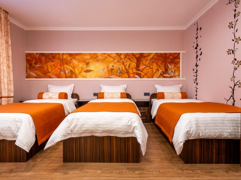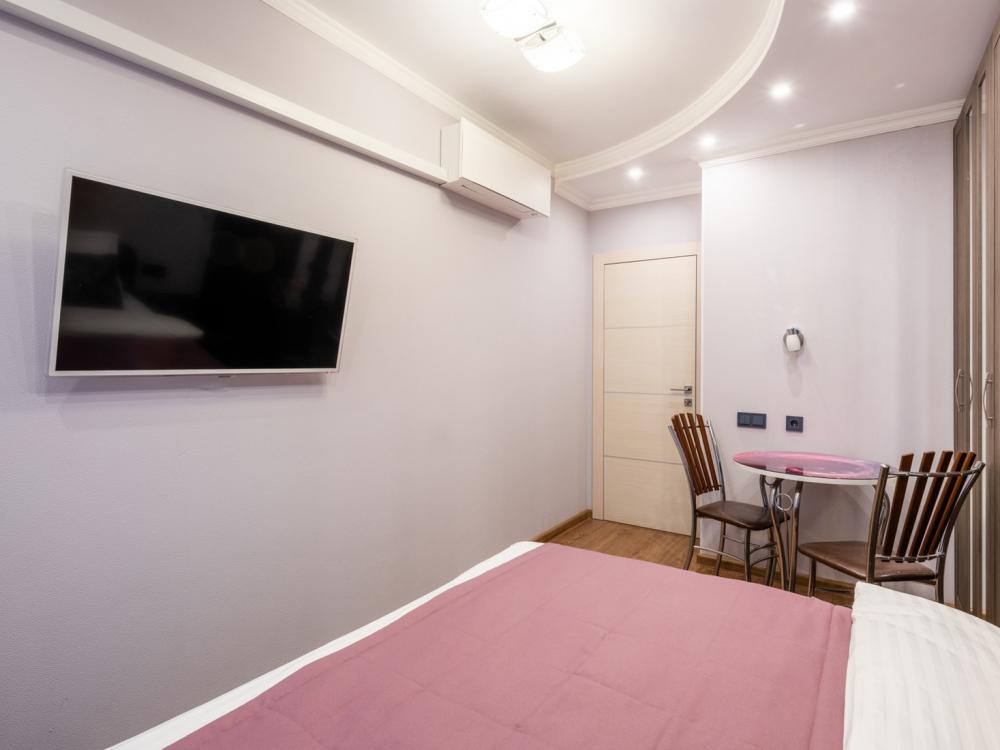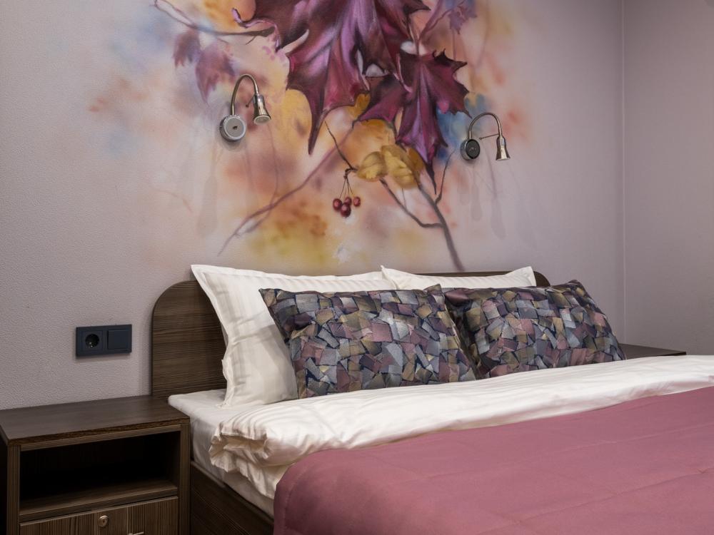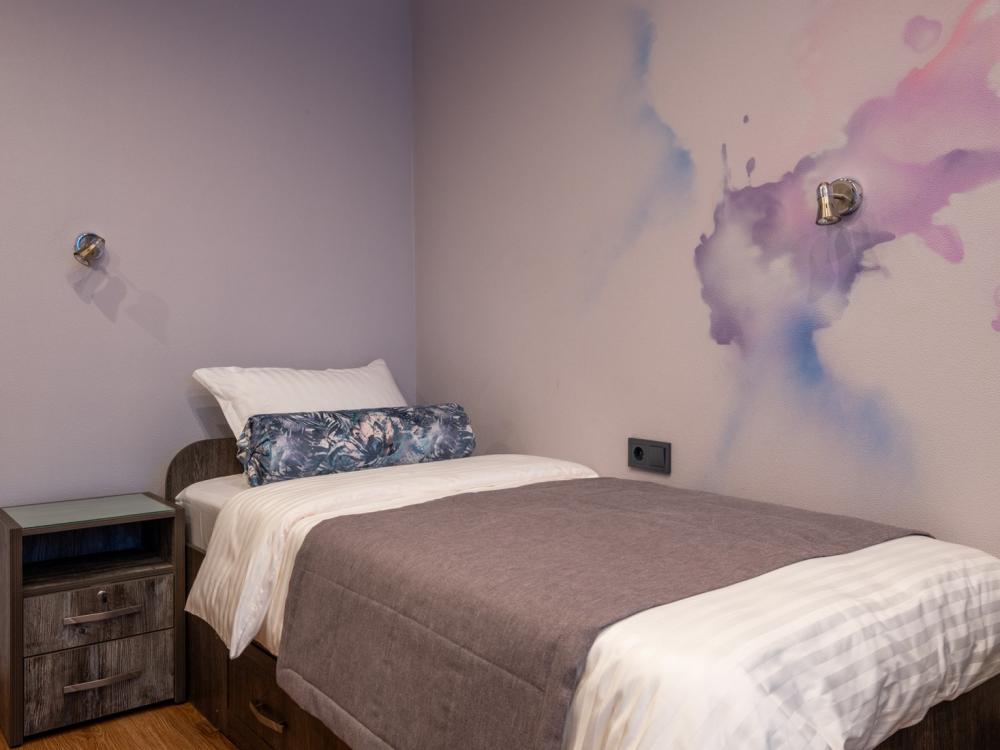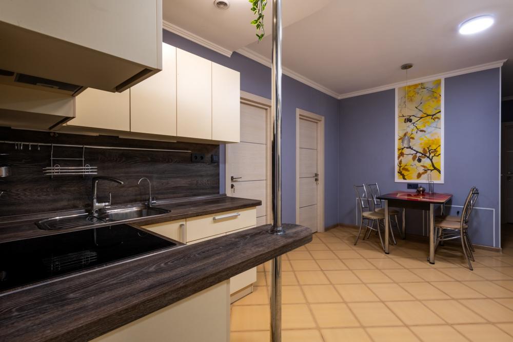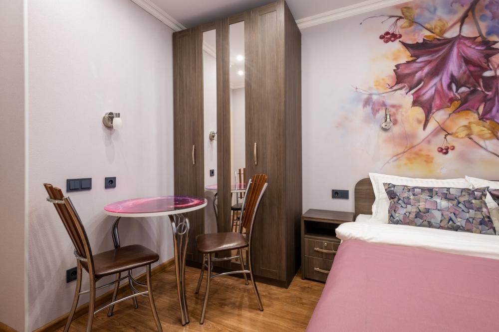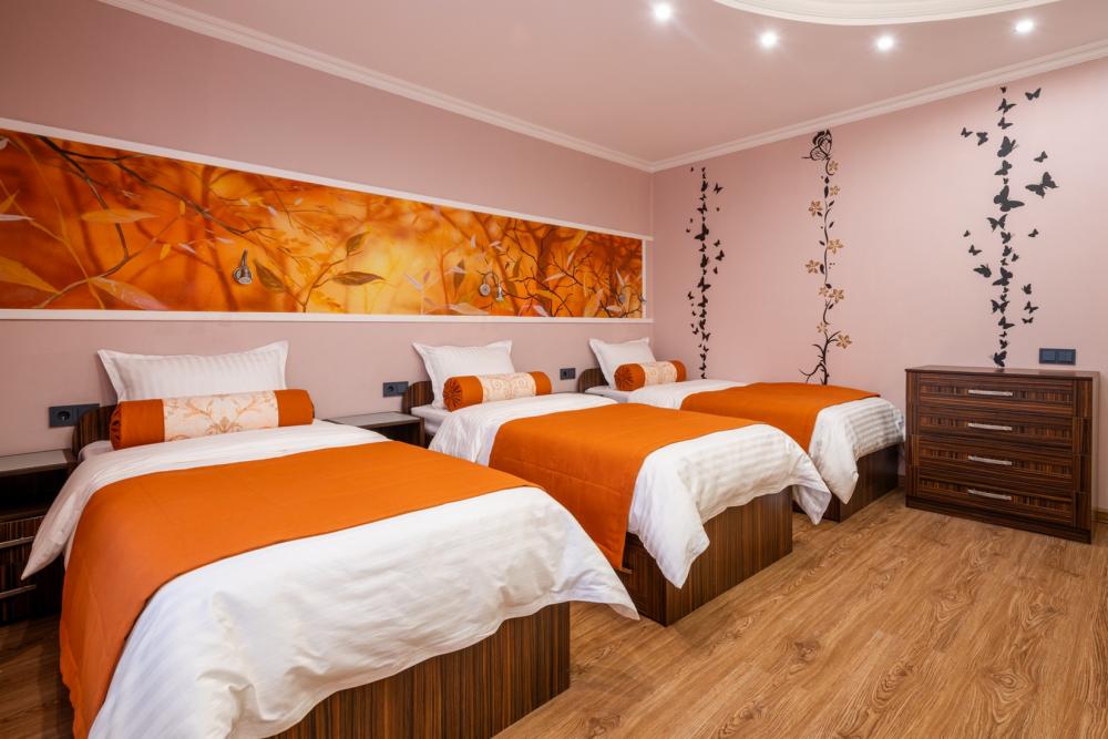 Апартаменты четырёхкомнатные площадью 83 кв.м с видом во двор. Подходит для размещения 10 человек. Имеет 4 спальни с приятным интерьером и гостиную. В номере: 8 односпальных кроватей и 1 двуспальная кровать. Индивидуальная ванная комната и кухня. Имеется телевизор, кондиционер, шкаф, вешалка, рабочий стол, чайник, холодильник, стулья, зеркало, посуда, плита, столовые приборы, стиральная машина, сушилка для белья, утюг, гладильная доска. В стоимость входит: Постельное бельё, полотенца, фен, тапочки, ванные принадлежности (шампунь, гель для душа ,мыло) WI-Fi бесплатно на всей территории. Бесплатная общественная парковка за территорией.