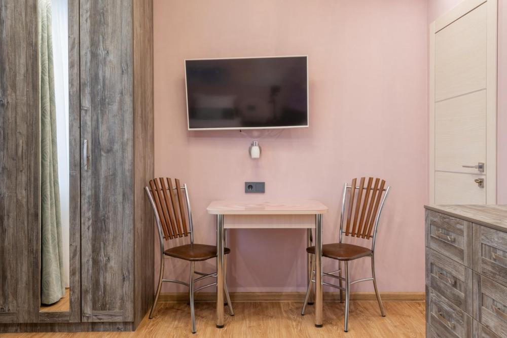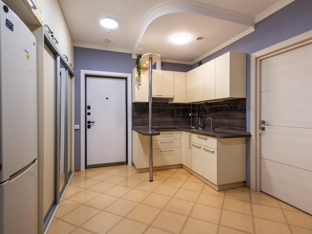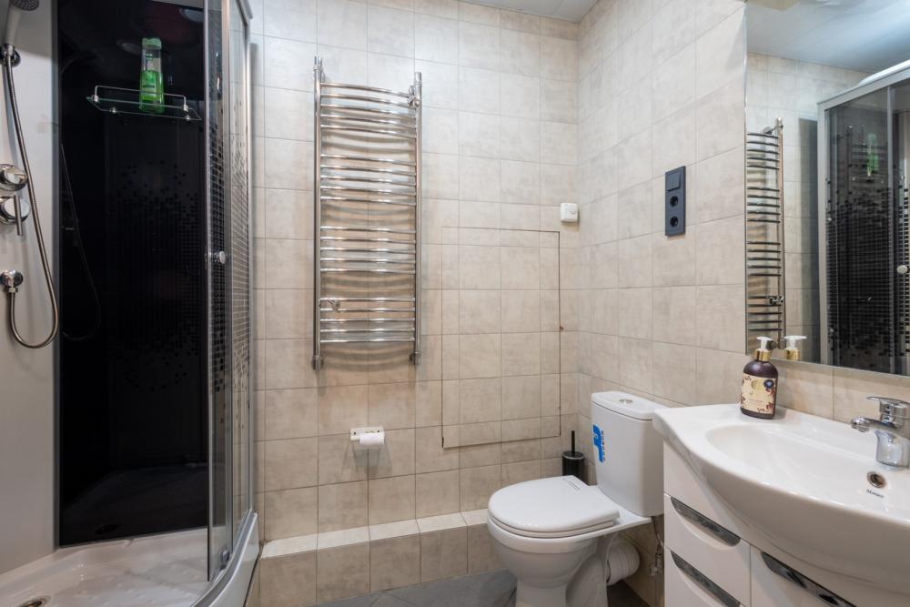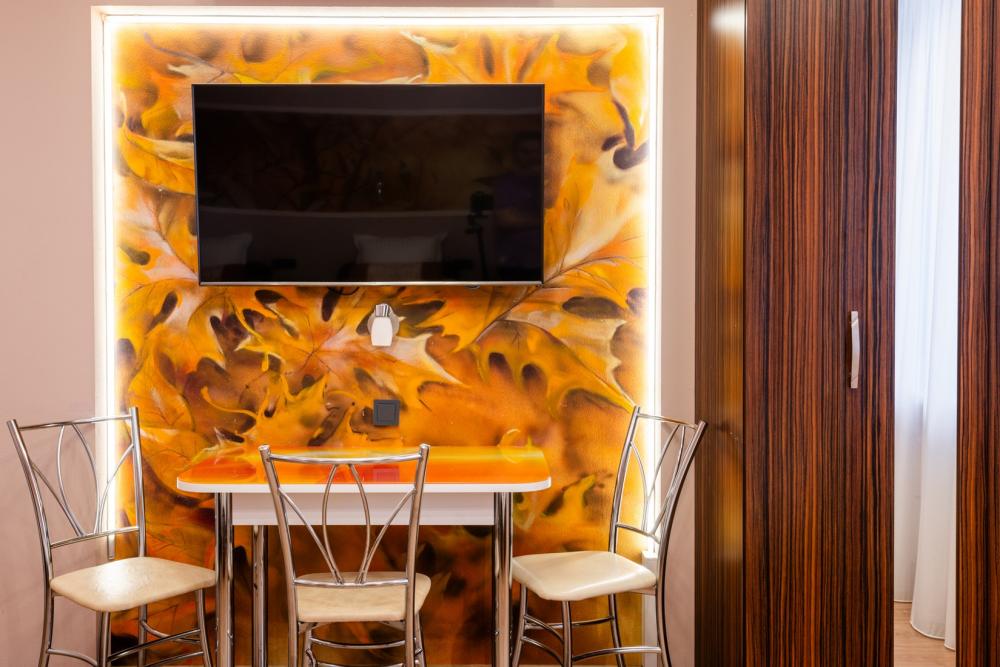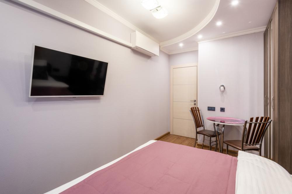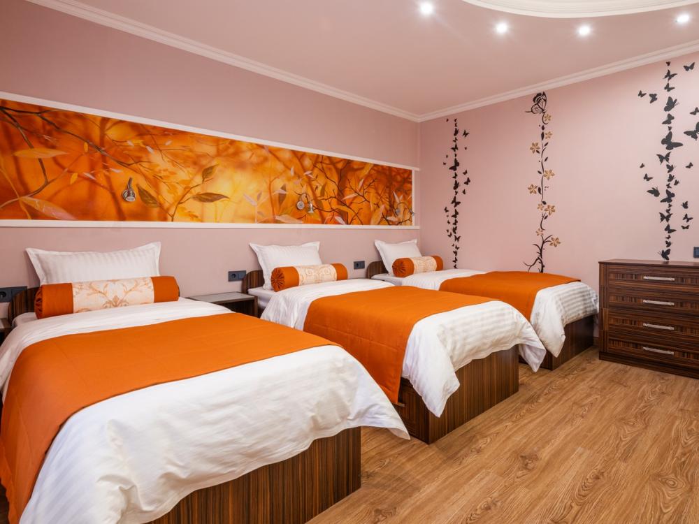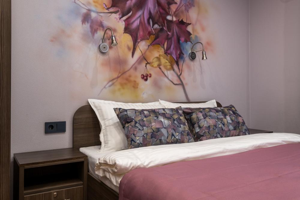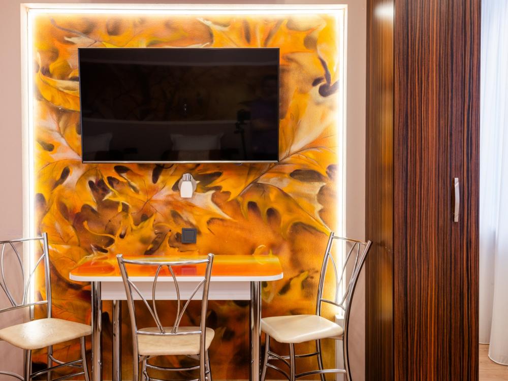 Апартаменты четырёхкомнатные площадью 83 кв.м с видом во двор. Подходит для размещения 10 человек. Имеет 4 спальни с приятным интерьером и гостиную. В номере: 8 односпальных кроватей и 1 двуспальная кровать. Индивидуальная ванная комната и кухня. Имеется телевизор, кондиционер, шкаф, вешалка, рабочий стол, чайник, холодильник, стулья, зеркало, посуда, плита, столовые приборы, стиральная машина, сушилка для белья, утюг, гладильная доска. В стоимость входит: Постельное бельё, полотенца, фен, тапочки, ванные принадлежности (шампунь, гель для душа ,мыло) WI-Fi бесплатно на всей территории. Бесплатная общественная парковка за территорией.