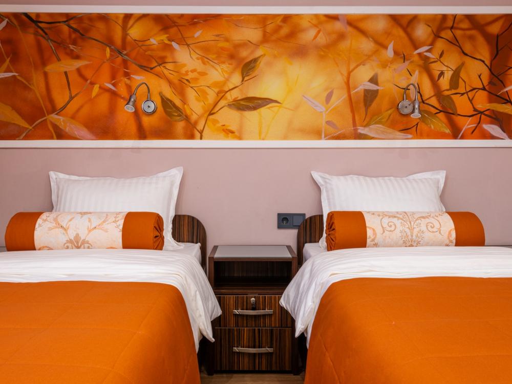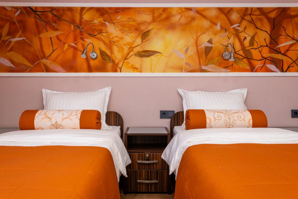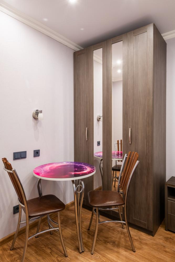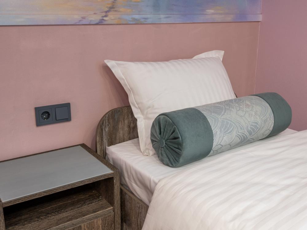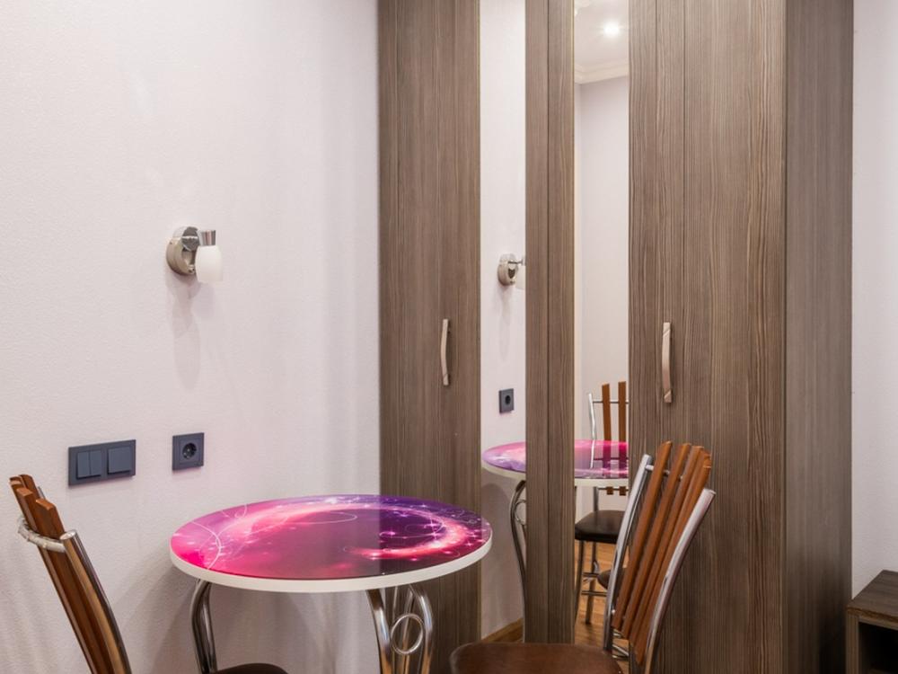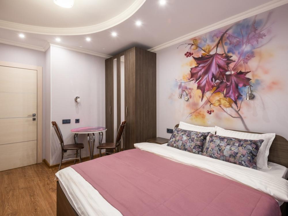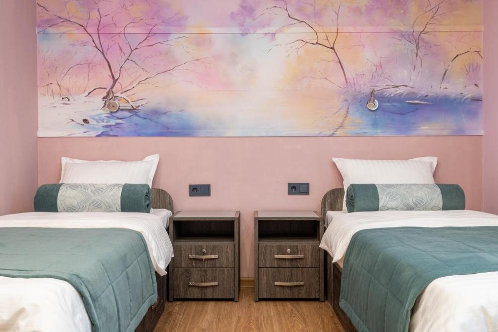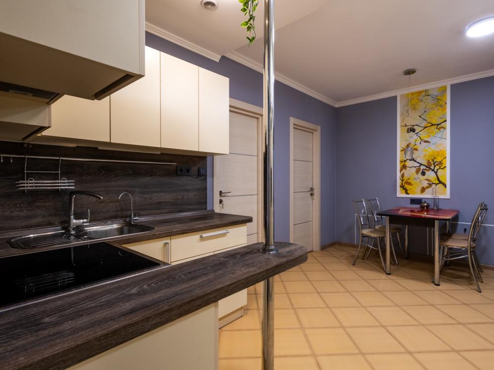 Апартаменты четырёхкомнатные площадью 83 кв.м с видом во двор. Подходит для размещения 10 человек. Имеет 4 спальни с приятным интерьером и гостиную. В номере: 8 односпальных кроватей и 1 двуспальная кровать. Индивидуальная ванная комната и кухня. Имеется телевизор, кондиционер, шкаф, вешалка, рабочий стол, чайник, холодильник, стулья, зеркало, посуда, плита, столовые приборы, стиральная машина, сушилка для белья, утюг, гладильная доска. В стоимость входит: Постельное бельё, полотенца, фен, тапочки, ванные принадлежности (шампунь, гель для душа ,мыло) WI-Fi бесплатно на всей территории. Бесплатная общественная парковка за территорией.