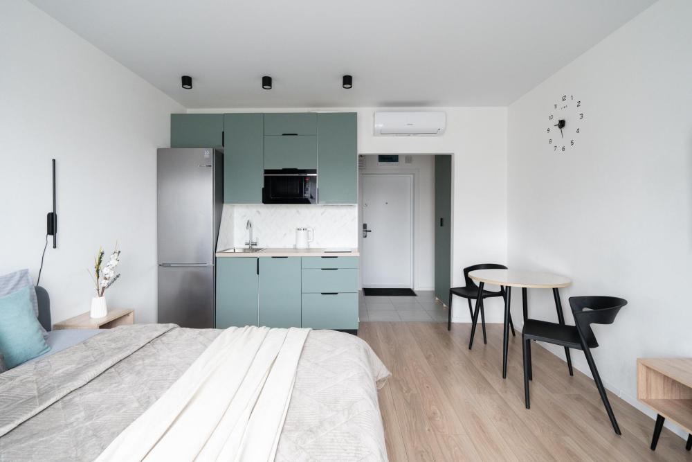 Новая студия в 6 минутах (пешком) от м. Нижегородская. - Большой транспортно - пересадочный узел: метро, МЦК, БКЛ, ЖД станция - На автомобиле 10 мин до ТТК, 15 мин до центра. - В студии имеется двуспальная кровать 140 на 200 - Кондиционер - Парковка на территории комплекса только городская платная, к сожалению (40 руб/час). - Новый ЖК комфорт - класса (дом сдан в 2023г.) находится под видеонаблюдением общественных зон. - Рядом с комплексом находятся "ВкусВилл", "Магнит", "Пятёрочка", "Красное /Белое", аптеки, салон красоты, пункты выдачи интернет-заказов. - В шаговой доступности ТЦ "Город", "Ашан", "Леруа Мерлен". - Недалеко находятся такие известные парки как Перовский, усадьба Кусково и Кузьминки. - Студия полностью укомплектована всем для комфортного проживания. - Телевизор smart TV со всеми необходимыми приложениями и браузером, WiFi, фен, утюг, гладильная доска, сушилка для вещей, стиральная машина. - Гостям предоставляются одноразовые шампуни, гели для душа, зубные наборы, тапочки, мыло. - В кухонной зоне установлена варочная панель, чайник, микроволновка, холодильник, фильтр для воды, а также имеется необходимая для приготовления и приёма пищи посуда. - Размещаем до 2 человек. - Круглосуточное бесконтактное заселение через кодовую ячейку. - Стандартный заезд после 14:00, выезд до 12:00 дня. Ранний заезд и поздний выезд по согласованию за дополнительную плату. - Не размещаем с животными. - Запрещено курение и проведение шумных мероприятий.
