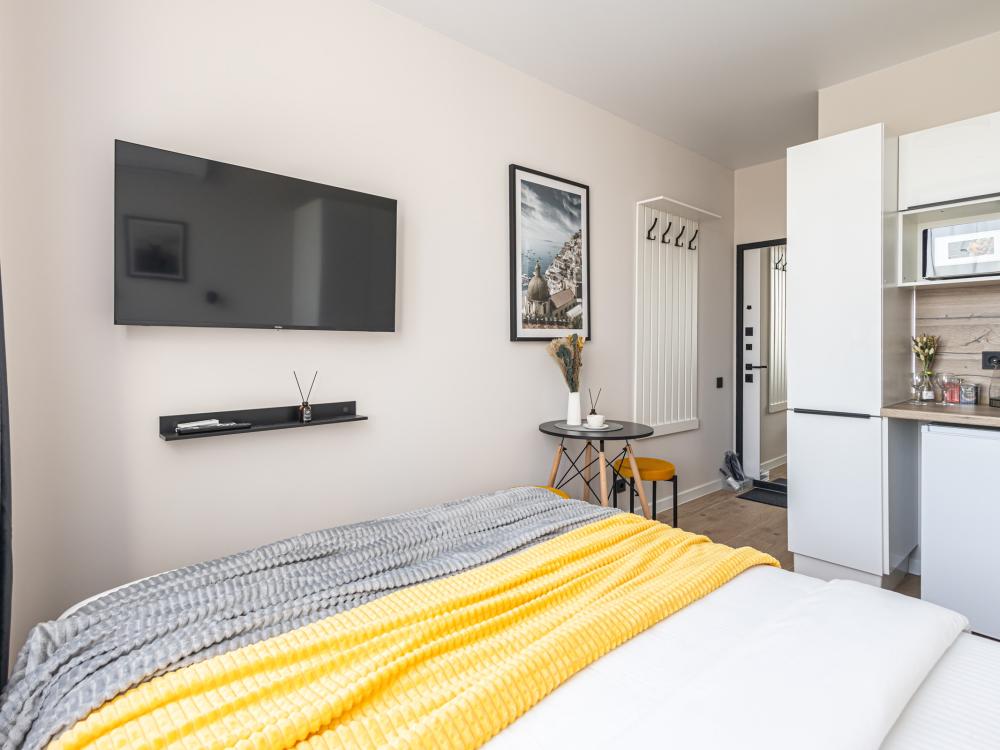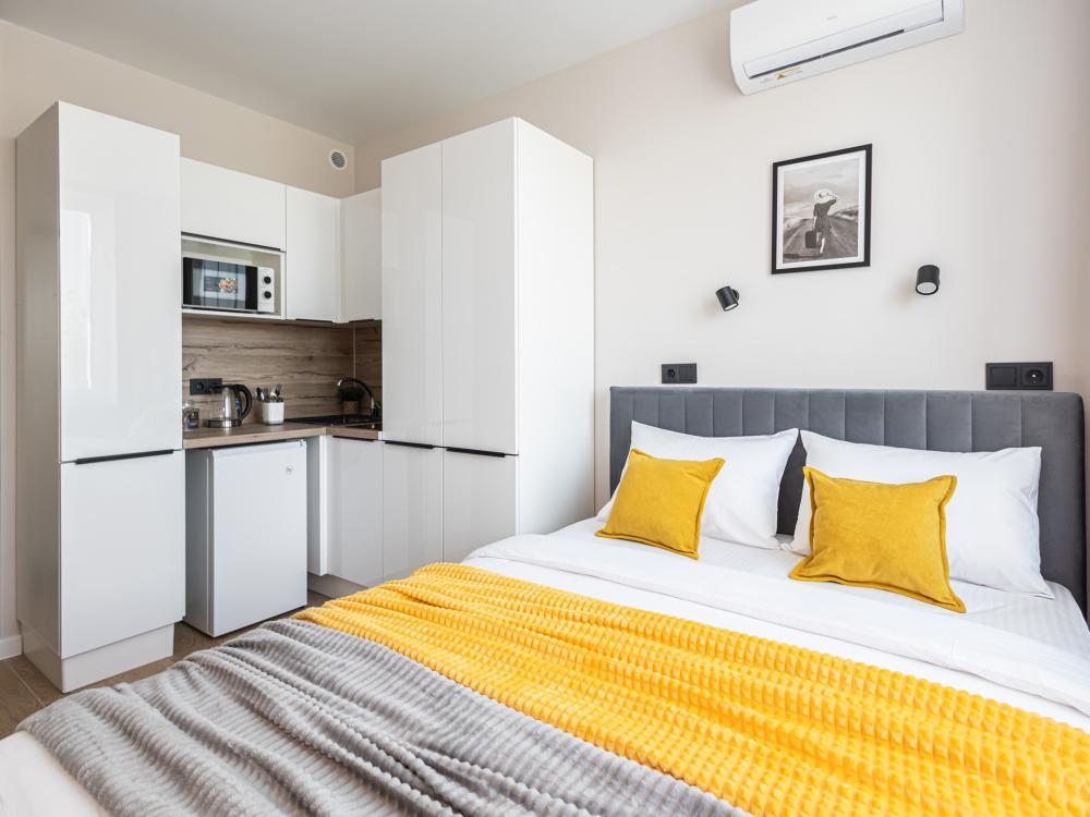 Уютная мини-студия Наши преимущества: ▫️Круглосуточное, бесконтактное заселение ▫️Безопасная оплата бронирования ▫️Чистые, уютные апартаменты ▫️Отчетные документы для командировочных ▫️100% гарантия заезда В вашем распоряжении: ◾️Уютная спальная зона с двуспальной кроватью, чистым постельным бельем, кондиционером, бесплатным Wi-fi и смарт ТВ ◾️Кухня со всей необходимой посудой и техникой, где при желании вы сможете комфортно приготовить еду ◾️ Душевая комната с тропическим душем, предоставляется чистый комплект полотенец, фен, полноразмерный гель для душа, мыло, одноразовые тапочки Условия и правила: — заезд c 15:00; — выезд до 11:00; — при позднем заселении после 23.00 обязательно вносится залог до 21.00; — страховой депозит за сохранность имущества в размере 3000р вносится в день заезда. Возвращается в день выезда до 19:00 при условии, если соблюдены все правила проживания и не нанесен вред имуществу; — доплата за проживание с маленькими животными 1500 руб; — для регистрации заезда необходим документ, удостоверяющий личность — бесплатная отмена брони за 7 дней до заезда, после задаток не возвращается (в праздничные за 14 дней). Запрещено: — курение и шумные вечеринки; — проживание в апартаментах гостей свыше заявленного при бронировании. Инфраструктура: — новый, большой торговый центр «Botanica» (5 минут на машине, 15 пешком) — в 100 метрах от дома парк на берегу Яузы с исторической усадьбой «Свиблово»; — неподалеку Выставочный центр «ВДНХ» с прогулочной зоной, музеем Космонавтики; — на первом этаже дома «Пятерочка», «Диски», 2 аптеки, «Gym Premium», напротив дома тайский спа «Grow Thai SPA». Парковка: — на территории комплекса есть наземная парковка без шлагбаума. Приглашаем вас стать нашим гостем! Мы уверены, что после проживания в наших комфортных апартаментах вы обязательно вернетесь к нам вновь? ?Хотите сдать студию в управление, пишите нам!