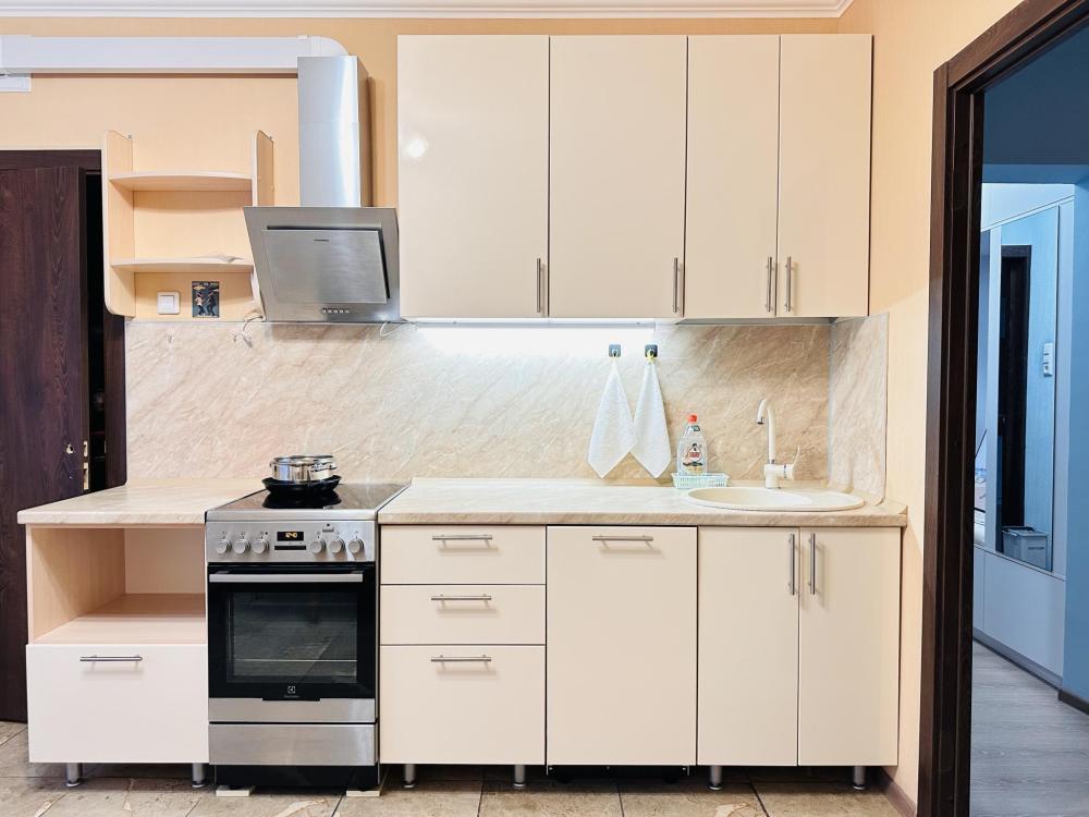 Однокомнатная квартра 44 кв метров. В спальне кровать 160Х200 Совмещенный санузел Кухня с полным оснащением бытовой техникой. В кухне стоит диван 150х200.