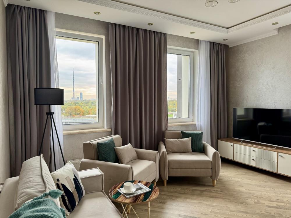 ⭐Бронируйте апартаменты у нас через безопасную бронь и подарите себе комфортный отдых со всеми удобствами! 15 минут от метро Ботанический сад. ?Дорогие гости, оставляйте свой отзыв о нас и получите 10% скидку на следующее бронирование!!! ДЛЯ НАШИХ ГОСТЕЙ: ❕ Отчетные документы; ❕ Бесплатная парковка рядом с домом, для любителей путешествовать за рулем. ⭐ Новый комплекс апартаментов “Легендарный квартал” ⭐ ⭐Панорамные окна с шикарным видом на Останкинскую башню, Главный ботанический сад РАН, павильоны ВДНХ; ?скоростные лифты; ? Супермаркеты прямо в доме; ?️ прогулочная парковая зона с речкой в 5 минутах ходьбы от дома; ❤️ Для вашего удобства и уюта мы очень постарались! ❤️ ✅ Бесконтактное заселение, для регистрации проживания потребуется фото паспорта (включая страницу с регистрацией); ✅ Бесплатный Wi-Fi; ✅ Просторная кровать шириной 160 см с ортопедическим матрасом, удобный и современный диван. Для каждого гостя предусмотрено качественное постельное белье (хлопок, страйп-сатин), подушка и отдельное одеяло, комплект полотенец и средства гигиены; ✅ Необходимая посуда и кухонные принадлежности, духовка, микроволновка, посудомоечная машина, электрочайник, холодильник, турка; ✅ Комнаты оснащены современными телевизорами с функцией смарт-тв; ✅ В каждой комнате установлен кондиционер ; ✅Фен, утюг, гладильная доска, стиральная машина и раскладная сушилка для белья; ✅Средства гигиены (гель для душа, шампунь, зубные щетки, мыло для рук) УДОБНОЕ РАСПОЛОЖЕНИЕ: * метро Ботанический сад — всего 15 минут пешком; * парк Свибловские пруды – всего 5 минут пешком; * сад Вдохновения и созидания – всего 12 минут пешком; * выставочный центр народного хозяйства (ВДНХ) – всего 20 минут пешком; * Учебно-спортивный комплекс Искра. Здесь можно заняться настольным и большим теннисом, пляжный волейболом, футболом, бадминтоном и посетить тренажерный зал) – всего 20 минут пешком; * Храм Успения Богородицы – всего 5 минут пешком. ПОЧЕМУ ИМЕННО МЫ? ✅ Уютная квартира для компании из 7 человек; ✅ Чистота и порядок — наша визитная карточка; ✅ Апартаменты полностью соответствуют изображению на фотографиях; ✅ В квартире есть всё необходимое для комфортного отдыха. ➡️ ПРАВИЛА ЗАСЕЛЕНИЯ: ? Заезд после 14.00 ? Выезд до 11.00 (по договоренности с администратором можно изменить время заезда и выезда) ? Залог при заселении 5000 рублей (залог может быть увеличен после получения всей информации о количестве, составе и возрасте гостей) ?СТОИМОСТЬ: Цена может меняться в зависимости от количества человек, дней проживания, сезонности, дней недели, праздников - актуальную цену на ваш период бронирования уточняйте пожалуйста по телефону. ⛔️ ПРАВИЛА ПРОЖИВАНИЯ: ❌ Проведение шумных праздников и вечеринок запрещено. ❌ Квартира не сдается лицам, не достигшим 18-летнего возраста. ❌ Курение в помещении строго запрещено. ❌ Проживание с животными запрещено. Мы рады ответить на ваши звонки и сообщения с 8:00 до 22:00. Если у вас возникли вопросы, не стесняйтесь звонить или писать нам. Для вашего удобства мы также предлагаем онлайн-бронирование. С нетерпением ждем вас!