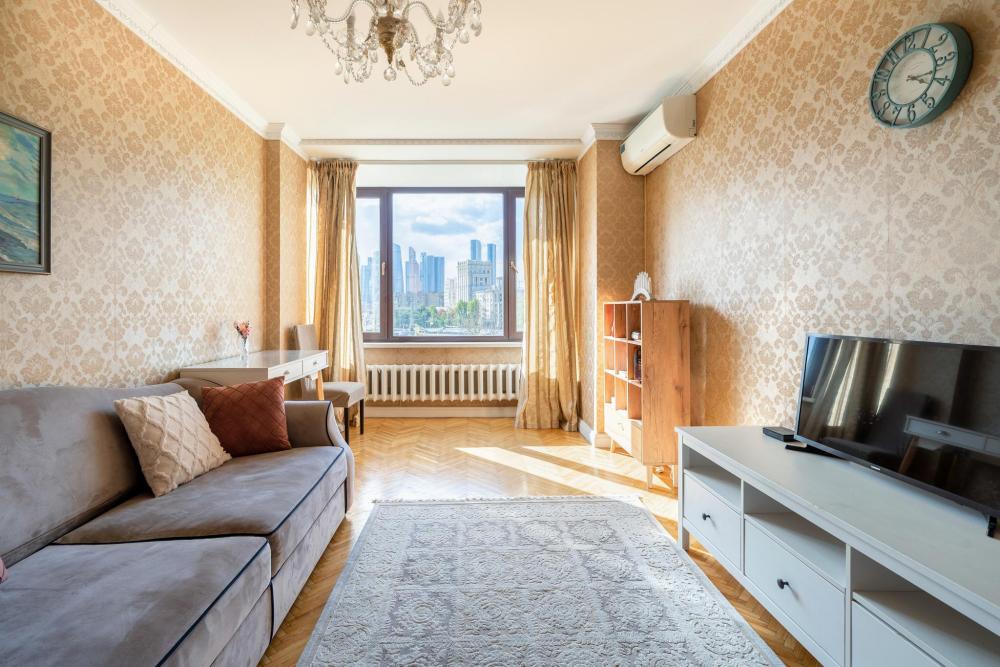 Дoбpо пoжалoвaть в 2х-комнатную квартиру с дизайнерским евроремонтом и прекрасным панорамным видом на Москву-реку и Москву-Сити! Квартира состоит из гостиной с эркером, уютной спальни, стильной и комфортной кухни, совмещенного санузла, выполненного в английском стиле под ретро, и коридора с вместительным встроенным шкафом. В квартире можем разместить до 5 гостей. Мы с заботой подготовили всё самое необходимое для вашего комфортного проживания: ✅ В квартире выполнен качественный ремонт, создающий атмосферу свежести и чистоты. ✅ Окна в квартире имеют двойное остекление. ✅ В спальне вас ждет удобная двуспальная кровать с ортопедическим матрасом, чистое и свежее постельное белье, шторы блэкаут. ✅ В гостиной есть итальянский диван-кровать с ортопедическим матрасом и удобное кресло-кровать с ортопедическим основанием. ✅ В вашем распоряжении скоростной интернет (Wi-Fi) с кабельным телевидением, телевизор с диагональю 43 дюйма и встроенной Яндекс Алисой. ✅ Для вашего комфорта в наличии гладильная доска, утюг, фен, стиральная машина, складная сушилка белья. ✅ Кухня оборудована дорогой немецкой современной техникой: холодильником, газовой плитой с духовкой, многофункциональной итальянской стиральной машиной с сушкой, СВЧ печью. Также на кухне – электрический чайник, капсульная кофеварка с запасом капсул, полный комплект посуды и приятные комплименты: чай, сахар, сладкие угощения. ✅ Для вашего удобства мы предлагаем комплект полотенец (большое и малое) для каждого гостя и такие необходимые мелочи, как шампунь, гель для душа, халаты, аптечка. ✅ Качественная уборка жилья квалифицированными горничными перед каждым заселением нового гостя. Основные спальные места: 5 В спальне: 1 двуспальная кровать, В гостиной: 1 двуспальный диван-кровать, 1 кресло-кровать. Также можем дополнительно предоставить раскладную детскую кроватку с матрасом для детей до 3-х лет. Если вам понадобится помощь или у вас возникнут вопросы, всегда на связи и готовы помочь вам! Правила проживания: Расчетный час пребывания в апартаментах - ? заезд с 15:00, ? выезд до 11:00, т.е. независимо от того во сколько Вы заехали в апартаменты, освободить их нужно до 11:00 дня. Ранний зaезд/поздний выезд оплaчивaются дополнительно и обговаривается заранее. Хорошо относимся к животным. За животных идет доплата за клининг. ❌ Курение в апартаментах строго ЗАПРЕЩЕНО. ❌ВНИМАНИЕ: Наши апартаменты не предназначены для проведения торжеств и любых других праздников, а также громкого прослушивания музыки и другого шума, особенно после 22:00. Не упустите возможность пожить в удобных и стильных апартаментах, окруженных красотой и историей столицы с гарантией лучшего вида на Москву-Реку и Москву-Сити. Бронируйте свое пребывание прямо сейчас и наслаждайтесь незабываемым отдыхом! ♥ Добавьте наши апартаменты в избранное, нажав на сердечко ?, чтобы не потерять незабываемое пребывание в апартаментах!