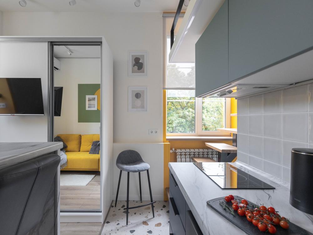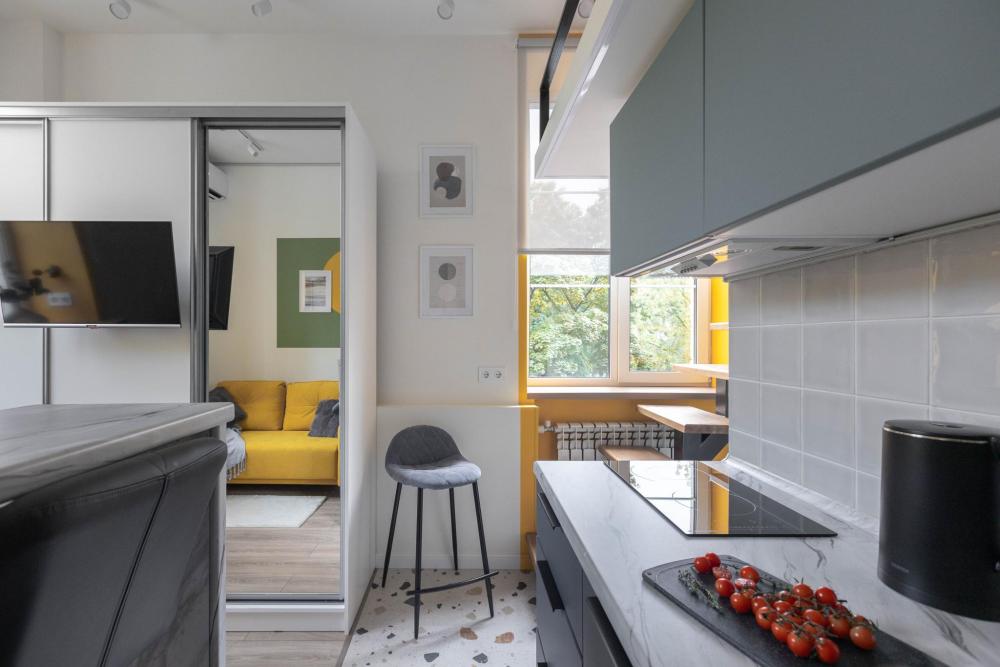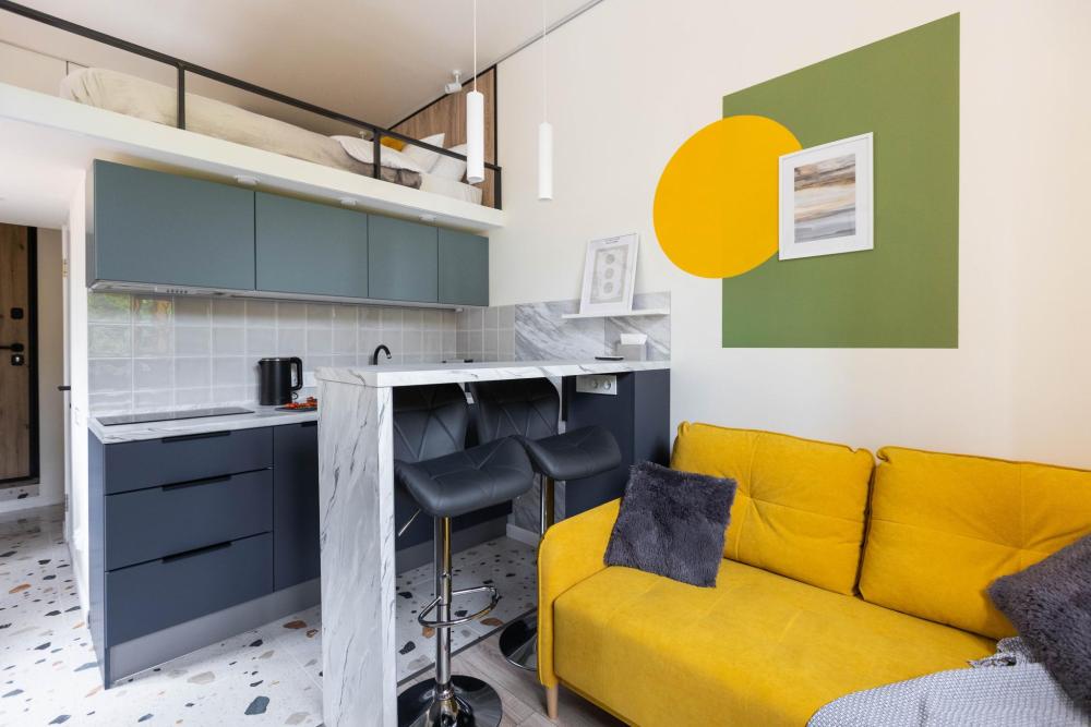 Уютные апартаменты студия, этаж 2 из 5. В студии: современная мебель, двуспальная кровать с белоснежным постельным бельем и ортопедическим матрасом, раскладываемый диван, гладильная доска, сушилка, банные полотенца, набор косметической продукции, тапочки, фен, оборудованная кухня, полный комплект посуды для приготовления и приёма еды, скоростной WI-FI.