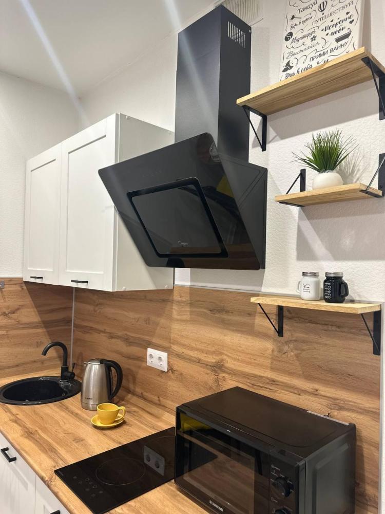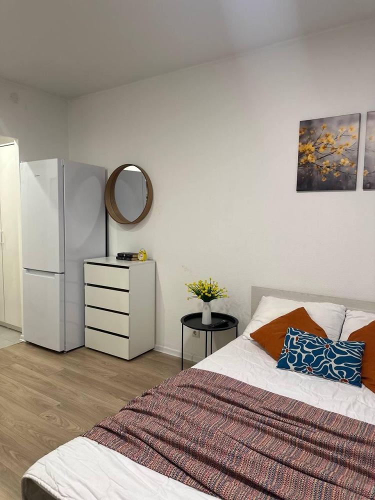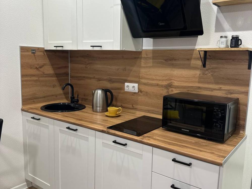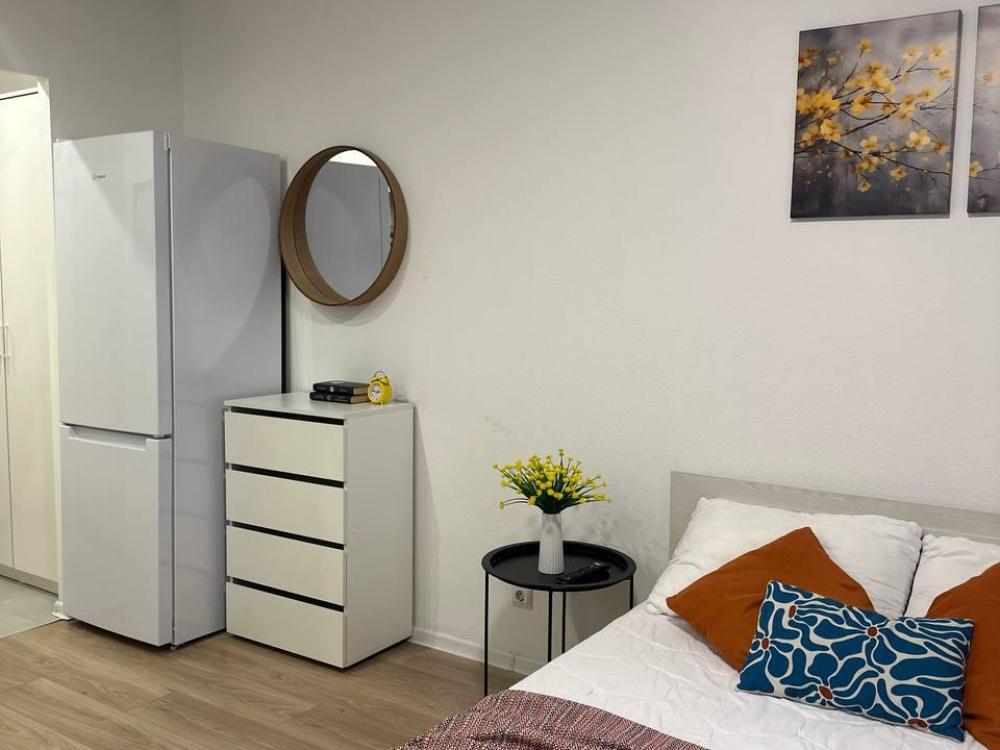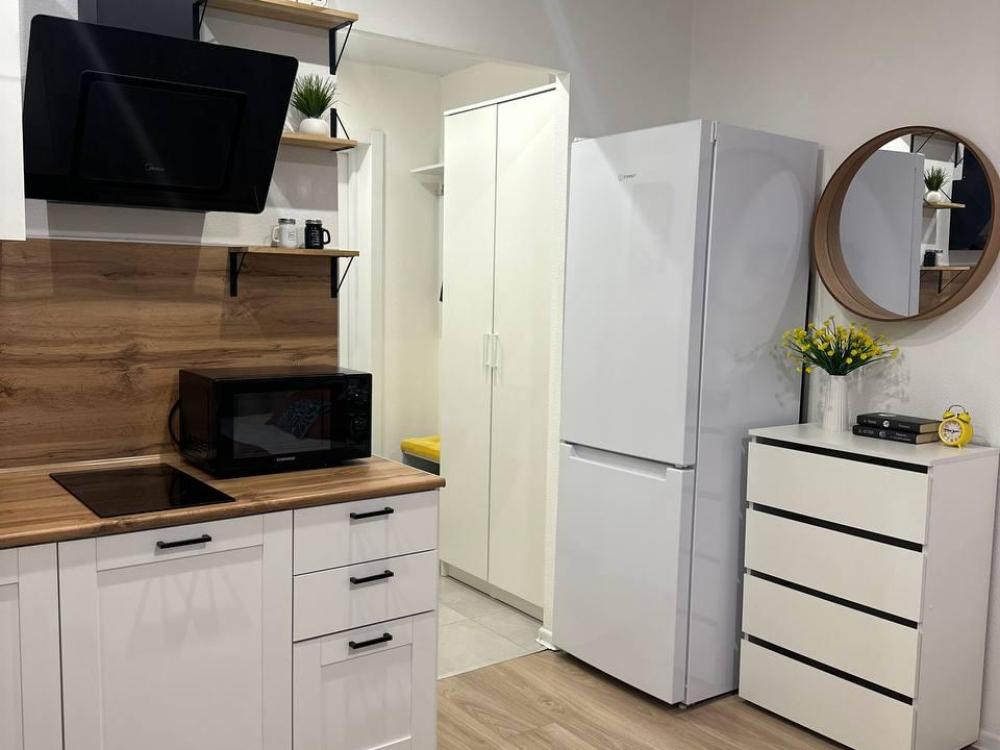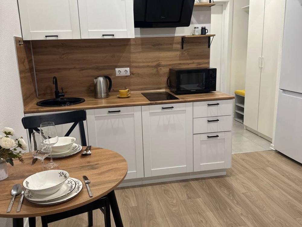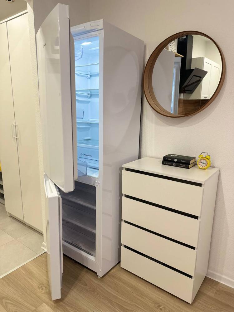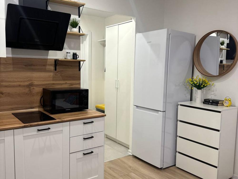 В апартаментах имеется все необходимое для комфортного проживания: двуспальная кровать 140х200, современная бытовая техника, холодильник, микроволновка, варочная панель, стиральная машинка, утюг, фен, СМАPТ TB, высокоскоростной Wi-Fi.