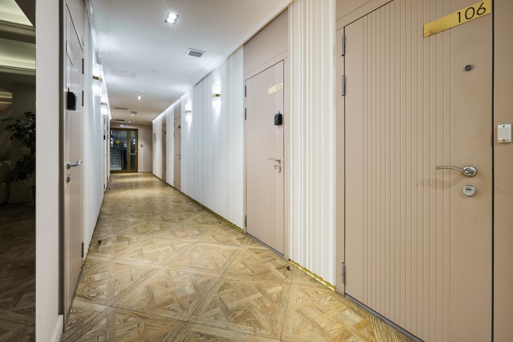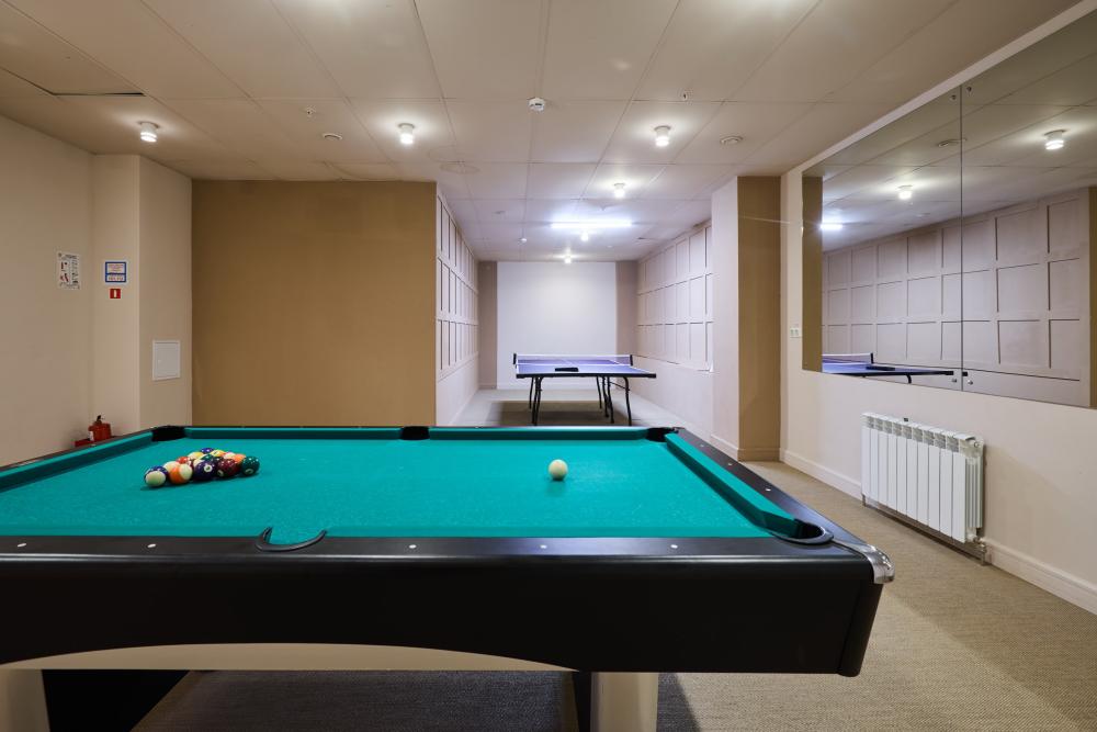 1. Комната: двуспальная кровать (160х200), раскладной диван (140х200), шкаф-купе, ТВ, кондиционер. Чистое постельное бельё предоставляется. 2. Кухня: кухонный гарнитур, обеденный стол, табуреты. Из техники холодильник, электроплита, микроволновка и вытяжка. Полный набор посуды и кухонных принадлежностей. 3. Санузел: стиральная машина, сушилка, утюг, гладильные принадлежности. Фен и банные принадлежности. 4. Также в доме есть бильярдная и фитнес-зал. В квартирах есть дополнительные услуги, такие как: Wi-fi интернет, проживание с животными (возможно по дополнительному запросу), документация для бухгалтерии, трансфер, уборка в квартире (по требованию клиента). Некоторые доп. услуги могут предоставляться за дополнительную плату.