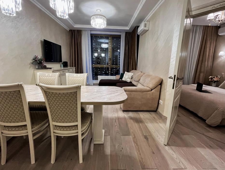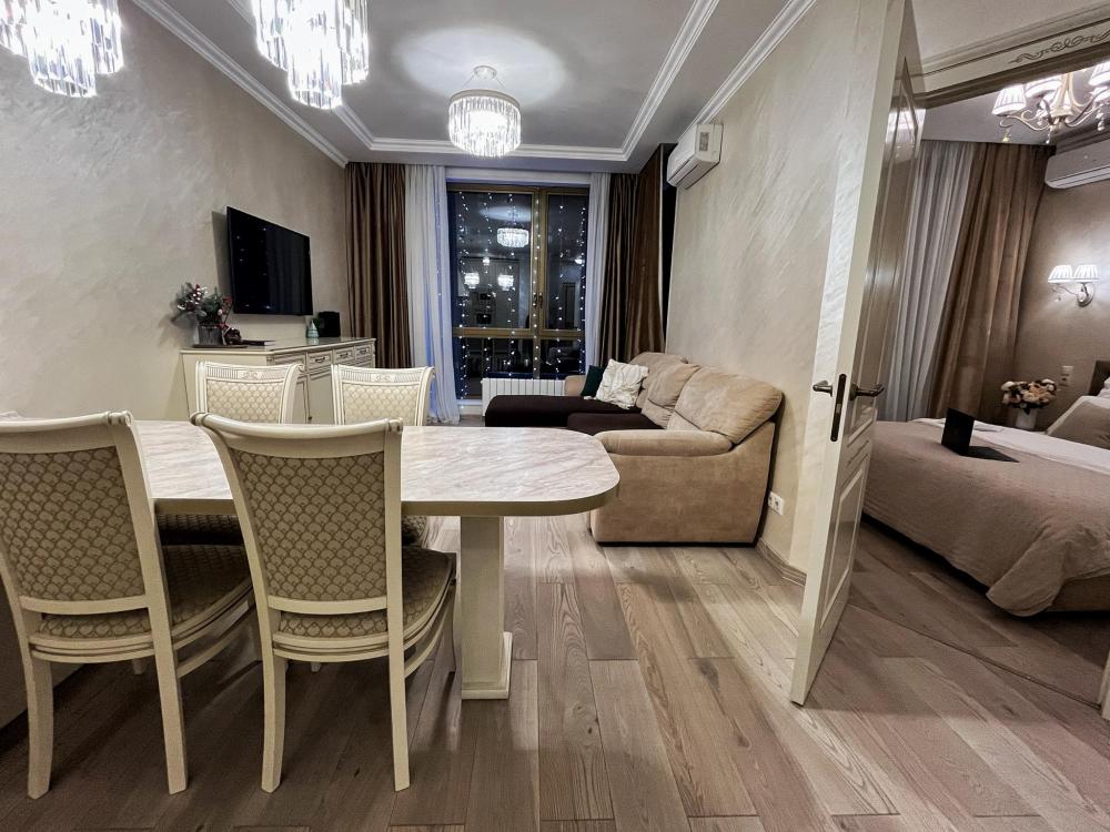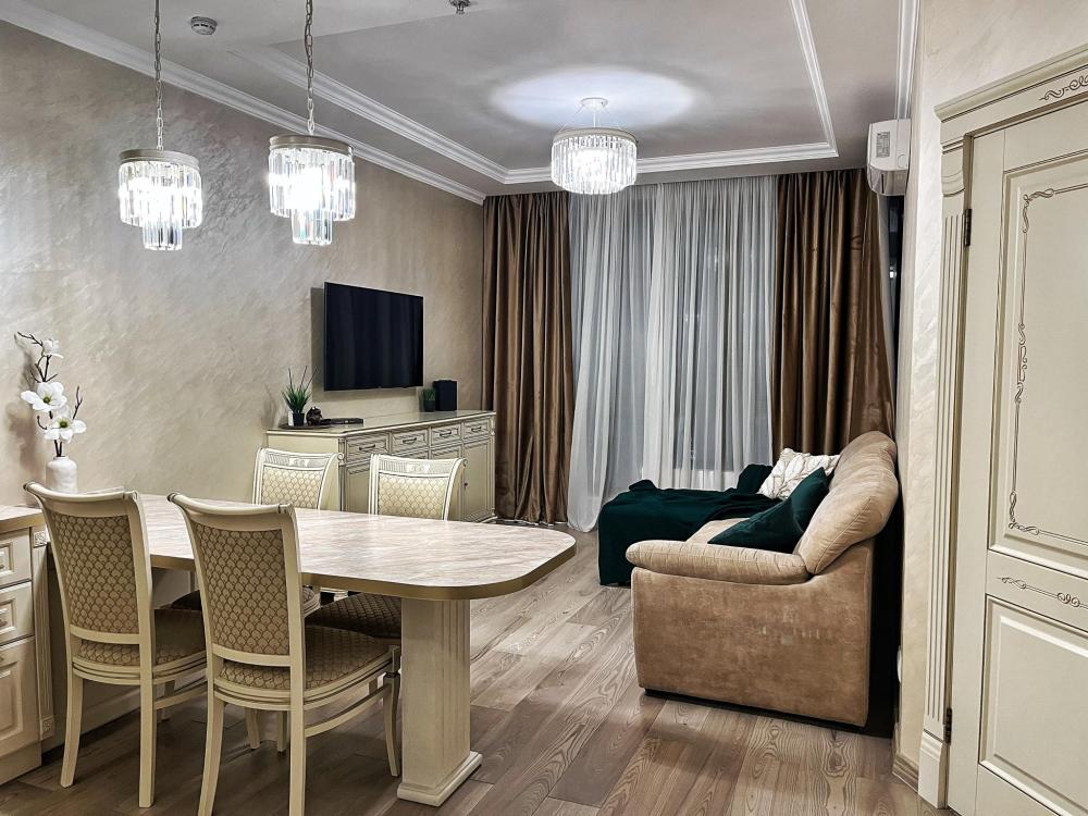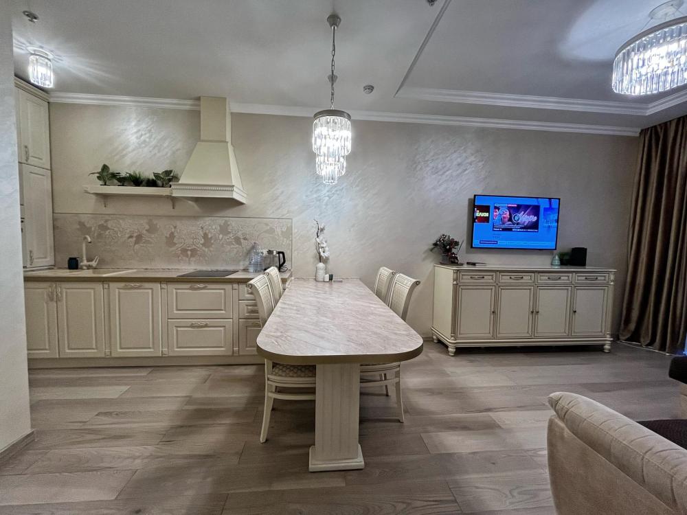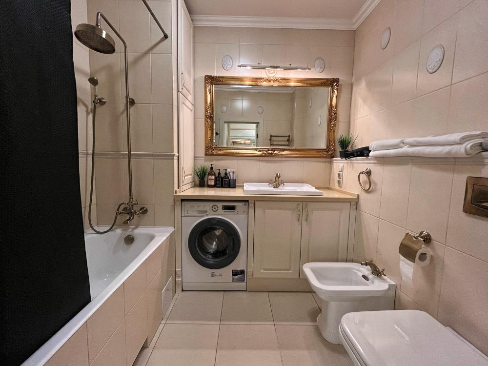 В квартире есть все необходимое для комфортного проживания: ?Большая кровать с ортопедическим матрасом; ?Раскладывающийся большой и очень удобный диван; ?Постельное бельё из натуральных тканей,мягкие подушки и воздушные одеяла ?Функциональная кухня с необходимой посудой для приготовления ваших блюд; ?Просторная ванная комната с белоснежной акриловой ванной; ?Гигиенические принадлежности:мыло, шампунь,гель для душа, мягкие полотенца,однораразовые зубная щетка и паста для каждого гостя; ?Необходимая бытовая техника:фен,утюг,стиральная машина,посудомоечная машина,телевизор,чайник,микроволновка,гладильная доска,сушилка,холодильник,электрическая плита,духовой шкаф,2 кондиционера; ?Wi-Fi ,большой телевизор со SMART TV и онлайн кинотеатрами; ?Мультимедийная колонка с голосовым управлением Алиса?Активная подписка Кинопоиск .