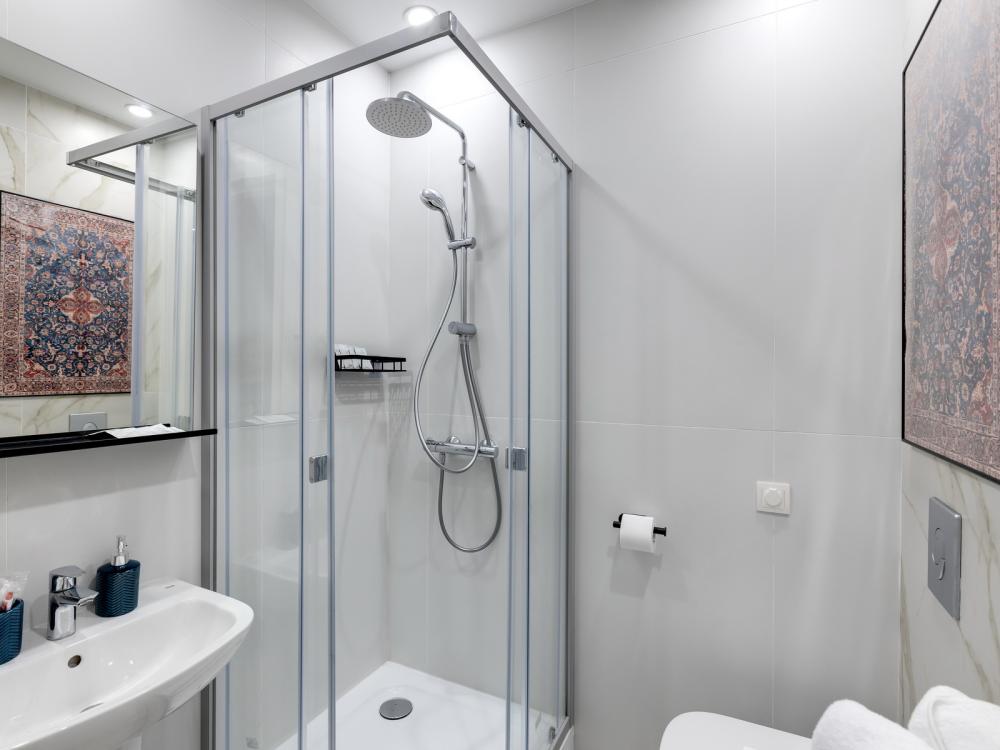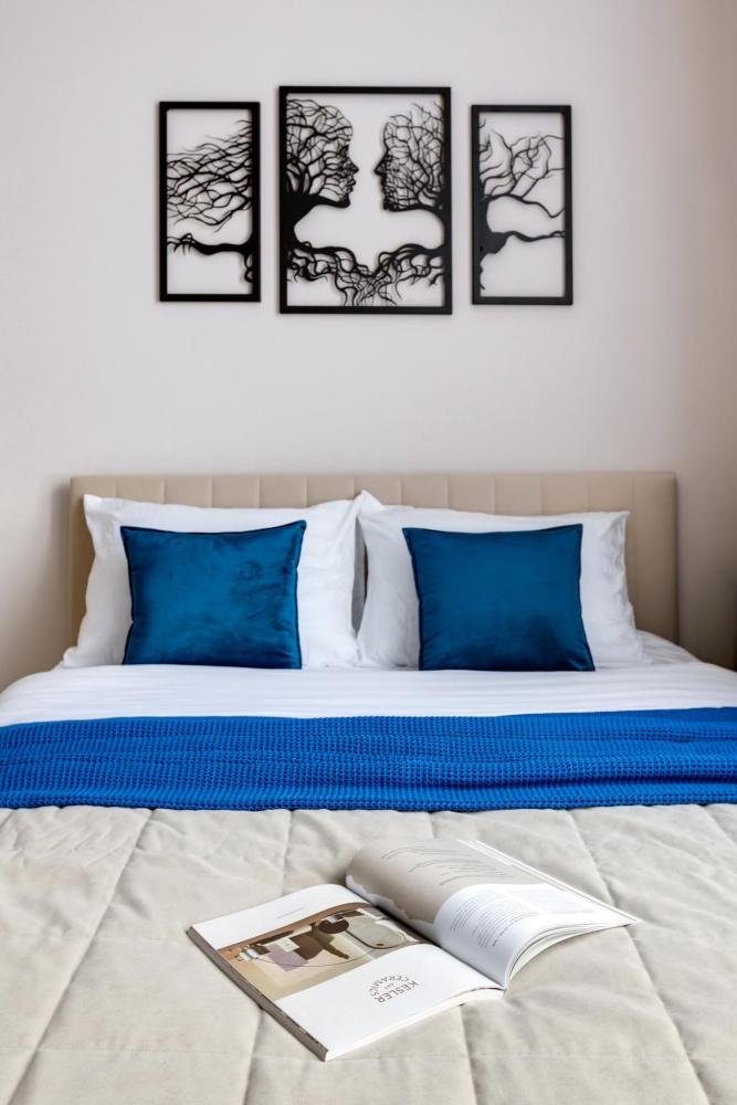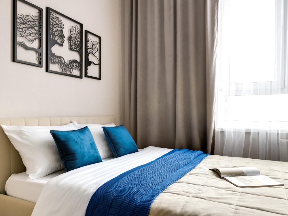 В квартире есть: шкаф, двуспальная кровать , односпальная кровать ,полотенца, постельные принадлежности, стиральная машина, сушка для одежды, утюг, гладильная доска ,телевизор, фен, чайник, столовые приборы, посуда, кастрюля, сковорода, чай, кофе , вода, сахар, сахоразаменитель, гель для душа, шампунь, мыло, комплект белоснежных полотенец и постельного белья.
