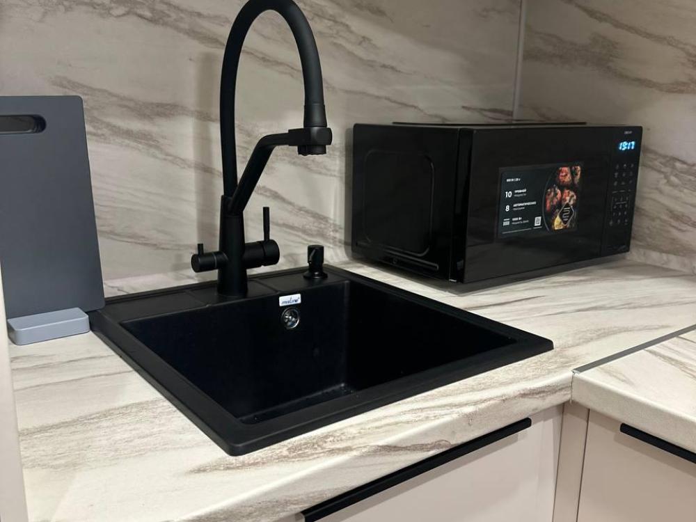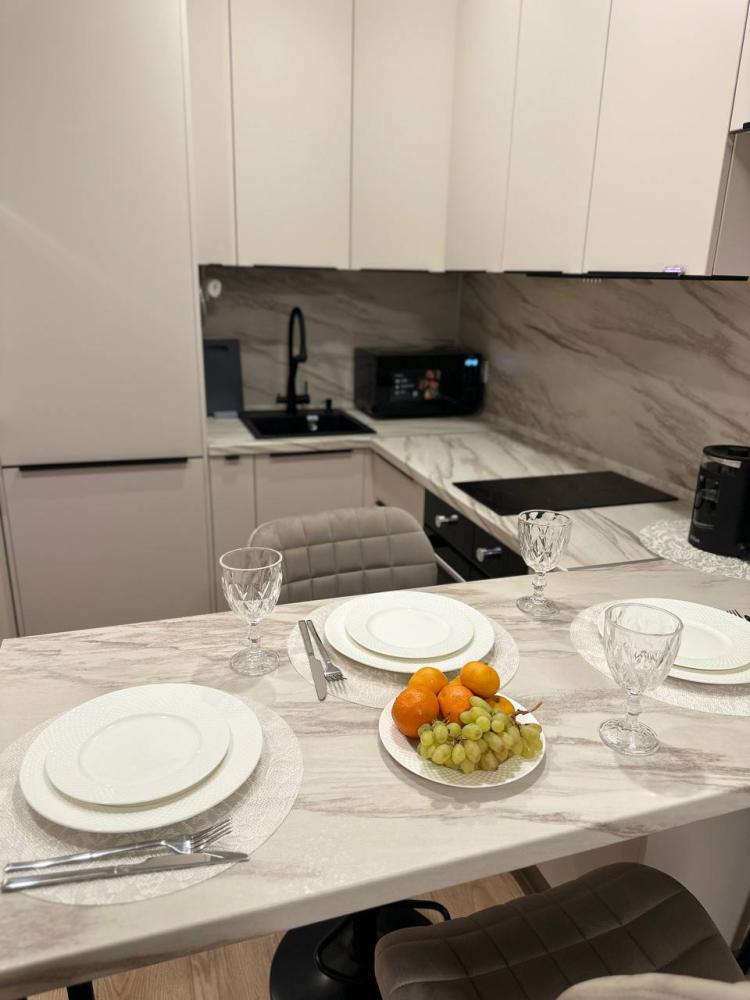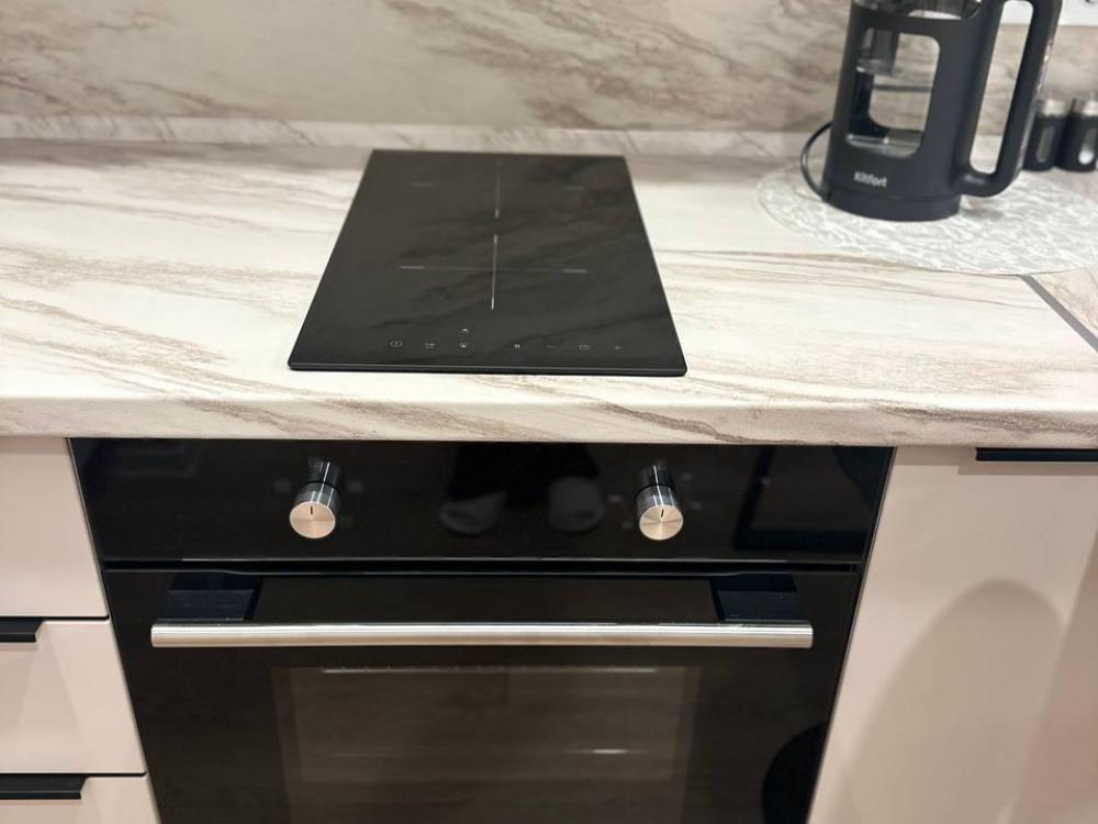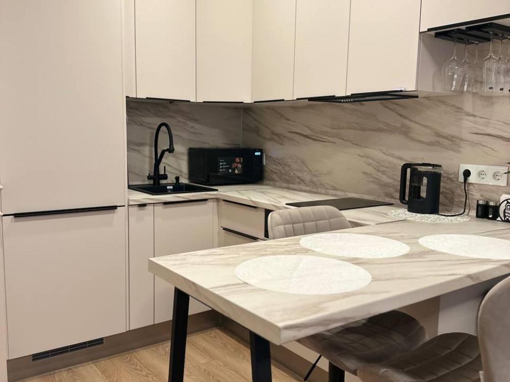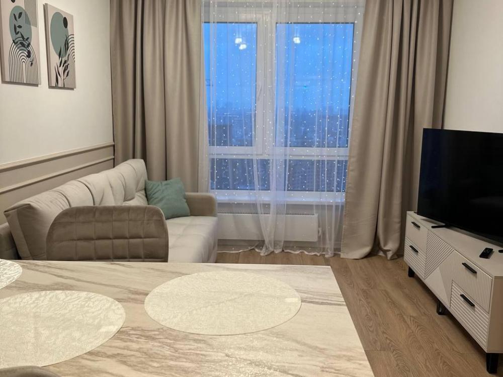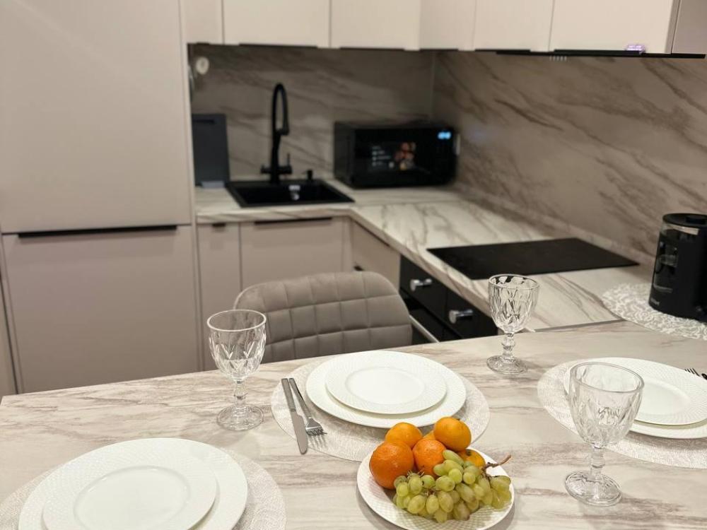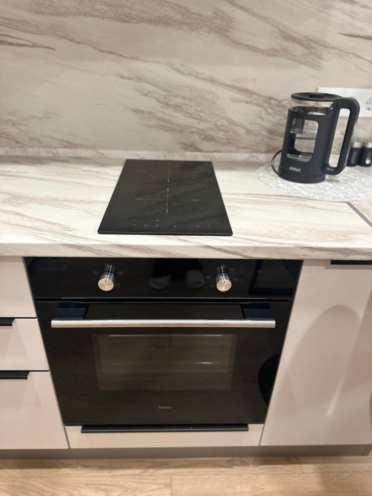 Квартира оборудована современной бытовой техникой для удобного и комфортного проживания как одному, так и с семьей: микроволновка, стиральная машина, холодильник, варочная панель, чайник, двуспальная кровать, раскладной диван, СМАPТ TB, Wi-Fi, вся необходимая посуда для приготовления и приема пищи