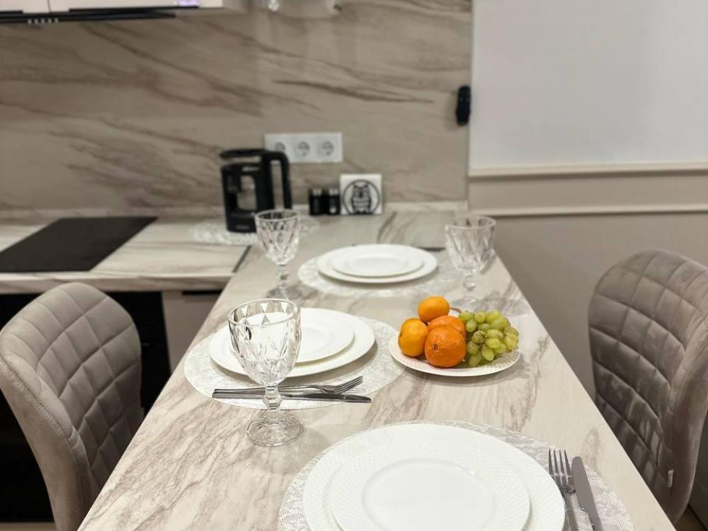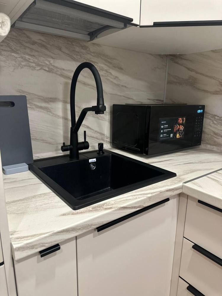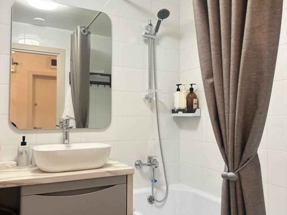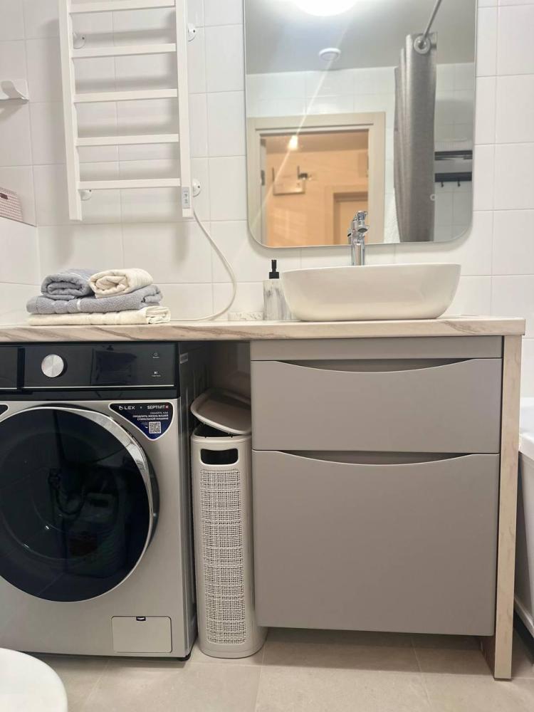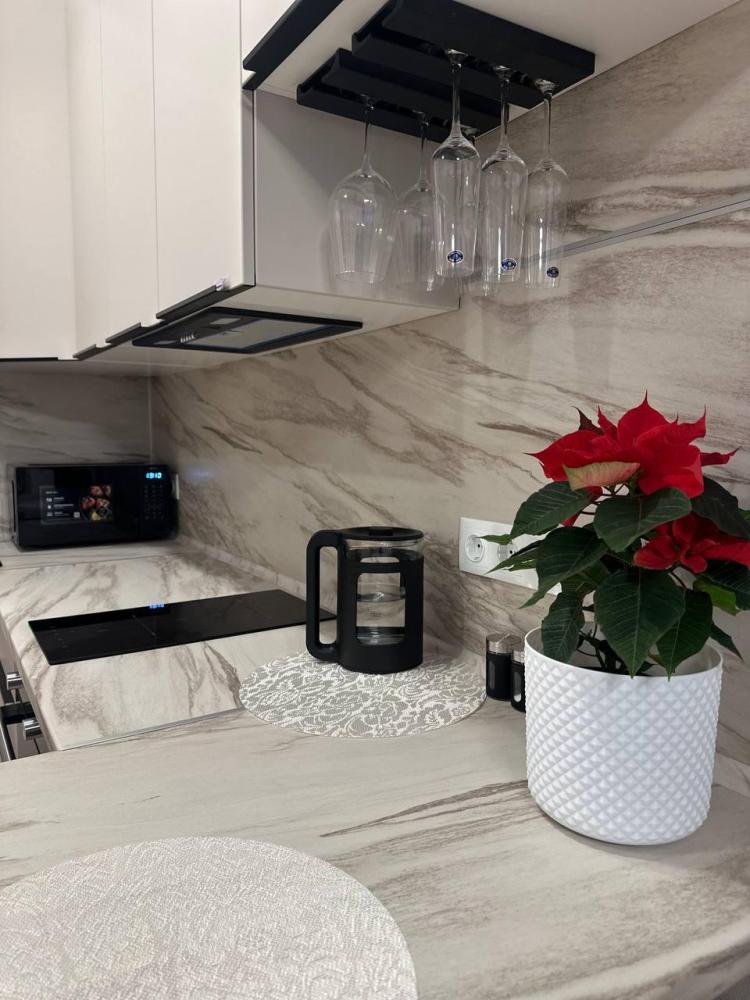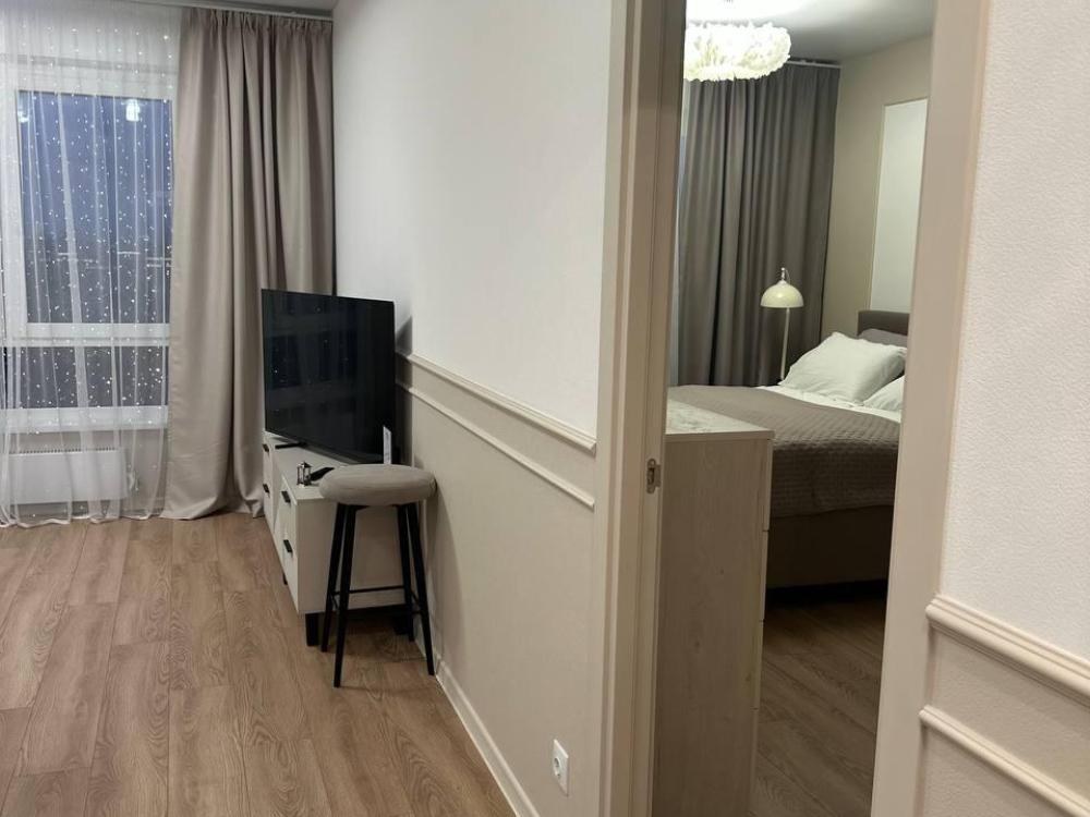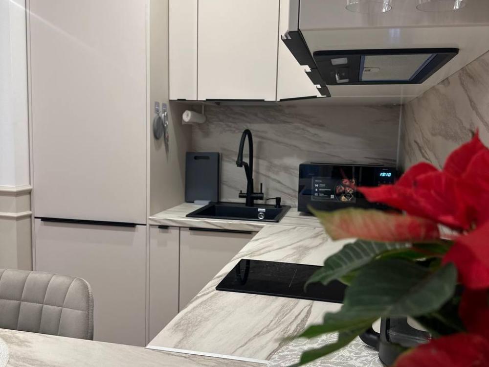 Квартира оборудована современной бытовой техникой для удобного и комфортного проживания как одному, так и с семьей: микроволновка, стиральная машина, холодильник, варочная панель, чайник, двуспальная кровать, раскладной диван, СМАPТ TB, Wi-Fi, вся необходимая посуда для приготовления и приема пищи