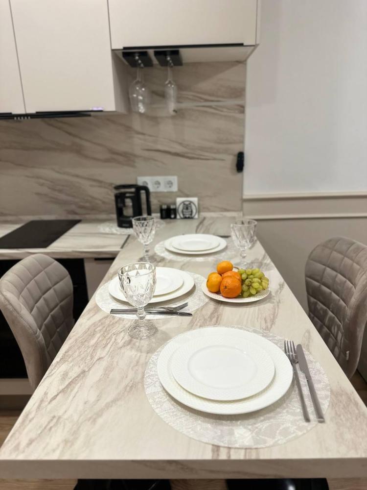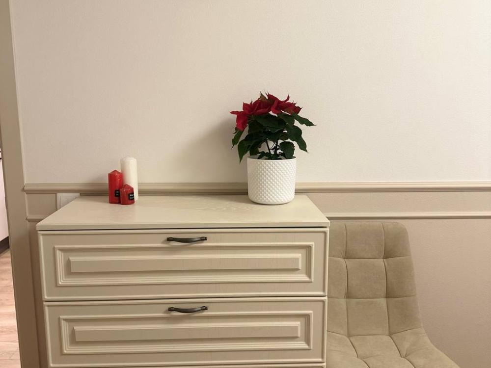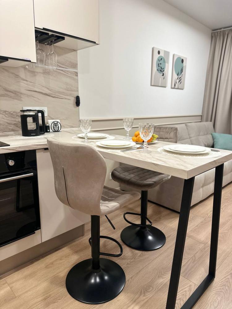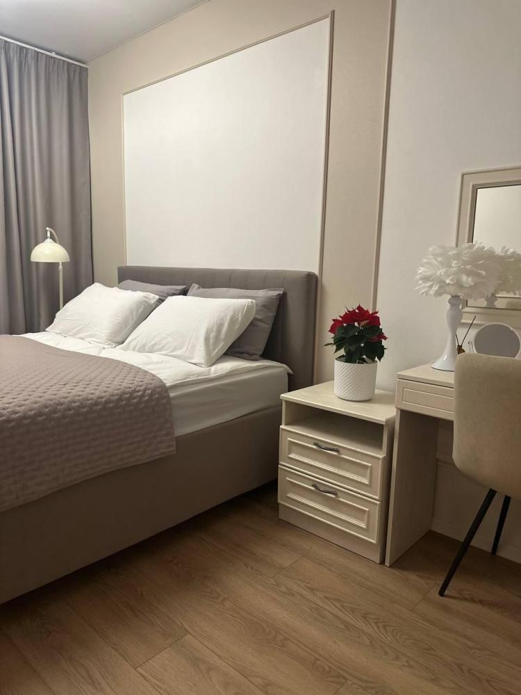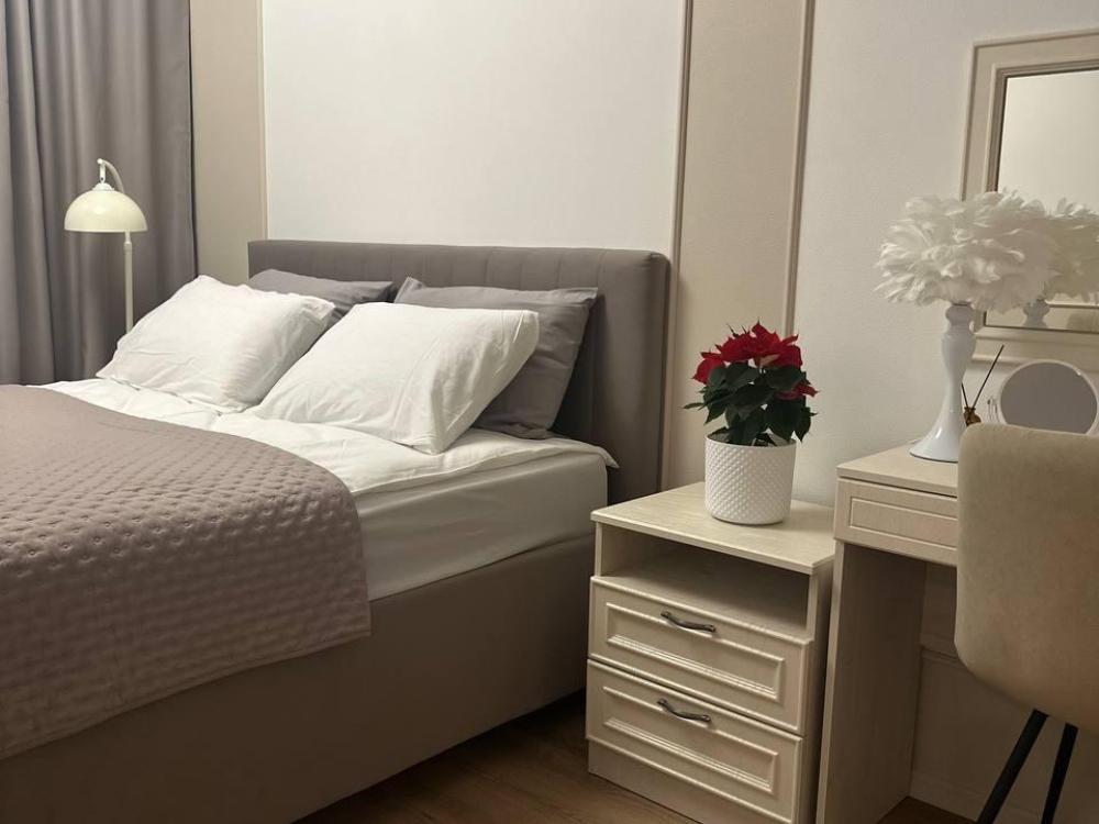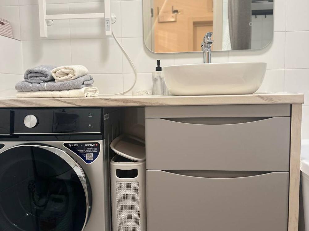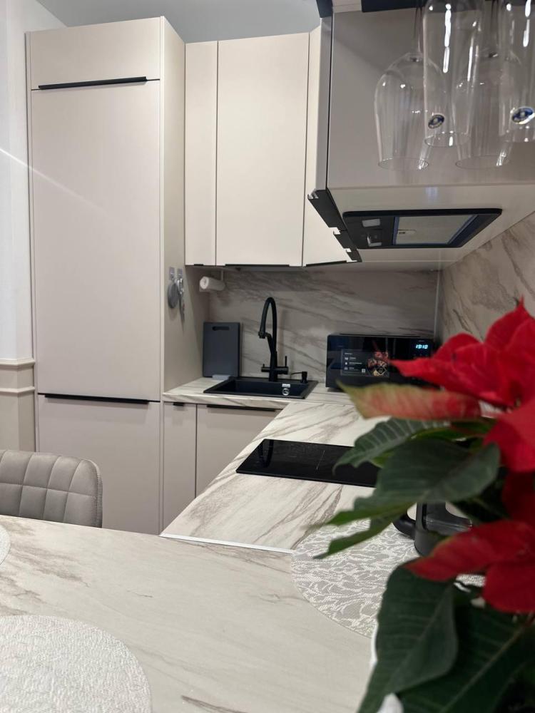 Квартира оборудована современной бытовой техникой для удобного и комфортного проживания как одному, так и с семьей: микроволновка, стиральная машина, холодильник, варочная панель, чайник, двуспальная кровать, раскладной диван, СМАPТ TB, Wi-Fi, вся необходимая посуда для приготовления и приема пищи